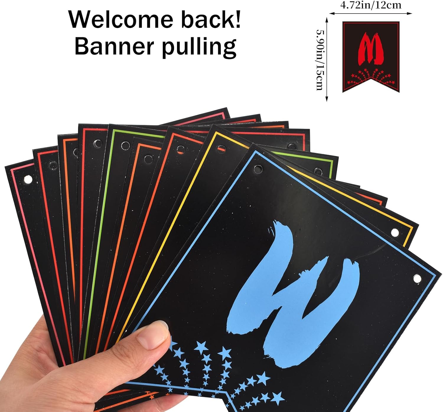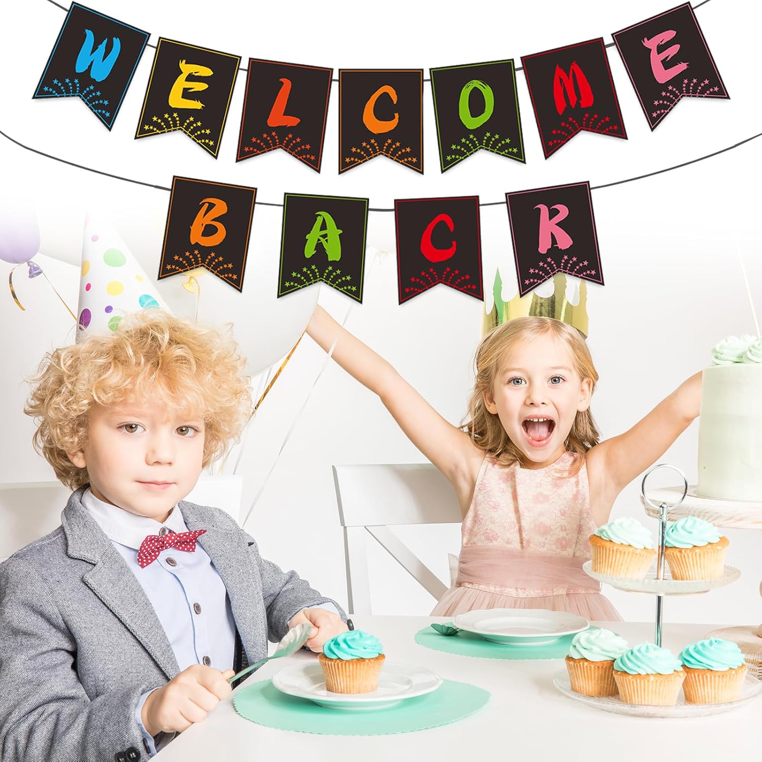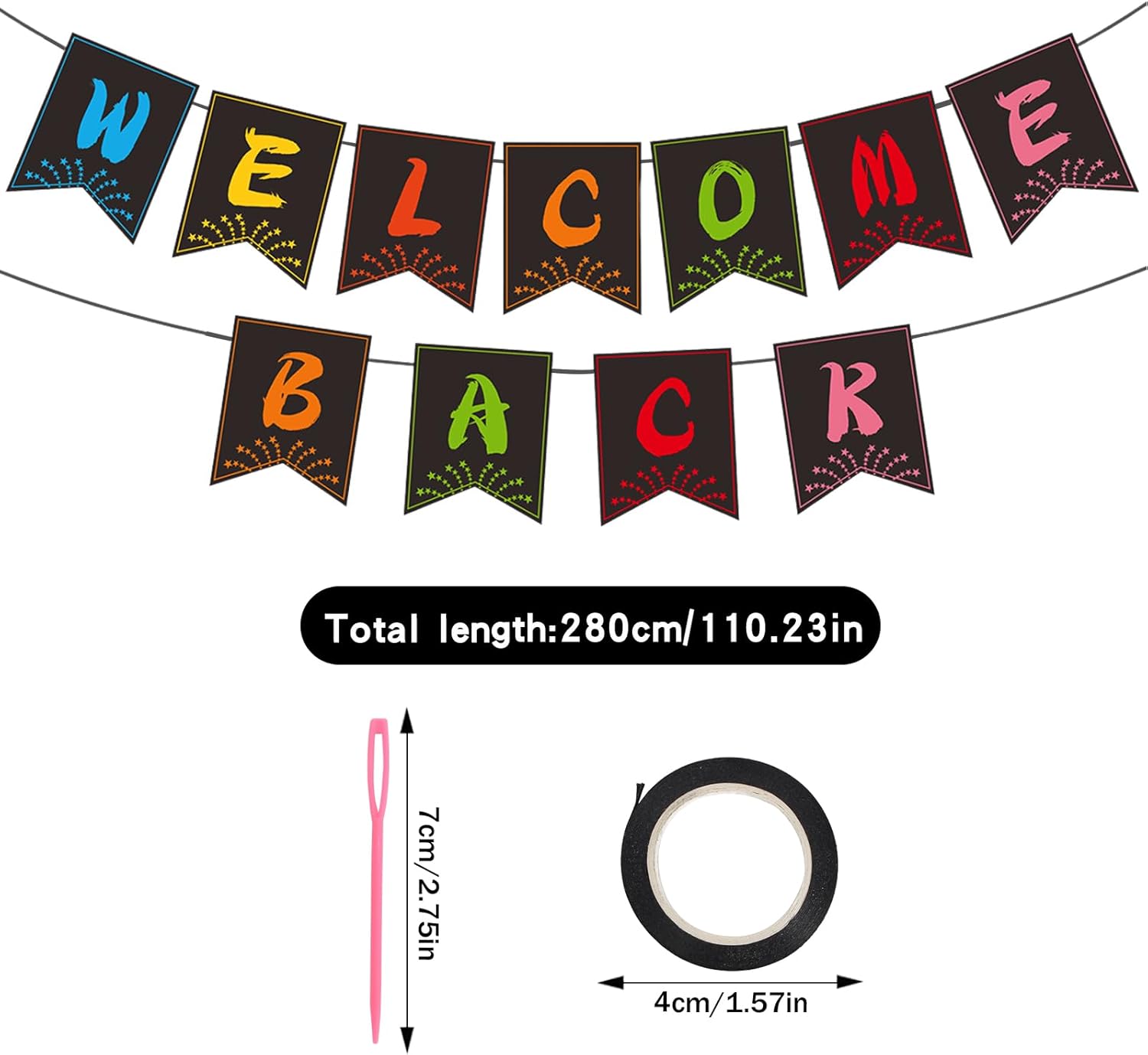 ★ Alta qualità: il nostro striscione “Bentornato” è realizzato in cartone spesso e resistente ed è progettato per durare. Ogni carta misura 12 x 15 cm, lunghezza totale 18 cm. Ricco di colore, inodore, facile da pulire e riutilizzabile più volte. ★ DESIGN ACCATTIVANTE: il nostro striscione presenta lettere colorate e stelle scintillanti per catturare l'eccitazione del nuovo anno scolastico. Il design speciale li rende un'aggiunta ideale alla tua collezione di decorazioni per il rientro a scuola e garantisce che la tua stanza abbia un aspetto vivace e interessante. ★ Facile da usare: risparmia tempo e fatica con i nostri striscioni preassemblati per il rientro a scuola. Non è richiesto il fai da te! Basta estrarli dalla confezione e appenderli per aggiungere brillantezza alla tua classe o al tuo evento. ★ VERSATILITÀ: questi striscioni versatili sono perfetti per una varietà di occasioni, tra cui aule, feste di ritorno a scuola, cartelli sulle porte e annunci di benvenuto. Fornisce un'atmosfera divertente e festosa e crea un ambiente caldo e confortevole per studenti e insegnanti all'inizio dell'anno scolastico. ★ Set di decorazioni: il pacchetto include 11 bandiere di benvenuto sospese e 5 metri di spago per completare la decorazione del tuo campus e soddisfare le tue esigenze di decorazione. Queste decorazioni sono facili da usare e divertenti da assemblare. Possono essere appesi su tavoli, finestre, mensole e altro ancora.