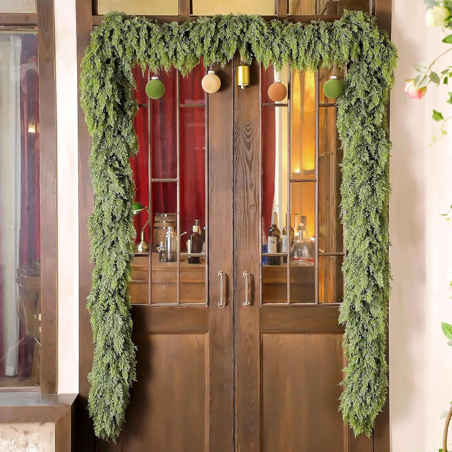 Atmosfera festosa: senti il fascino della stagione con una ricca vegetazione che offre un'atmosfera calda e allegra per tutte le tue esigenze di decorazione delle vacanze. 【Ghirlanda di cipresso realistica】 Il tocco morbido e naturale con profondità a strati migliora il tuo arredamento, con un design ad ago ultra realistico per un aspetto decorativo di alta qualità che affascinerà qualsiasi ospite durante le festività. Formabilità senza sforzo: con un nucleo di filo flessibile, questa ghirlanda è facile da modellare e da modellare, fornisce una facile installazione e un'esperienza di disposizione perfetta e intuitiva. Stile: ottieni uno stile natalizio personalizzato migliorando al tempo stesso questa ghirlanda con luci e fiocchi, fornendo una base ideale per creare naturalmente il tuo capolavoro durante le festività natalizie.,Decorazione durevole e sicura: un design resistente allo sbiadimento e ai raggi UV garantisce una vivacità duratura, mentre la funzione senza pelucchi e senza disordine rende questa ghirlanda una scelta pratica, riutilizzabile e sicura per le decorazioni festive.