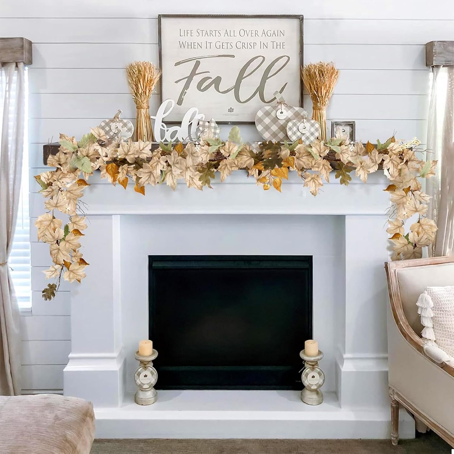 Foglie d'acero colorate: decora la tua casa con una splendida ghirlanda autunnale con una bellissima zucca di canna bianca, foglie d'acero luminose e un mix di accenti autunnali. Crea senza sforzo un'atmosfera accogliente e invitante utilizzando questa ghirlanda per evidenziare la mensola del camino, la porta o il muro. Colorazione sostenibile: goditi i colori autunnali caldi e vibranti della nostra ghirlanda autunnale per caminetto tutto l'anno senza necessità di manutenzione. Realizzato con materiali di alta qualità, questo prodotto offre una ritenzione del colore di lunga durata ed è sicuro e durevole per uso interno ed esterno. Per ottenere i migliori risultati, evitare l'esposizione all'umidità. Possibili usi: crea un'atmosfera accogliente e invitante al tuo prossimo evento o celebrazione con la nostra bellissima ghirlanda autunnale. Perfetto per matrimoni, feste o come decorazione per mensole e cornici di porte. IDEA REGALO PERFETTA: trasforma la tua casa in un accogliente paese delle meraviglie autunnale con questa ghirlanda autunnale. Ideale come regalo per la famiglia del Ringraziamento o del Festival del raccolto, presenta colori vivaci e un design realistico che trasuda l'essenza dell'autunno. Decorazione versatile: puoi combinare liberamente più ghirlande in rattan per creare una piacevole atmosfera autunnale per la tua mensola del caminetto, oppure crearne una con legno di acero essiccato da appendere alla tua porta. Evita semplicemente di immergerlo in acqua e di esporlo alla luce solare.
