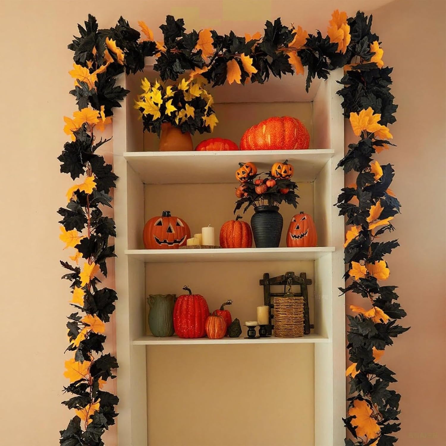 Confezione e dimensioni: nella confezione è presente 1 ghirlanda di Halloween con foglie di acero artificiale, che misura circa 175 cm di lunghezza. Si consiglia di acquistare più pezzi per un migliore effetto decorativo. 【Effetto realistico】 La ghirlanda di foglie d'acero miste gialle nere si abbina in modo naturale e armonioso ai colori principali dell'autunno e di Halloween, con trame chiare e colori vivaci, creando un'atmosfera festosa molto ricca. 【Materiale Premium】 Il rattan artificiale con foglie d'acero è realizzato con un supporto in plastica e tessuto di seta di alta qualità, trasparente e morbido al tatto. Non è facile sbiadire o rompersi, garantendo un uso a lungo termine. 【Decorazione autunnale】 Questa ghirlanda di foglie autunnali è una decorazione ideale per le feste, migliorando perfettamente l'atmosfera festosa. È molto adatto per decorazioni di Halloween, decorazioni per il Ringraziamento, decorazioni per finestre, decorazioni per feste a tema autunnale, ecc. Applicazioni: puoi appenderlo con un gancio o avvolgerlo direttamente attorno a scale, caminetti, ringhiere, pareti, finestre, altalene, balconi, giardini, porte d'ingresso o ovunque.