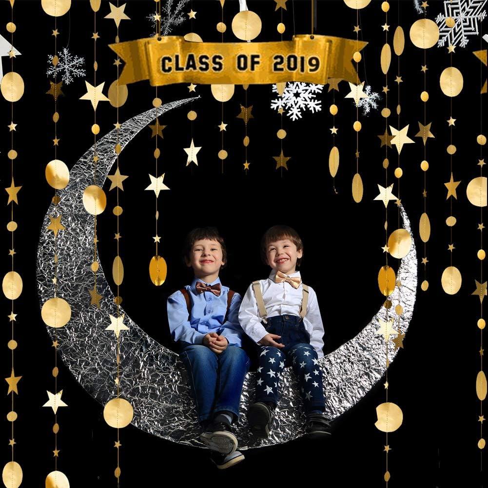 Confezione: 6 pacchi da 4 metri di carta metallizzata opaca di grandi dimensioni, totale 24 metri. Ogni confezione contiene 8 cerchi grandi, 16 cerchi piccoli, 8 pentagrammi grandi, 15 pentagrammi piccoli. Molteplici forme di stelle scintillanti e ritagli circolari di diverse dimensioni. Decorazione per striscioni dorati fronte-retro: realizzata in carta ecologica, superficie lucida riflettente, lampi di luce brillanti, eleganti e belli, impressionano in ogni occasione. Metallico opaco, grande design combinato, lucentezza metallica, bellissima stella e cerchio, oro scintillante/specchio. Può essere appeso a pareti, alberi di Natale, tavoli, scaffali, finestre o porte. Perfetta aggiunta alle decorazioni per le feste. Il punto di colla può aiutare ad aderire. Applicazioni: le decorazioni per feste con ghirlande di stelle possono essere applicate a feste di compleanno, matrimoni, lauree, fondali di streamer per feste, baby shower, ecc. E puoi usarle per decorare la tua casa o stanza, il che può rendere la tua vita piena di gioia. Applicazione: puoi appenderli a pareti, alberi, tavoli, finestre o porte per aggiungere un'atmosfera scintillante per feste di compleanno, feste in classe, feste di Capodanno o altre feste.