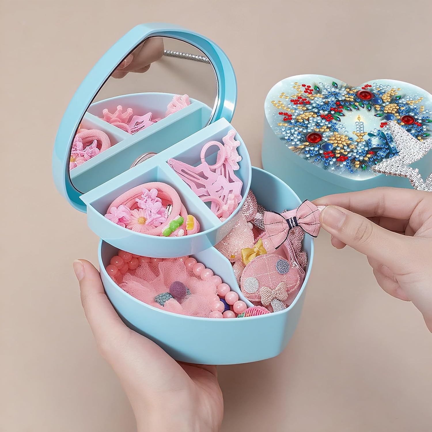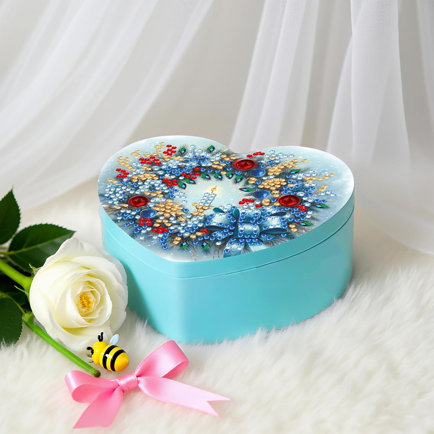 Soluzione di archiviazione versatile: questa scatola di archiviazione fatta a mano presenta più scomparti interni e piccole griglie, che consentono di organizzare vari tipi di gioielli per dimensioni e forma per una conservazione efficiente e ordinata e un facile accesso. Aspetto personalizzabile: evidenziando una scatola di stoccaggio decorativa di strass, puoi selezionare da una gamma di colori vibranti per adattarsi al tuo stile interno e riflettere le tue preferenze personali con fascino duraturo. Appello estetico dettagliato: ogni contenitore di stoccaggio a mosaico di cristallo è elegantemente rifinito, fornendo utilità al contempo il fascino visivo 'area di stoccaggio, abito per qualsiasi posizione desiderata. Selezione regalo premurosa: un kit di custodie in cristallo serve come un ottimo regalo per i propri cari o per uso personale, mantenendo l'integrità dei gioielli e razionalizzando la selezione quotidiana. Affascinante forma del cuore: la scatola di gioielli a forma di cuore non solo offre un'organizzazione efficiente, ma aumenta anche l'interesse visivo, mantenendo i tuoi amanti accessori in ordine e ben presenti.