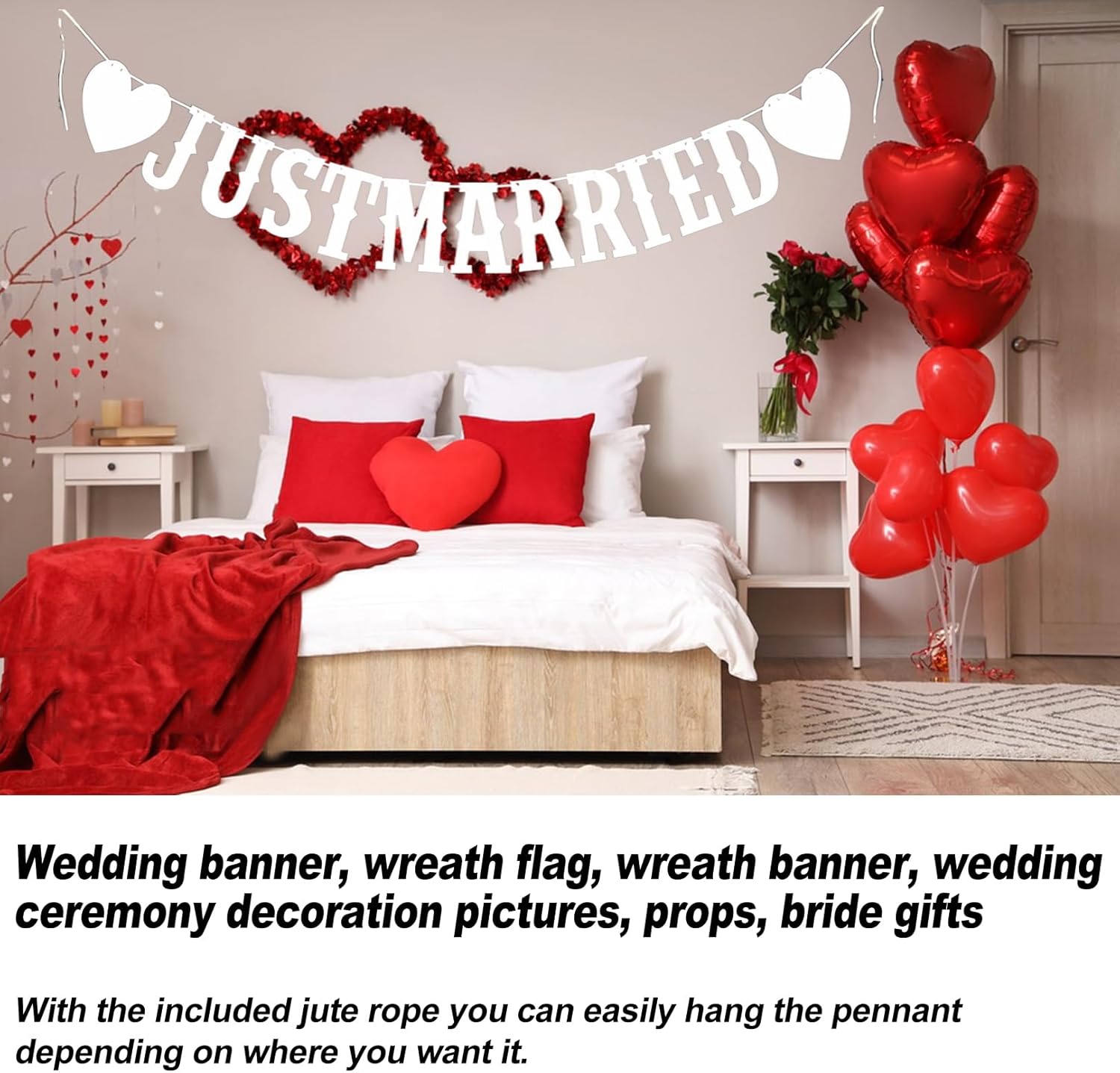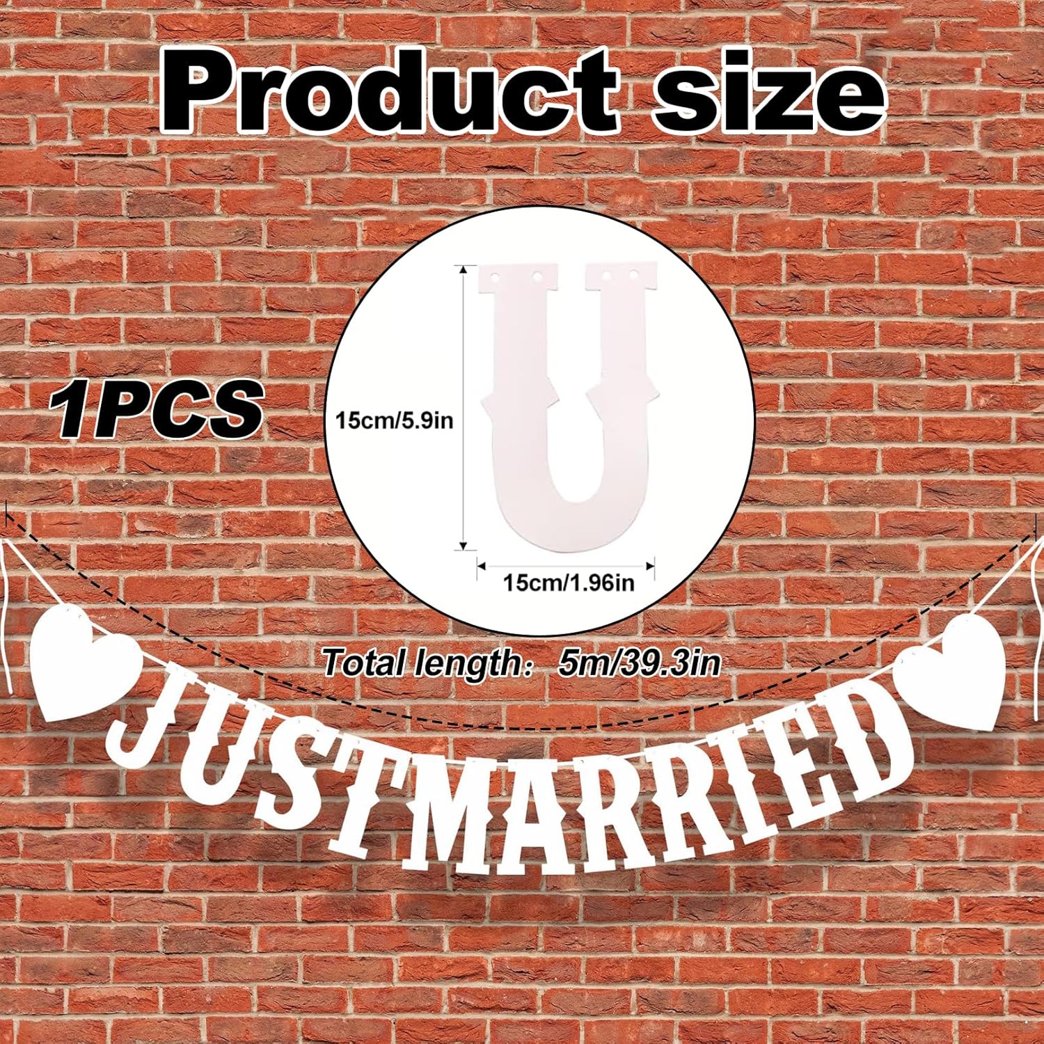 Gli acquirenti riceveranno una ghirlanda Just Married lunga 5 metri e biglietti individuali di circa 15x5 cm, perfetti per matrimoni, festival e addio al nubilato. Realizzata in materiale di alta qualità, questa ghirlanda dal design vintage aggiungerà un'atmosfera romantica e affascinante alla tua celebrazione. La ghirlanda è realizzata con cura e facile da montare, quindi può essere posizionata su porte, pareti o sopra tavoli per aggiungere un tocco speciale al tuo evento. Adatto a sposi, wedding planner e organizzatori di feste che cercano una decorazione elegante per il loro evento. Grazie per il tuo acquisto! Ci auguriamo che questa ghirlanda Just Married renda il tuo matrimonio o addio al nubilato ancora più memorabile. Se hai domande o dubbi, saremo felici di aiutarti.