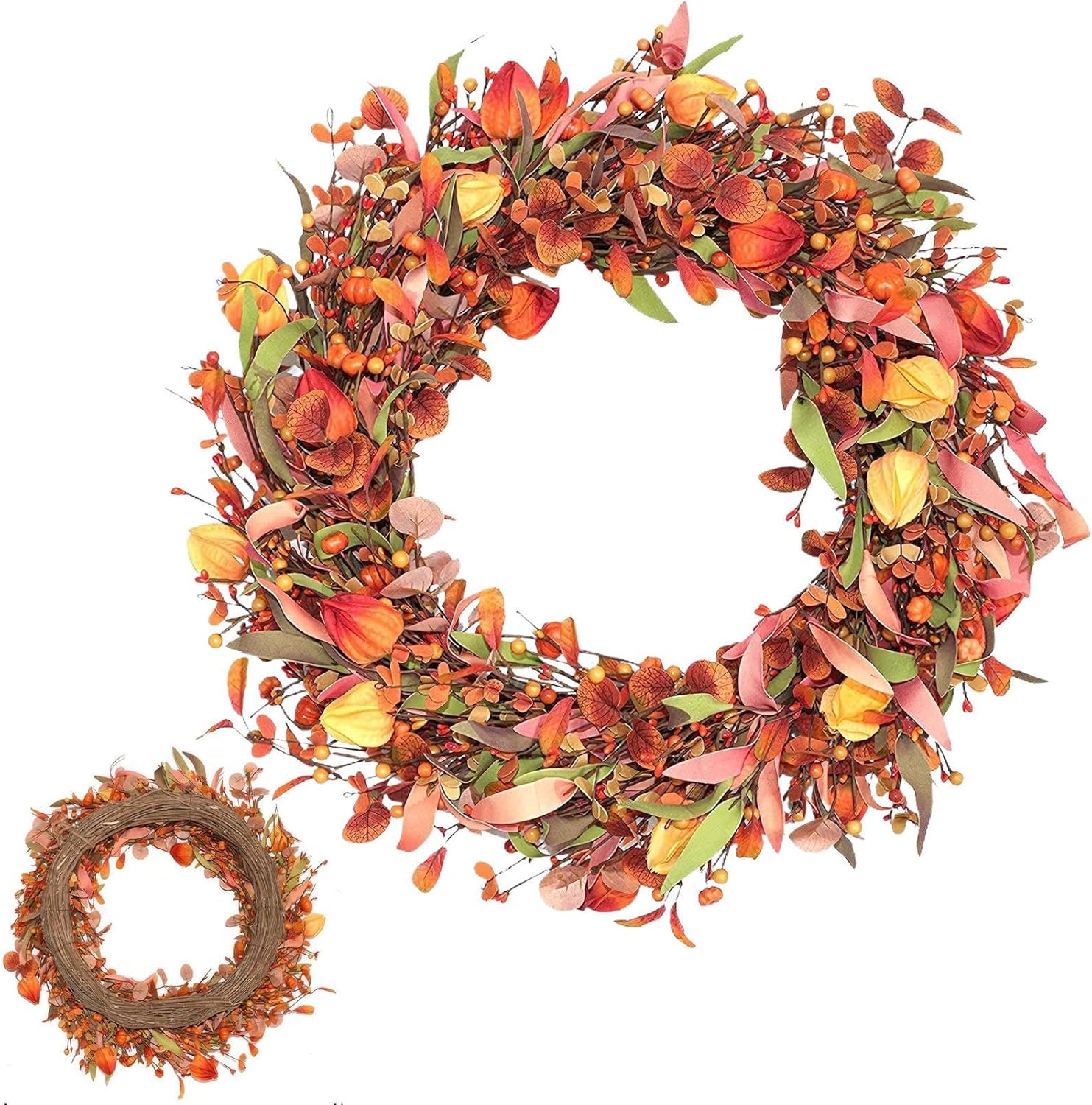 Decorazione Autunnale per Esterni: Le ghirlande autunnali per porta d'ingresso un punto focale stupendo per l'ingresso di casa, offrendo un'atmosfera calda e accogliente durante la stagione del raccolto; queste decorazioni per feste autunnali si integrano alla perfezione in qualsiasi ambiente, realizzando un tema autunnale elegante che dà il benvenuto agli ospiti con il fascino stagionale e lo spirito festivo, valorizzando l'attrattiva esterna con dettagli naturali e design vibrante per a Materiale Resistente alle Intemperie: Questa ghirlanda autunnale per porta d'ingresso utilizza materiale PVC riutilizzabile e robusto, garantendo una durabilità affidabile per resistere all'uso frequente e all'esposizione a condizioni atmosferiche variabili, permettendoti di apprezzare una display autunnale attraente anno dopo anno senza timori di usura o , ideale per decorazioni esterne durevoli che mantengono il loro aspetto nel . Design Intrecciato a Mano: Caratterizzato da un design intrecciato a mano e una base in rattan robusta, queste ghirlande autunnali incorporano tematici autunnali come foglie, bacche arancioni e zucche decorative. Sono perfette per creare un'atmosfera di benvenuto alla porta d'ingresso durante le fresche giornate d'autunno, aggiungendo un tocco festoso e invitante alla decorazione 'ingresso di casa con naturali e duraturi. Corona per il Ringraziamento: La corona autunnale mette in risalto i ricchi colori autunnali e un'atmosfera di raccolto, offrendo il divertimento del Ringraziamento attraverso il suo design che migliora le celebrazioni festive e dona un tocco delicato a porte o pareti di casa, creando un'ambiente accogliente per le festività autunnali con colori caldi e tema del raccolto. Misura Versatile per l'Autunno: Con una dimensione finale di 56 cm dopo l'espansione, questa ghirlanda per il raccolto è realizzata per soddisfare esigenze decorative multiple; moando e disponendo i rami dopo lo scarto si aumenta il volume, offrendo un tocco morbido ed elegante a porte, portici o tavoli da pranzo durante i autunnali, perfetta per decorazioni interne ed esterne con facilità.