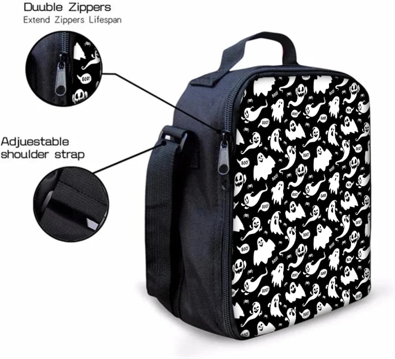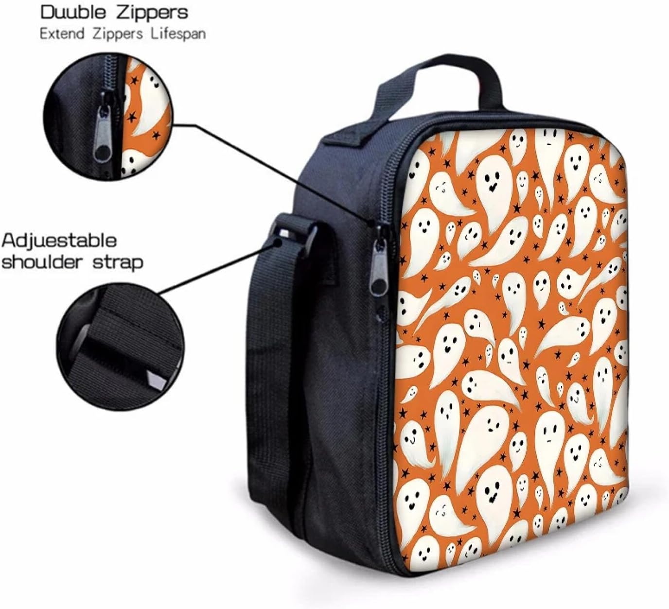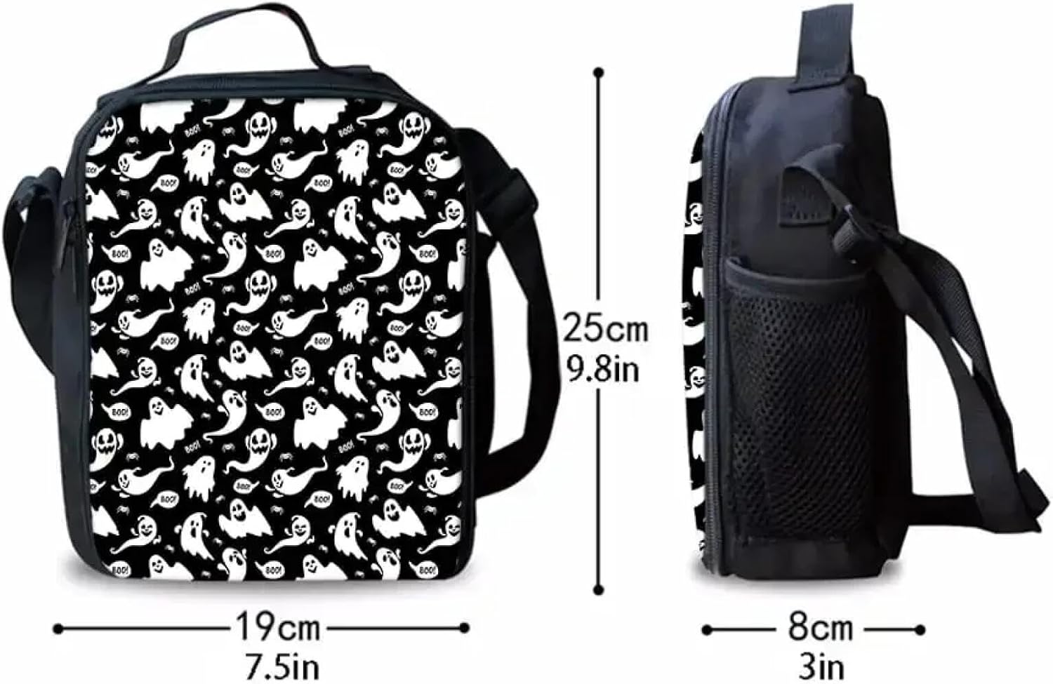 Ghost Pattern Tracolla Lunch Bag per Ragazzi e Ragazze I Migliori Regali 3D Cartoon School Bento Lunch Box Bag per Bambini