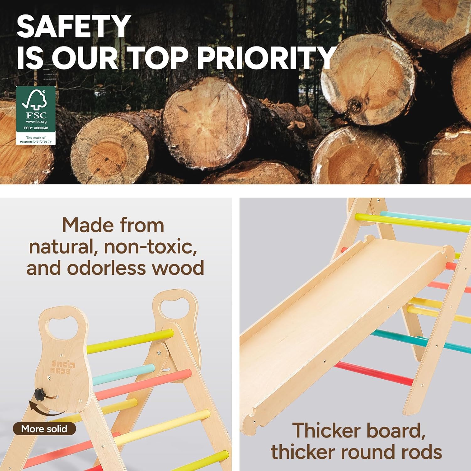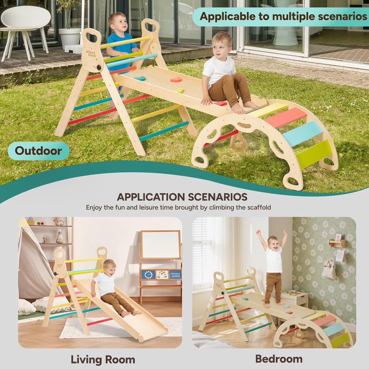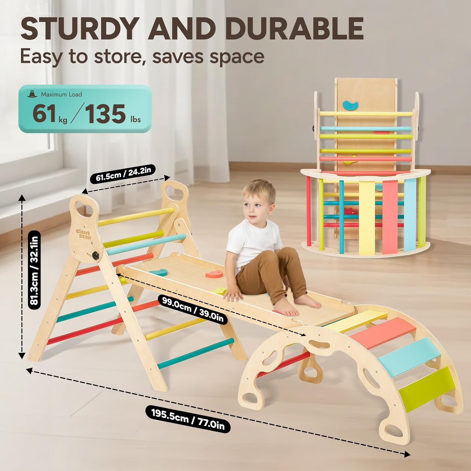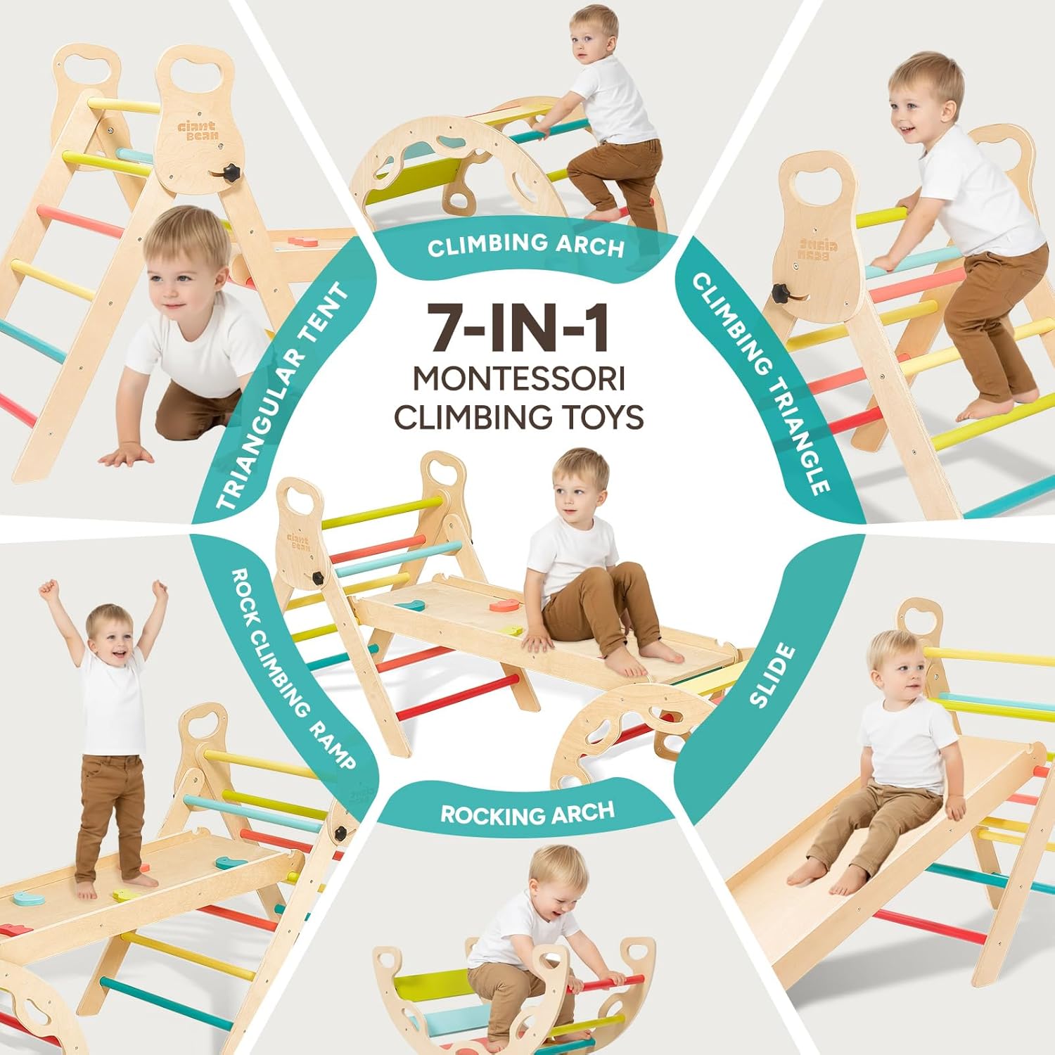 Set Pikler Multifunzione Eccezionale: Apprezzerete la versatilità di questo set da arrampicata Pikler 5 in 1. Include un triangolo in legno che completa il set 5 in 1. L’arco per arrampicarsi può essere capovolto e utilizzato come barca dondolo per stimolare l'equilibrio e il gioco creativo. La particolarità è la maniglia posta alla fine dell’arco, che consente di configurare l’area giochi in modi diversi. Materiali Naturali e Manoditura Eccellente: Certificato secondo gli standard EN 71, ASTM e CPSC, questo set Pikler è realizzato in betulla sostenibile e legno massello lucidato, privo di formaldeide. I nostri prodotti sono costruiti per durare! Inoltre, gli spigoli e i bordi della scaletta sono così levigati da garantire la massima sicurezza durante il gioco. Perfetto per Piccoli Arrampicatori: Ideale per bambini avventurosi, questo set Montessori sviluppa forza, coordinazione, equilibrio, autostima e creatività. Si trasforma in fortezze, parcheggi e scenari di fantasia. Soluzione perfetta per creare un'area giochi in legno alternativa ai giocattoli convenzionali. Facile da Montare: I giocattoli per arrampicata in legno sono più semplici da assemblare rispetto alla maggior parte dei prodotti concorrenti. Tutti i fori sono allineati correttamente! Un altro vantaggio è che per piegare il triangolo Pikler regolabile basta allentare i due pulsanti neri laterali, senza bisogno di rimuoverli (nessun rischio di perderli) e senza utilizzare cacciaviti. Garanzia Soddisfatto o Rimborsato: Il nostro obiettivo primario è la soddisfazione del cliente. Oltre a garantire la massima qualità dei prodotti, ci impegniamo per offrire un’esperienza d’acquisto impeccabile. Per qualsiasi problema con questo set Pikler, non esitate a contattarci.