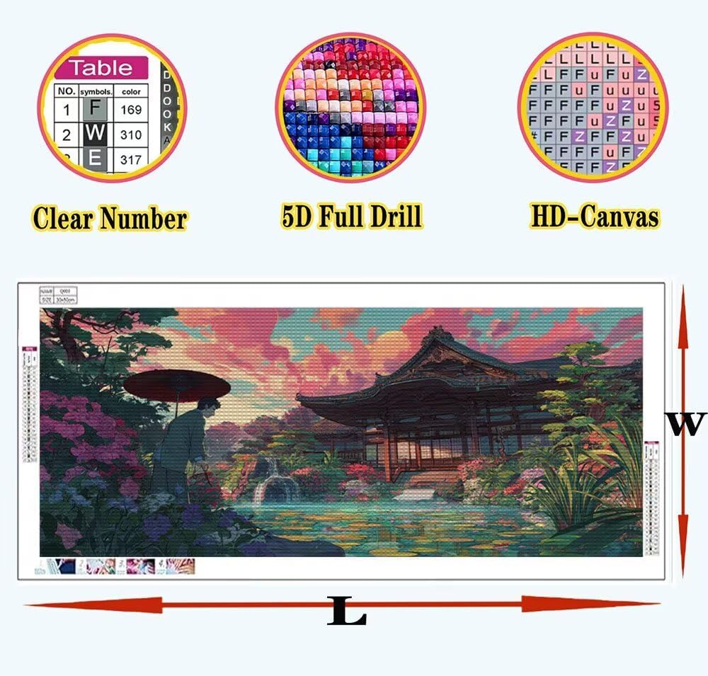 Giappone Diamond Painting Kit Completo, Architettura Diamond Painting Bambina 40x80 Full Drill Ricamo Crystal Art , 5D Bambini Per Pittura Diamante Principianti Pittura Diamante,Wall Decor A-U286