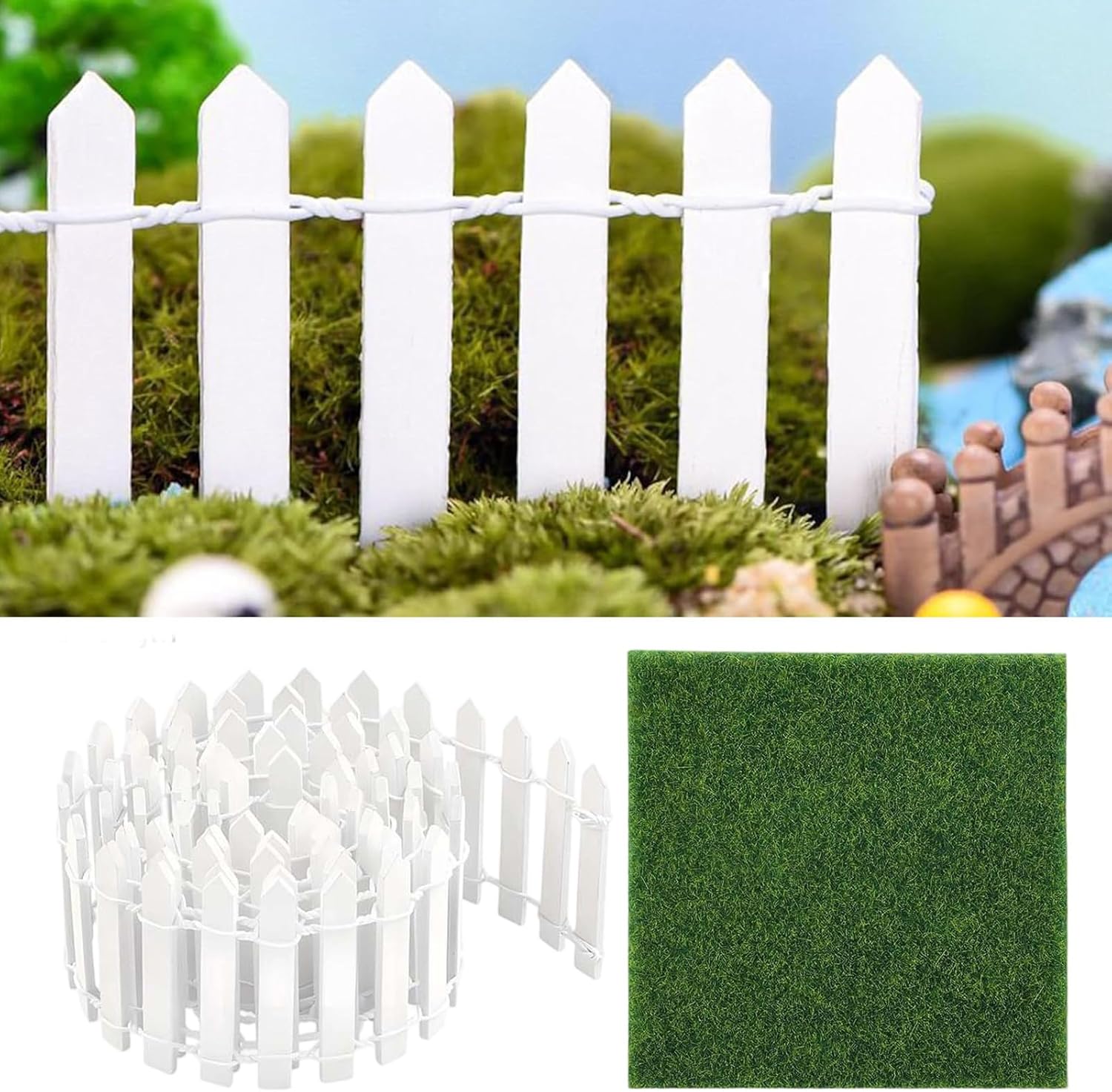 Divisorio creativo: migliora le aree del giardino o del soggiorno con questo giardino fatato che funge da separatore di piante e decora. Ideale come accessorio da giardino fatato per una decorazione flessibile multiuso in diversi scenari. Qualità durevole: realizzato con materiali resistenti e ad alta resistenza, questo giardino fatato garantisce una stabilità duratura per applicazioni interne ed esterne e garantisce una sicurezza duratura per tutto il periodo di utilizzo Montaggio pratico: il set di erba già tagliato con recinzioni abbinate consente di trasformare facilmente qualsiasi area in un incantevole giardino in miniatura con effetto immediato Struttura robusta: grazie al legno flessibile assicura contorni anche insoliti con facilità, offre stabilità e una superficie durevole per resistere alle sollecitazioni quotidiane nelle scene da giardino senza rompersi Incantevole accento da giardino: aggiungete un tocco decorativo al vostro giardino con questo splendido paesaggio in miniatura. Realizzato per la casa delle bambole o per l'uso all'aperto e convince per il suo design ispirato alle fiabe che dona fascino naturale e atmosfera magica