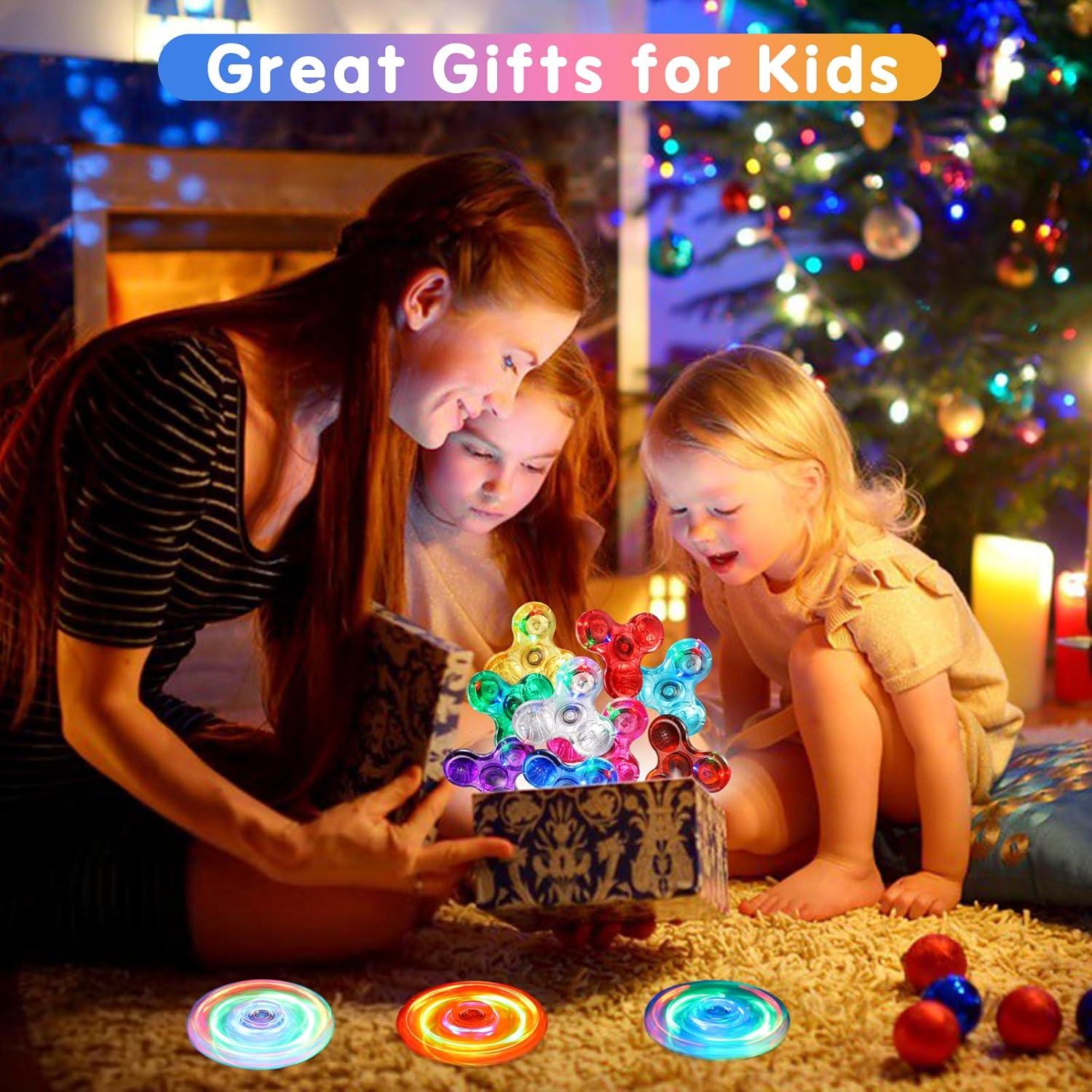 【Mini Fidget Spinner da 16 pezzi】 I nostri Fidget Spinner illuminati a LED hanno 3 modalità lampeggianti e funzionano in modo indipendente, possono essere commutati in diversi stili multicolori come preferisci, diversi modelli di luce sembrano sorprendenti. Basta premere la ruota LED e otterrai bellissimi colori e motivi che creano un enorme bagliore nell'oscurità. 【Giocattoli antistress e anti-ansia】 I giocattoli Fidget Spinner offriranno un'esperienza divertente e colorata, ideale per bambini e adulti, in particolare quelli con bisogni aggiuntivi come ansia, disattenzione, autismo e ADHD. Il filatore Fidget può migliorare la concentrazione e consentire alle persone ansiose di rilassarsi. Questo fidget spinner con luce a LED è una scelta intelligente per l'ufficio, la casa, lo spazio di lavoro e la scuola. 【Fidget Spinner colorati illuminati】 giocattolo fidget per bambini: fidget spinner rosso, rosa, blu, verde, giallo e bianco, ogni giocattolo spinner portatile rende il giocattolo fidget facile da giocare. Questi preferiti delle feste che si illuminano al buio brillano di luci e disegni che si illuminano al buio, assolutamente accattivanti! 【Materiale sicuro e durevole】 La borsa LED Fidget Spinner utilizza materiale ABS cristallino di alta qualità, resistente alle cadute e durevole, facile da mettere in tasca o in borsa, i cuscinetti in acciaio 608 di alta qualità forniscono un effetto più fluido e silenzioso. Tempo di rotazione: circa 60 secondi per più sfide e divertimento sempre e ovunque. Un buon regalo per i bambini: i nostri riempitivi per borse da festa per bambini con fidget spinner sono fantastici, regaleranno ai bambini un'esperienza lampeggiante colorata, porteranno un divertimento senza fine e lasceranno scomparire l'ansia. È un'idea regalo perfetta inviare il nostro pacchetto fidget spinner per bambini e adulti in occasione di festival come Pasqua, Halloween, Ringraziamento, Natale, Capodanno e compleanni.