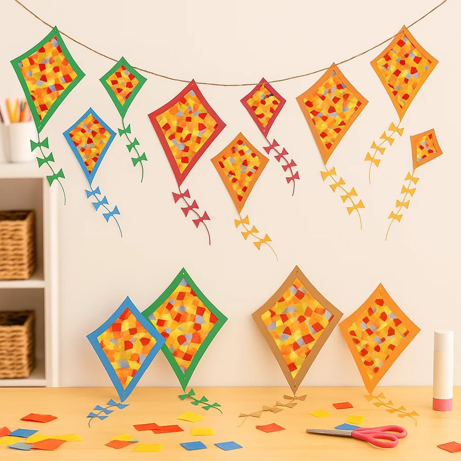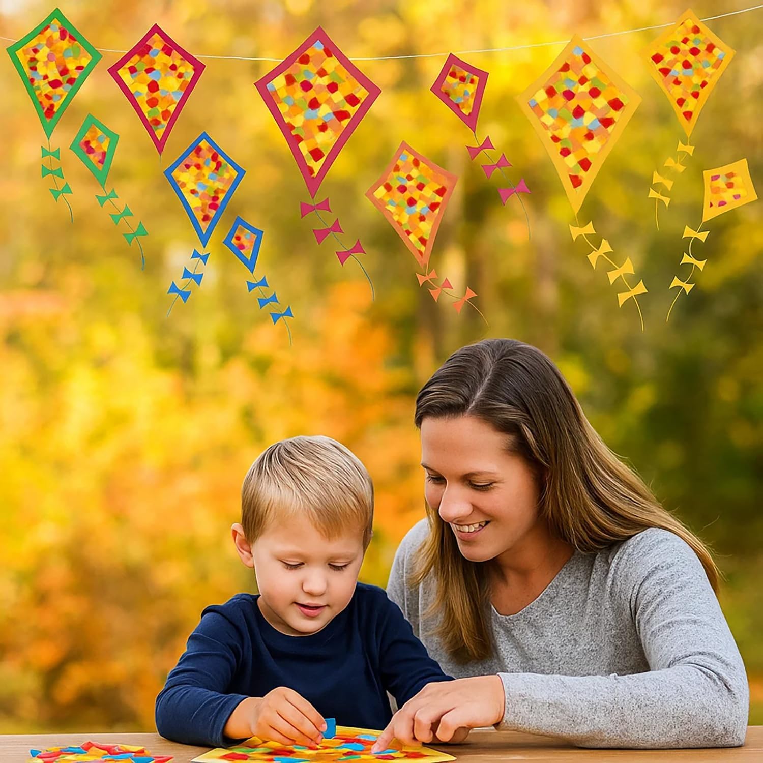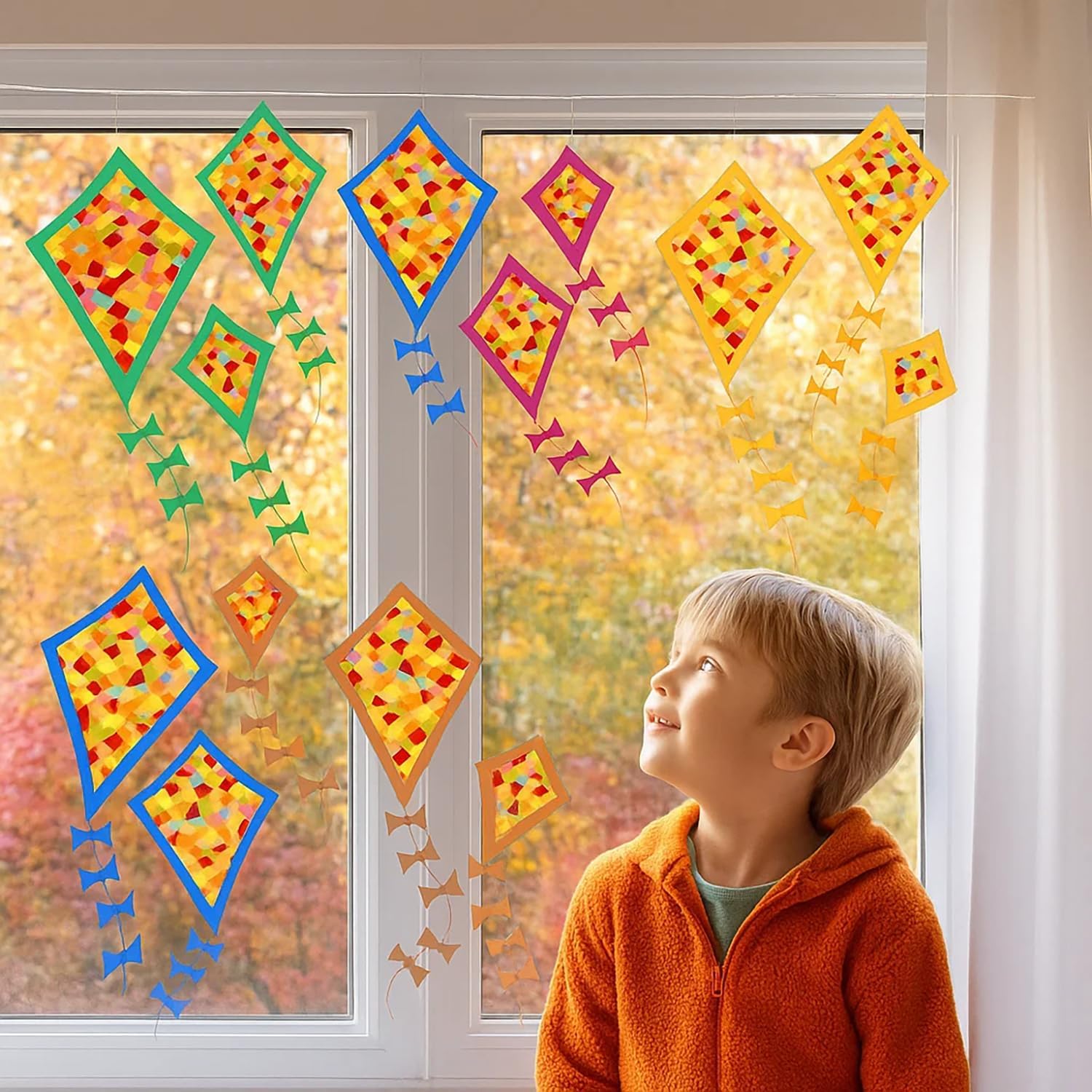 Kit Completo Aquilone Fai da Te: 18 pezzi Aquiloni per i Bambini già pretagliati (6 grandi, 6 medi, 6 piccoli) con tutto l'occorrente per creare decorazioni autunnali. Nessun taglio necessario, divertimento immediato per un'Aquiline Fai da Te per bambini dai 3 anni in su Sviluppo Educativo: Il nostro Set di Aquiloni Fatti a Mano per Bambini è un'Aquiline Fai da Te ideale per bambini dai 3 anni. Stimola la motricità fine e la creatività durante il gioco. Favorisce la coordinazione occhio-mano, il riconoscimento dei colori e il pensiero logico. Vivete un'esperienza di successo creativa con il vostro bambino e rafforzate il vostro legame con questi Aquiloni per i Bambini Facile da Usare: Set Aquilone Fai da Te Non servono materiali aggiuntivi per creare splendide decorazioni! I nostri Aquiloni per i Bambini sono in carta di alta qualità, con forme e colori semplici da comporre per il vostro look autunnale. Ideale per un'Aquiline Fai da Te o come decorazione per la cameretta Utilizzo Versatile: Questa attività Aquilone Fai da Te è perfetta per laboratori di gruppo, per il fai da te in famiglia e altro ancora, ideale per progetti scolastici, feste e attività creative. Gli Aquiloni per i Bambini possono essere appesi alle finestre, alle porte o in qualsiasi altro luogo per una decorazione autunnale unica con questo Set di Aquiloni Fatti a Mano per Bambini Regalo Perfetto: Questo Set di Aquiloni Fatti a Mano per Bambini è un gioco creativo Aquilone Fai da Te, Ideale per decorare finestre, pareti o porte d'aula, e può essere donato ad amici e parenti. Il nostro Aquilone per i Bambini vi aiuta a passare momenti felici in famiglia e aggiunge gioia e colore alla vostra vita