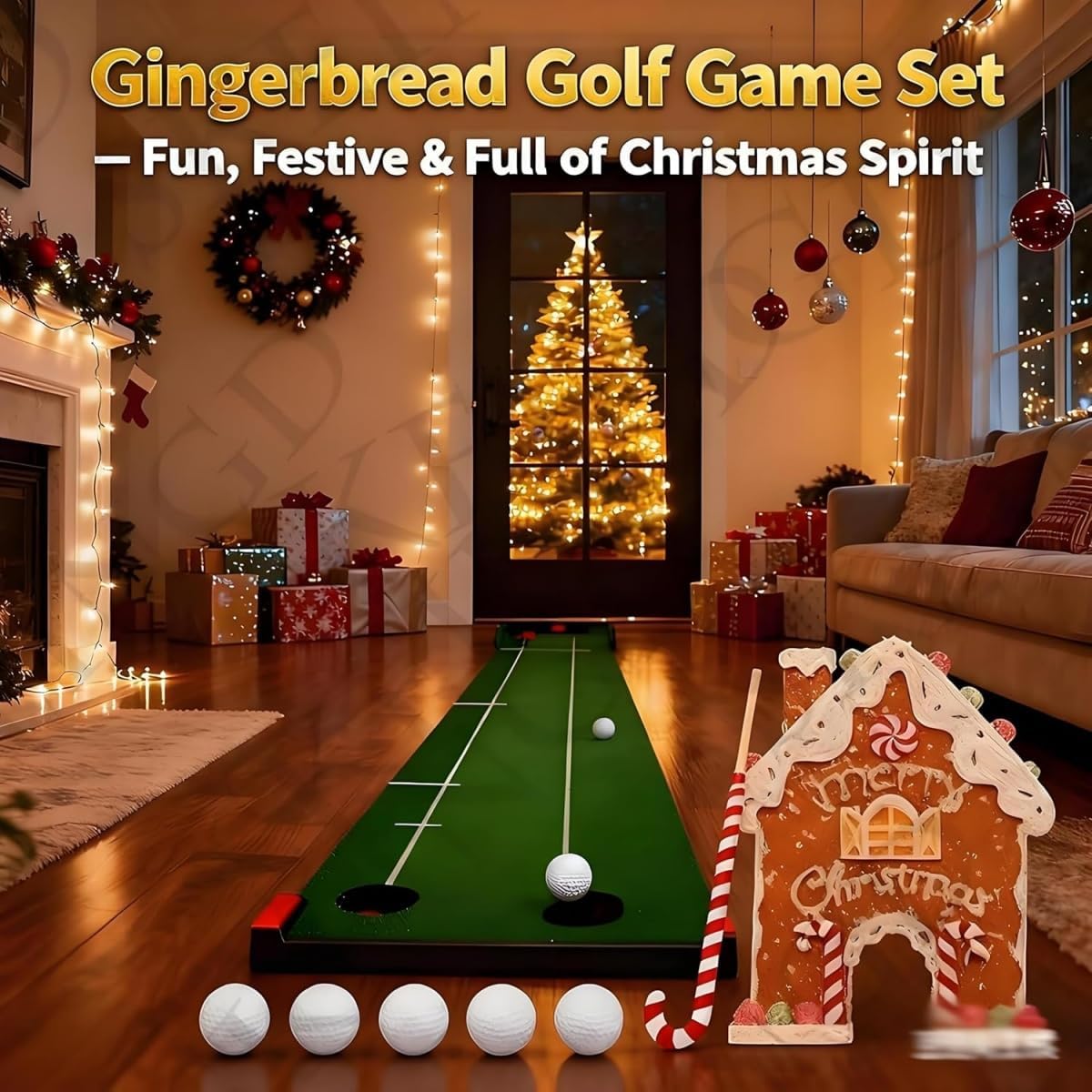 Perfect Christmas Vibe: Features whimsical gingerbread-shaped obstacles and a candy cane-themed golf club—adds cheerful holiday charm to any space, making it a standout addition to parties or family gatherings Portable Mini Golf Course: Compact design fits in a storage bag for easy transport—play indoors or outdoors, the lightweight setup lets you take it to holiday parties, family visits, or even office potlucks All-In-One Set: Comes with everything to play: 1 candy cane golf club, 1 soft golf balls, 1 gingerbread obstacles, unbox and start playing immediately—great for last-minute holiday fun Fun for All Ages: Simple rules make it easy for kids to play, while adults will enjoy friendly competition at Christmas parties, and the adjustable obstacle placement lets you create different difficulty levels Ideal Christmas Gift & Party Activity: Unique combination of holiday theme and interactive play makes it a thoughtful gift for families, golf lovers, or anyone who enjoys festive games