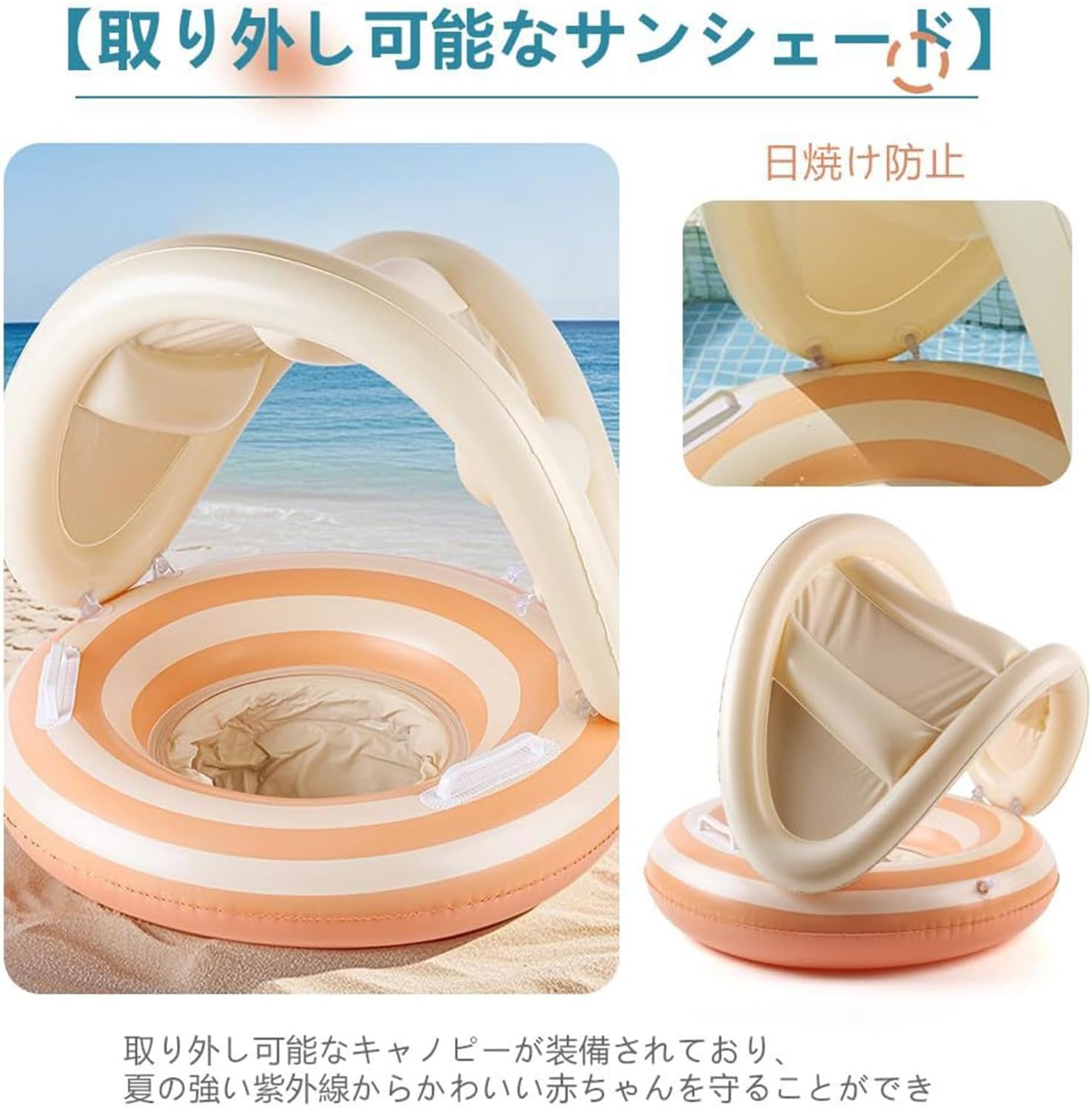 Struttura accurata: appositamente progettata per la piscina per bambini utilizza una combinazione di materiali elastici ma stabili, la cui superficie liscia e strutturata offre sicurezza a misura di bambino durante i giochi d'acqua grazie alle cuciture precise Protezione UV rimovibile: parasole facilmente smontabile con angoli di regolazione flessibili per una protezione solare affidabile e una maggiore sicurezza del bambino in caso di esposizione al sole Sistema antiribaltamento: zona di seduta sicura con maggiore stabilità, include maniglie antiscivolo per evitare il ribaltamento accidentale per una maggiore sicurezza Uso durevole: offre sicurezza e comfort ottimali grazie a una struttura solida e materiali di alta qualità per nuotare in piscina senza preoccupazioni con protezione solare efficace per il tuo bambino. Pratico multiuso: ideale per bambini da 1 a 4 anni, questo cerchietto da nuoto con tettuccio parasole soddisfa tutte le esigenze di divertimento in acqua ed è un accessorio molto utilizzato per allegre attività in famiglia in giardino o in vacanza al mare