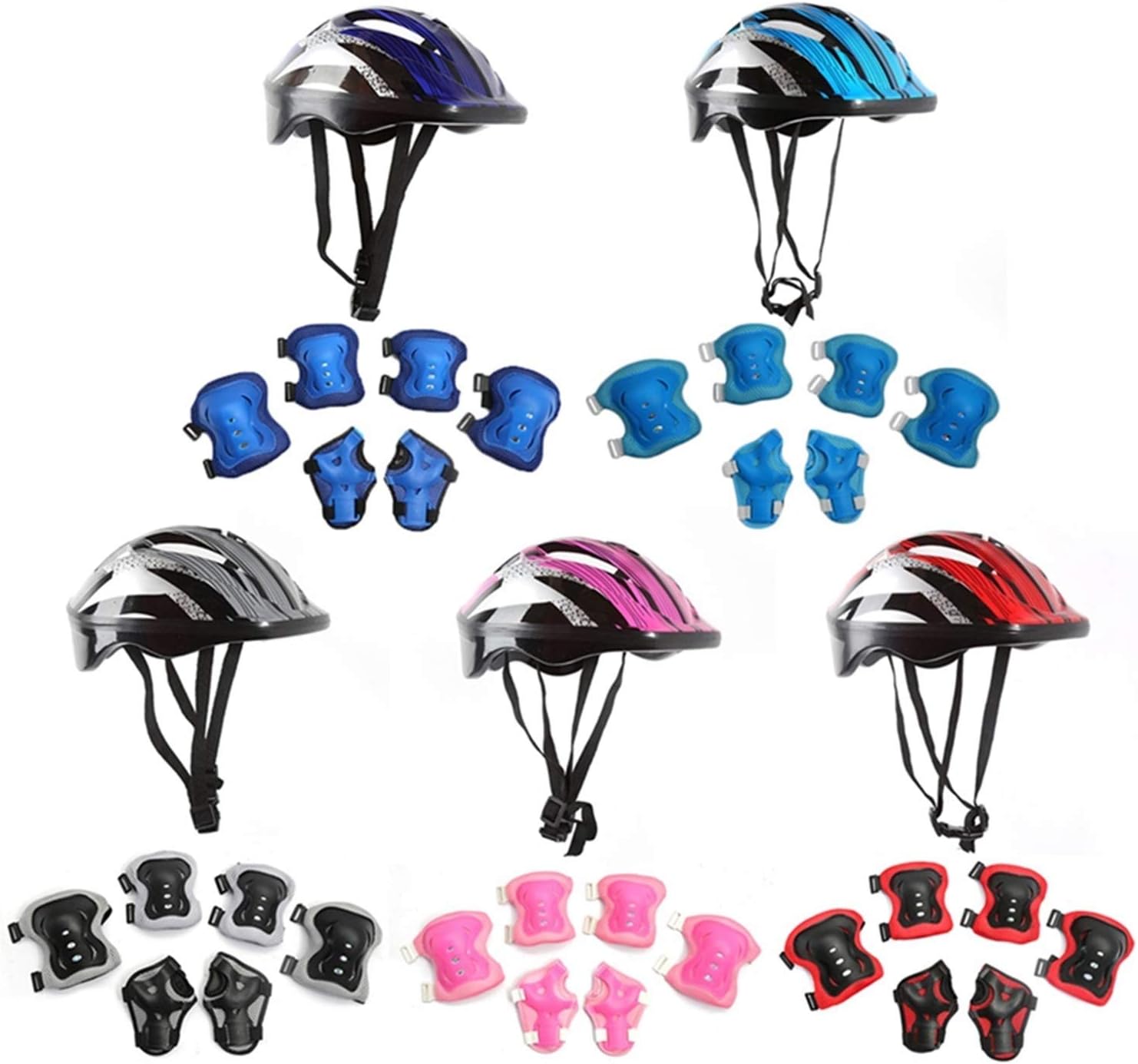 Materiale: rete sandwich + spugna + PVC. Colore: blu/rosa/rosso/nero Design: la rete sandwich è traspirante, la spugna è leggera e morbida, resistente all'usura, resistente ai graffi e ha una buona protezione a tutto tondo Scopo: protezione di sicurezza speciale per gli sport all'aria aperta dei bambini come biciclette per l'equilibrio dei bambini, pattini a rotelle per bambini, scooter, ecc. ! Imballaggio: 2 ginocchiere, 2 gomitiere, 2 poggiapolsi, 1 casco