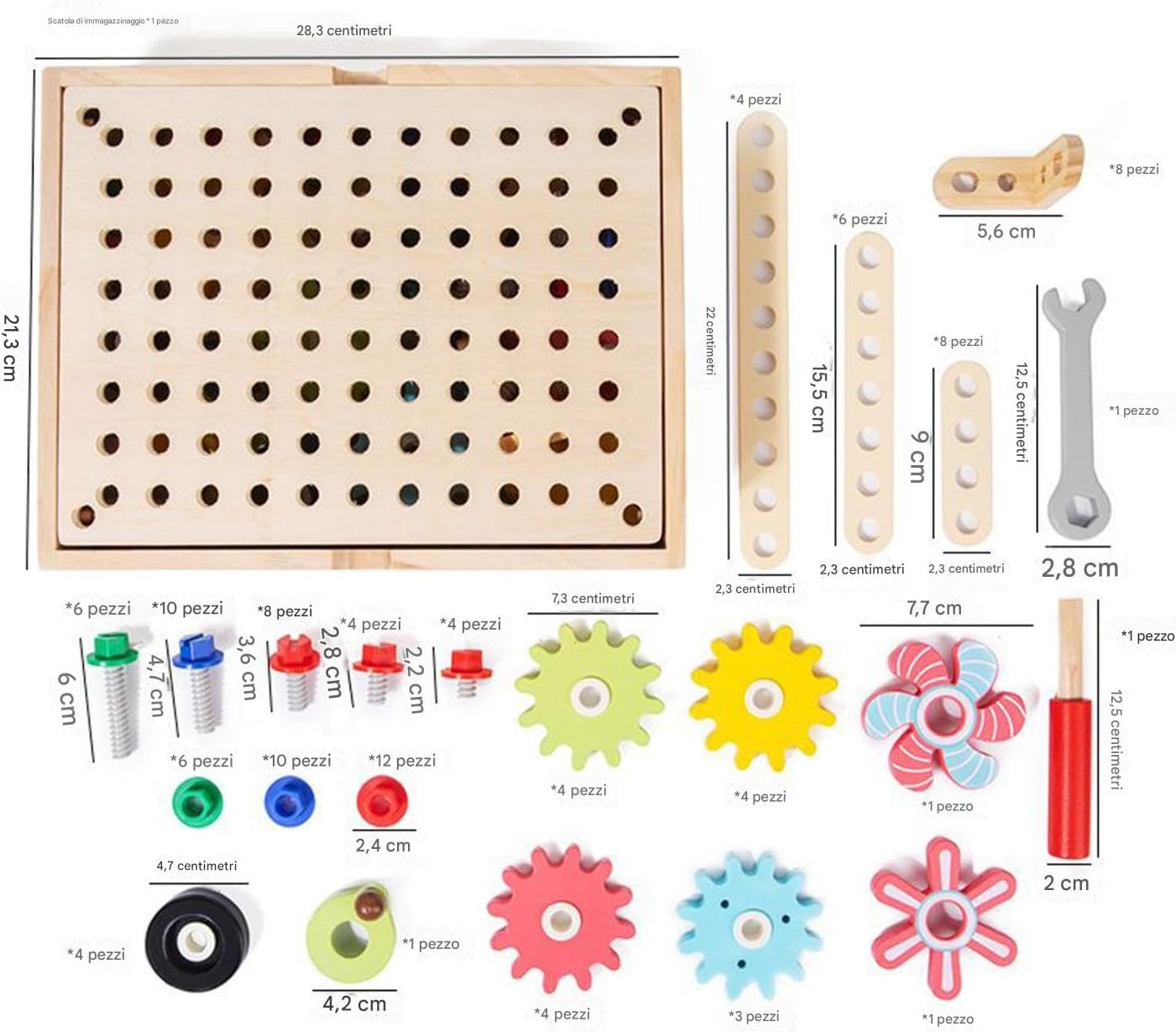 Giocattolo Prescolare Interattivo:Incoraggia la risoluzione dei problemi e la coordinazione tramite puzzle rotanti con ingranaggi, progettati per costruire il ragionamento spaziale e le abilità logiche durante le fasi di apprendimento prescolare. Esplorazione Sicura:Sperimenta la gioia dei puzzle di ingranaggi con parti lisce e arrotondate, costruzioni anti-sgancio e materiali adatti all'età. Colorazioni sicure assicurano un divertimento per i piccoli utenti. Abilità di Auto-Organizzazione: Promuove l'abitudine all'ordine attraverso un design strutturato che facilita la scoperta pratica del puzzle meccanico e semplifica il trasporto degli accessori indispensabili con efficienza Concentrazione e Coordinazione: Avanza nell'orientamento spaziale e nel coordinamento sensoriale risolvendo ingranaggi complessi, favorendo precisione mano-occhio e aumentando i tempi di concentrazione con sfide progressive strutturate Assemblaggio Libero Strutture: Favorisce creatività e ragionamento spaziale attraverso ingranaggi multi-misura combinabili liberamente e dadi sostituibili, stimolando interesse per le strutture meccaniche mentre sviluppa naturalmente abilità risolutive durante il gioco