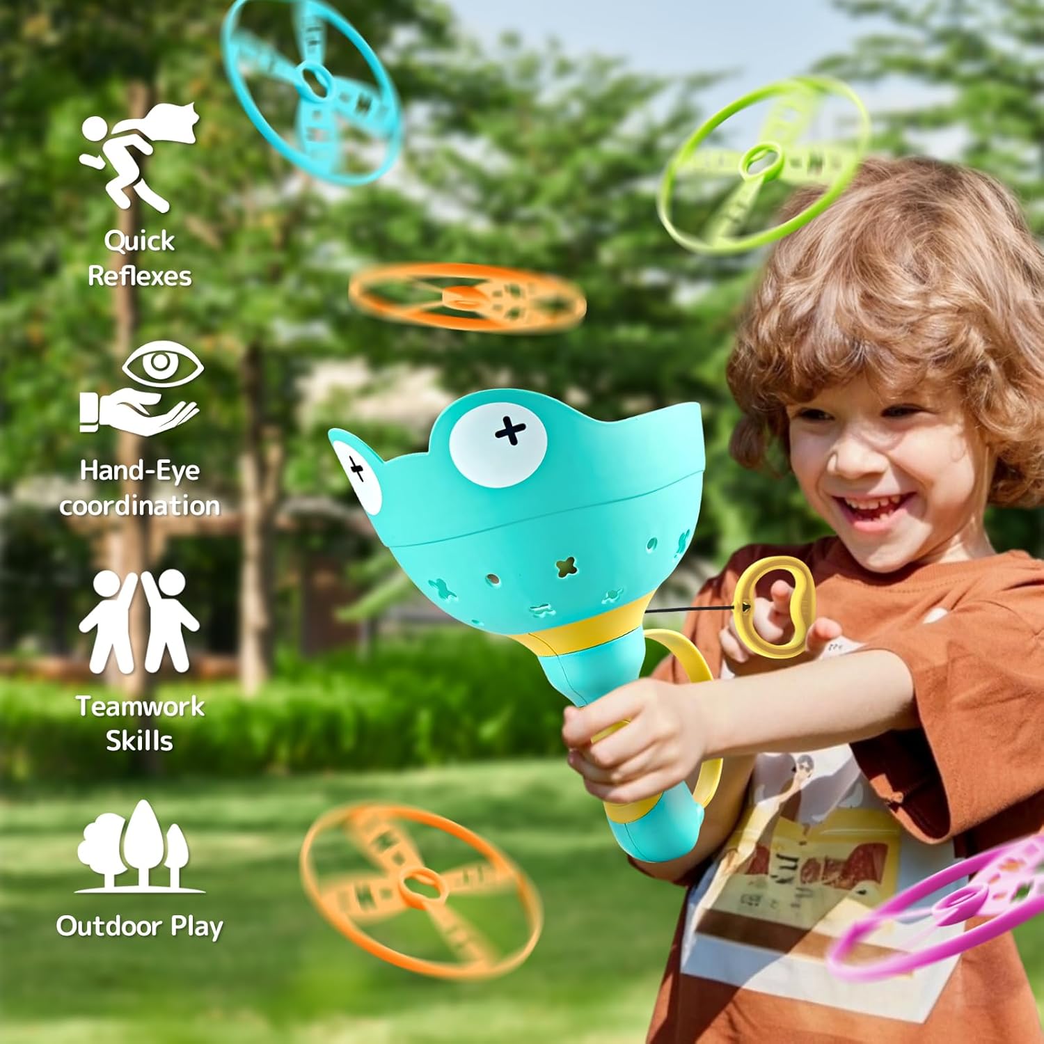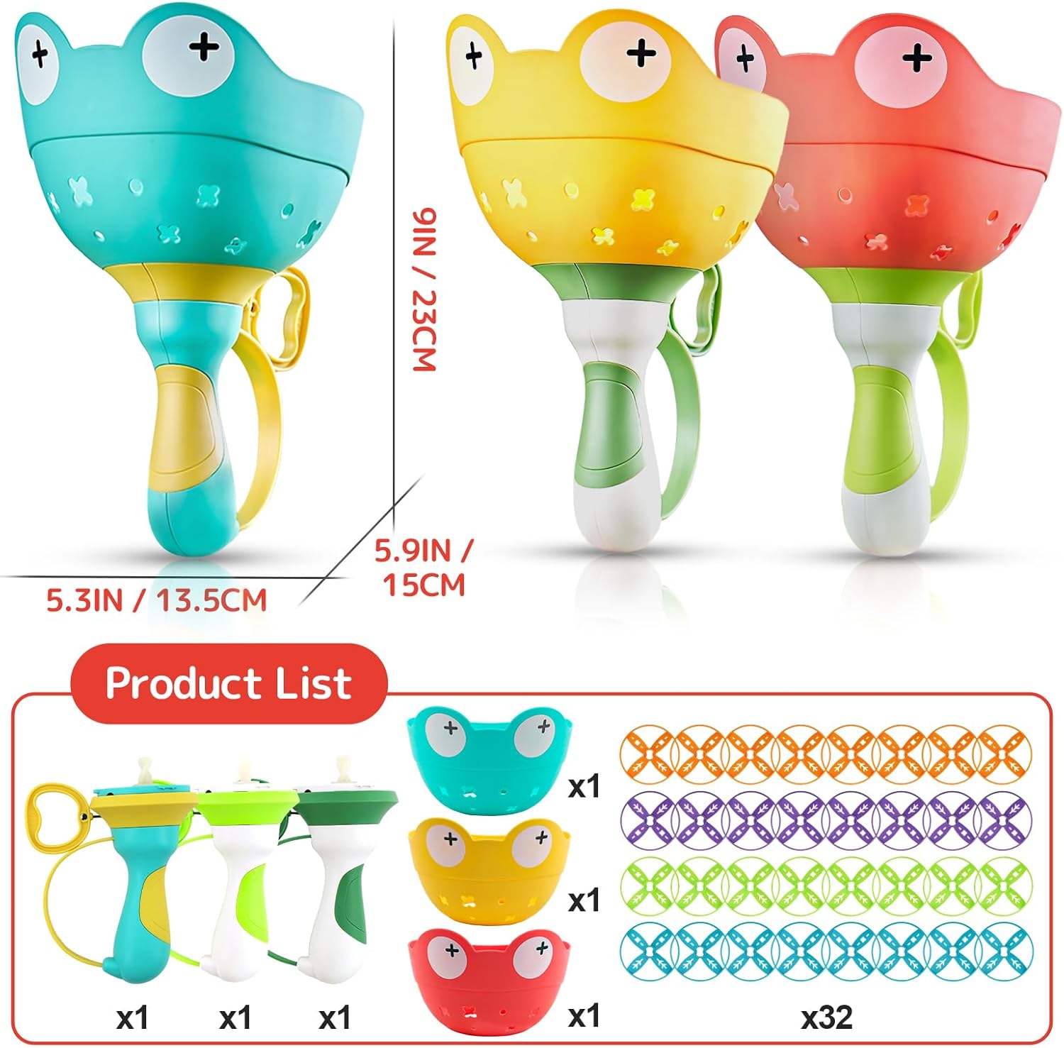 🎡【Giochi per bambini dai 4 agli 8 anni】Giochi da esterno con 24 dischi e 2 lanciatori a mano di rane. Facile da giocare. I bambini devono solo tirare l'anello di lancio e la testa della rana lancerà i dischi volanti, che i bambini devono prendere con il lanciatore, e i bambini si divertiranno a cercare di scacciarli. Vince chi prende più dischi! 🎡【Giochi per attività in casa e all'aperto】Sperimentate il divertimento dell'inseguimento dei dischi, La difficoltà di questo gioco da esterno può essere regolata in base al numero di dischi installati contemporaneamente per mantenerlo divertente e stimolante. Diversi numeri di dischi si lanciano a diverse altezze. Da 9,8 piedi a 23 piedi. Sia nel parco, nel cortile o durante il campeggio all'aperto, questo giocattolo offre una divertente esperienza di gioco all'aperto per il vostro bambino. 🎡【Materiale sicuro al 100%】Il disco volante da esterno ha superato la certificazione EN71 e CE nell'UE. I giocattoli per attività all'aperto sono realizzati in pp, materiale sicuro al 100%, non tossico, privo di BPA e ftalati. Può essere un buon modo per promuovere le attività all'aperto, sviluppare le capacità motorie e la coordinazione occhio-mano. Migliora la forma fisica e le capacità motorie dei bambini, migliorando anche le loro abilità sociali. 🎡【Giocattoli da esterno per bambini da 4 a 8 anni】Gioco di cattura manuale come gioco da esterno per bambini, giochi per bambini da 4 a 8 anni, giochi da esterno per bambini da 8 a 12 anni, giochi da esterno per bambini da 4 a 8 anni, giochi da esterno per bambini. Non richiede batterie o attrezzature aggiuntive, è completamente alimentato dai bambini. È anche un grande gioco da cortile per ragazzi e ragazze di 4 5 6 7 8 9 10 anni che i bambini possono divertirsi con i loro amici e familiari. 🎡【Giocattoli da esterno e regali ideali】I giocattoli per attività all'interno e all'esterno sono progettati per rendere i bambini più intelligenti, fantasiosi e creativi. I giochi da esterno per bambini renderanno i vostri figli più felici. Sarebbe il regalo perfetto per il tuo bambino come regalo di compleanno, regalo di Pasqua, regalo di Natale, regalo per il giorno dei bambini, regalo di Capodanno. Qualsiasi domanda per i giocattoli sensoriali per bambini, si prega di contattare il nostro servizio clienti. Forniremo il 100% di soddisfazione per il vostro.