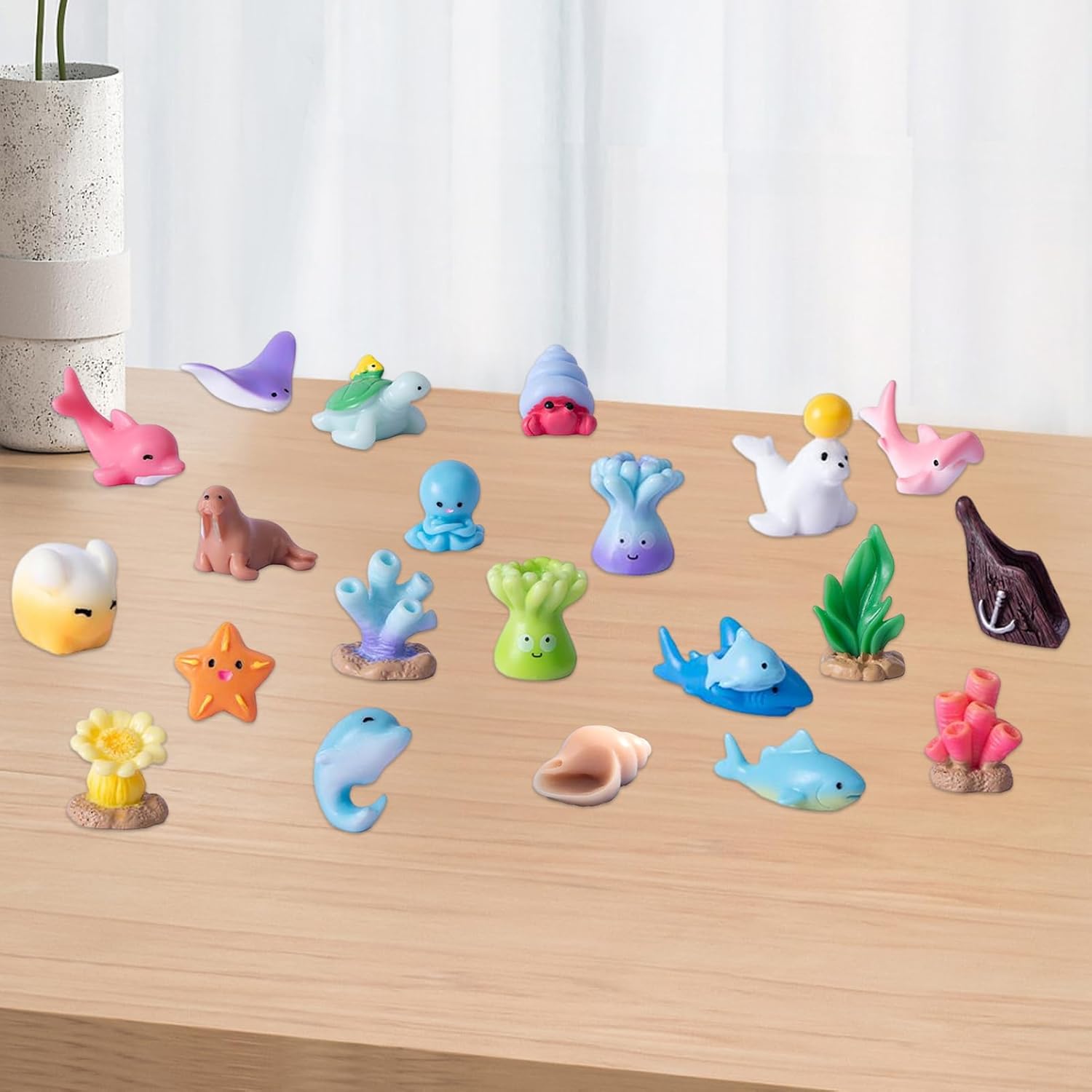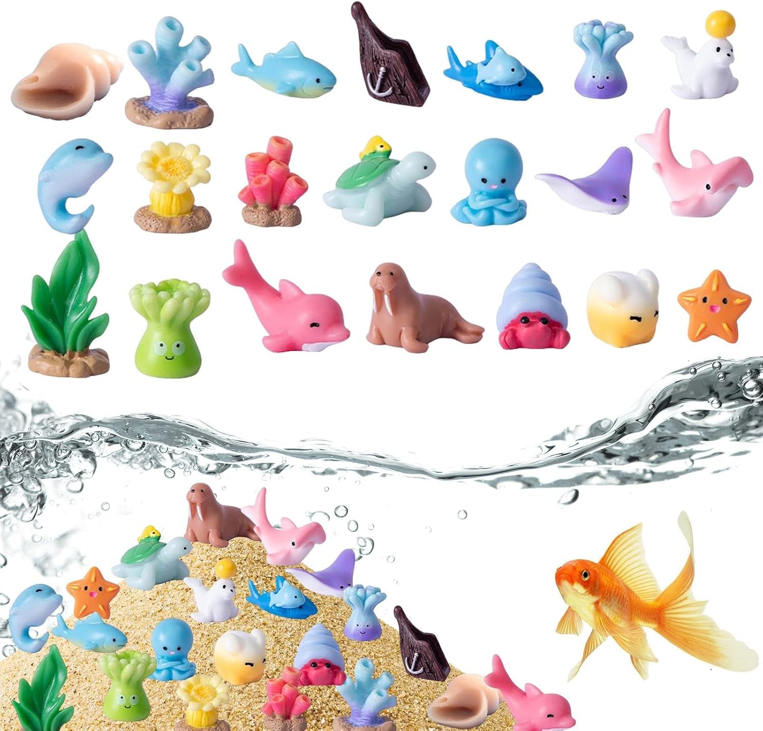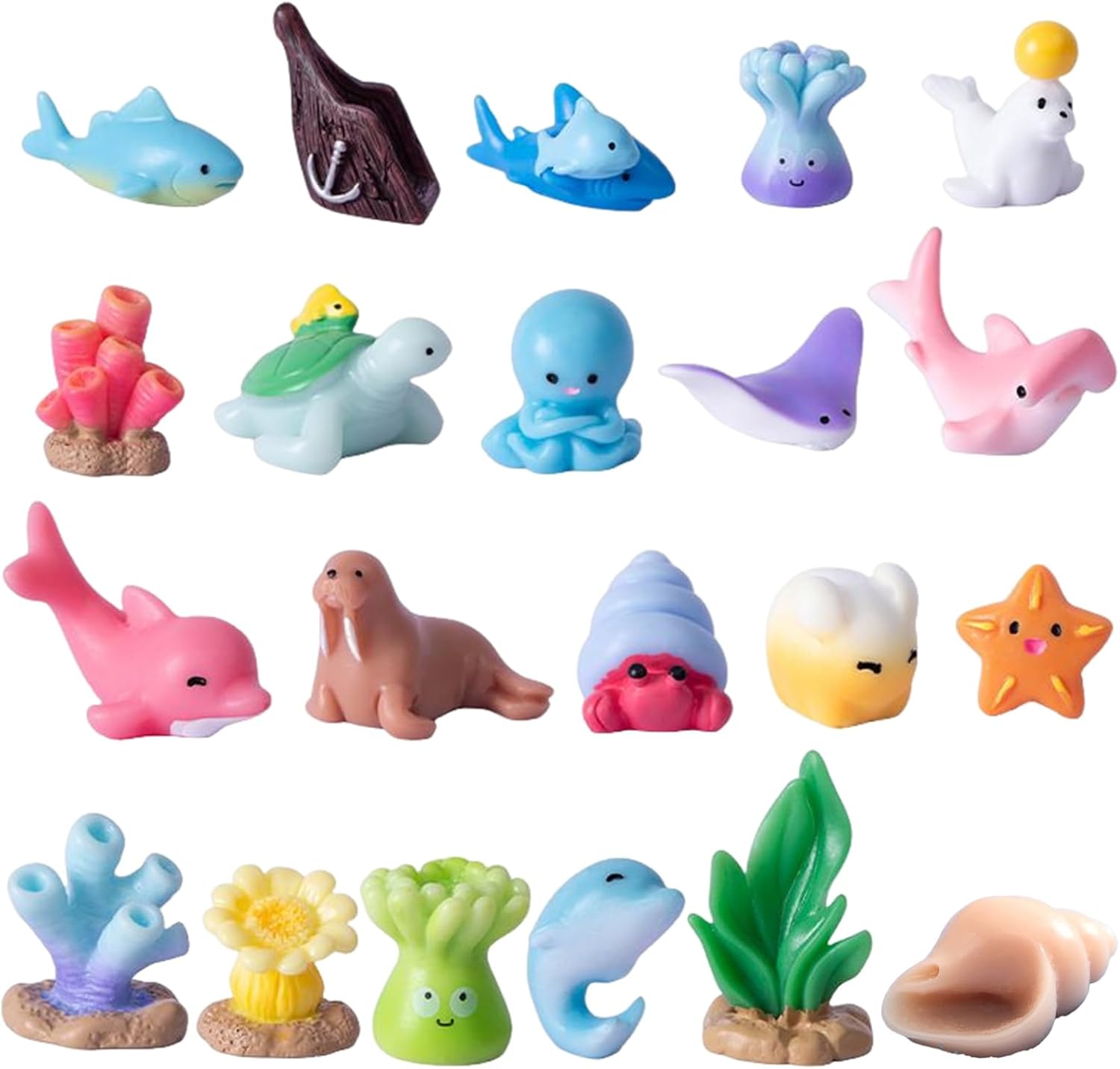 Coinvolgimento Creativo: Integra coralli e conchiglie per un fascino tridimensionale, offrendo soddisfazione manuale creativa che coltiva creatività e divertimento, rispondendo ai desideri degli appassionati di figure animali marine. Dettagli Vivaci e Dipinti a Mano: Figure artigianali con aspetto liscio e dettagli vibranti dipinti a mano, rappresentazione autentica di specie sottomarine per collezioni o giocattoli educativi Resina a Lunga Durata: Tecnologia anti-sbiadimento garantisce colori brillanti dopo permanenza in acqua. Struttura in resina sicura e senza odori offre durabilità costante per esperienze marine prolungate. Ideale per Scenari Multipli:Figure animali marini perfette per scrivania o giardino fatato, ideali per acquari e vasi fioriti. Arricchiscono ambienti creativi con design adattabile, esaltando temi decorativi diversi senza sforzo grazie al fascino naturale. Design Marino Accattivante: 21 figure con tematica marina ricreano ambienti acquatici dinamici. Stimolano curiosità e giochi di ruolo creativi attraverso dettagli vividi ed espressivi.