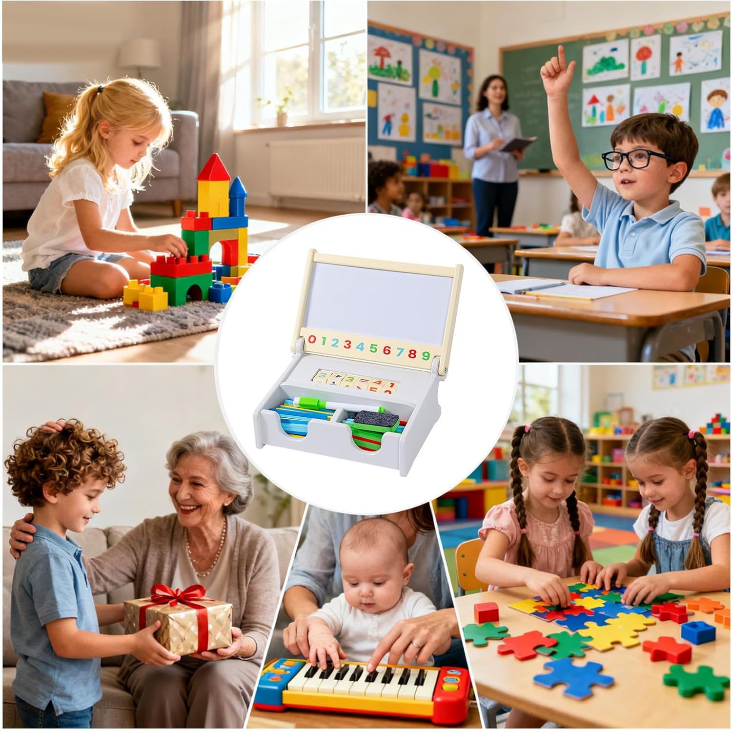 Risorsa educativa coinvolgente: concentrandosi sullo sviluppo del pensiero logico, il set di giocattoli di matematica aritmetica fornisce un modo interattivo per esercitarsi sui fondamenti di addizione e sottrazione, garantendo una preparazione alla transizione prescolare in contesti diversi come case e aule Supporto alla crescita matematica: i giocattoli aritmetici per bambini allenano la concentrazione e l'analisi integrando il miglioramento delle abilità di calcolo nel gioco, supportando lo sviluppo cognitivo multi-età con livelli di difficoltà progressivi che incoraggiano la coltivazione della risoluzione dei problemi, creando un ambiente interattivo a casa o a scuola in cui i giovani studenti possono migliorare le loro abilità matematiche passo dopo passo in modo divertente Design colorato multicomponente: questo giocattolo aritmetico presenta un vivace design multicomponente che cattura l'attenzione e incoraggia l'esplorazione autonoma, aiutando i giovani studenti a ridurre lo stress rendendo la matematica coinvolgente e divertente mentre scoprono la bellezza dei numeri in vari contesti educativi Giocattoli matematici resistenti agli urti: questi giocattoli matematici sono progettati con materiali resistenti agli urti e all'usura, garantendo una lunga durata per il gioco attivo. I bordi arrotondati senza sbavature garantiscono la sicurezza dei bambini e consentono un utilizzo regolare durante le attività di apprendimento. Perfetti per le aule o per l'uso domestico, resistono alla manipolazione quotidiana senza compromettere le prestazioni Elegante idea regalo educativa: i materiali matematici combinano strumenti di apprendimento funzionali con un'elegante presentazione regalo, ideale per esprimere la filosofia educativa e stesso fungere da gesto premuroso di cura dei genitori in occasione di riunioni, celebrazioni o momenti significativi, arricchendo perfettamente sia le esperienze di condivisione della conoscenza che quelle di costruzione di relazioni.