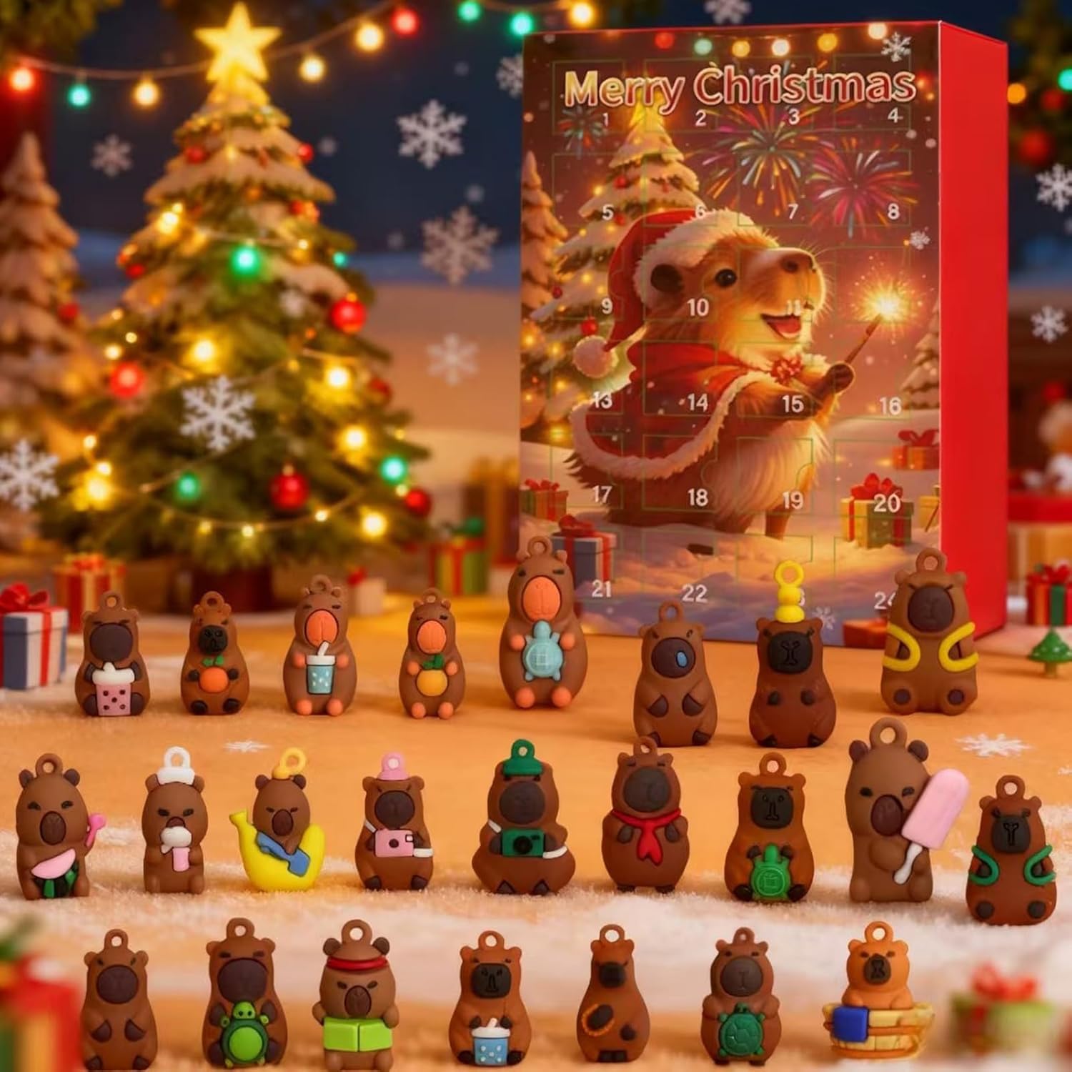 Creazione rituale quotidiana: Calendario per il conto alla rovescia di Natale Squishy Fidget Toys Con i suoi 24 slot per date, il Calendario 'Avvento Capybara porta entusiasmo alle celebrazioni natalizie, promuovendo una tradizione di scoperta e gioia mentre crea ricordi preziosi con le persone care durante il conto alla rovescia stagionale Tradizione interattiva: calendario con il conto alla rovescia per ragazze, ragazzi e bambini. Il calendario del conto alla rovescia di Natale introduce ogni giorno un nuovo personaggio, aggiungendo un elemento di meraviglia alle mattine, coltivando un ambiente caldo e festoso e incoraggiando interazioni significative tra genitori e figli per tutto dicembre. Resiliente artigianato 3D: calendario per il conto alla rovescia di Natale con 24 gomme. Il calendario per il conto alla rovescia per Natale è caratterizzato da materiali resistenti all'usura e arte in rilievo 3D, garantendo che mantenga contorni arrotondati e alla deformazione anche dopo ripetuti smontaggio e rimontaggio, rendendolo un fulcro affidabile per i preparativi festivi e le tradizioni familiari anno dopo anno Soluzione espositiva coinvolgente: regali per bambini I giocattoli per bambini piccoli consentono la disposizione verticale come espositore da tavolo, unendo il fascino decorativo con il duplice scopo di collezionismo o gioco quotidiano, favorendo la creatività e il divertimento in diversi ambienti senza soluzione di continuità Aggiungi entusiasmo a ogni giorno: calendario per il conto alla rovescia per ragazze, ragazzi e bambini Con il calendario per il conto alla rovescia, aggiungere divertimento diventa semplice poiché aiuta a tenere traccia dei prossimi eventi, mostrando premurosità e cura; una deliziosa opzione regalo per amici e , arricchendo i preparativi per le vacanze e rendendo divertenti le giornate di tutti i giorni