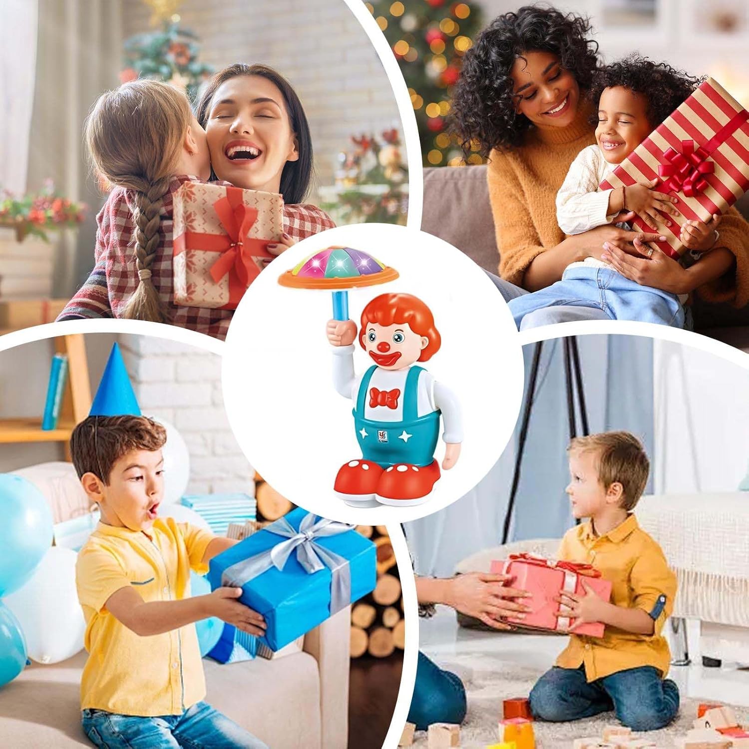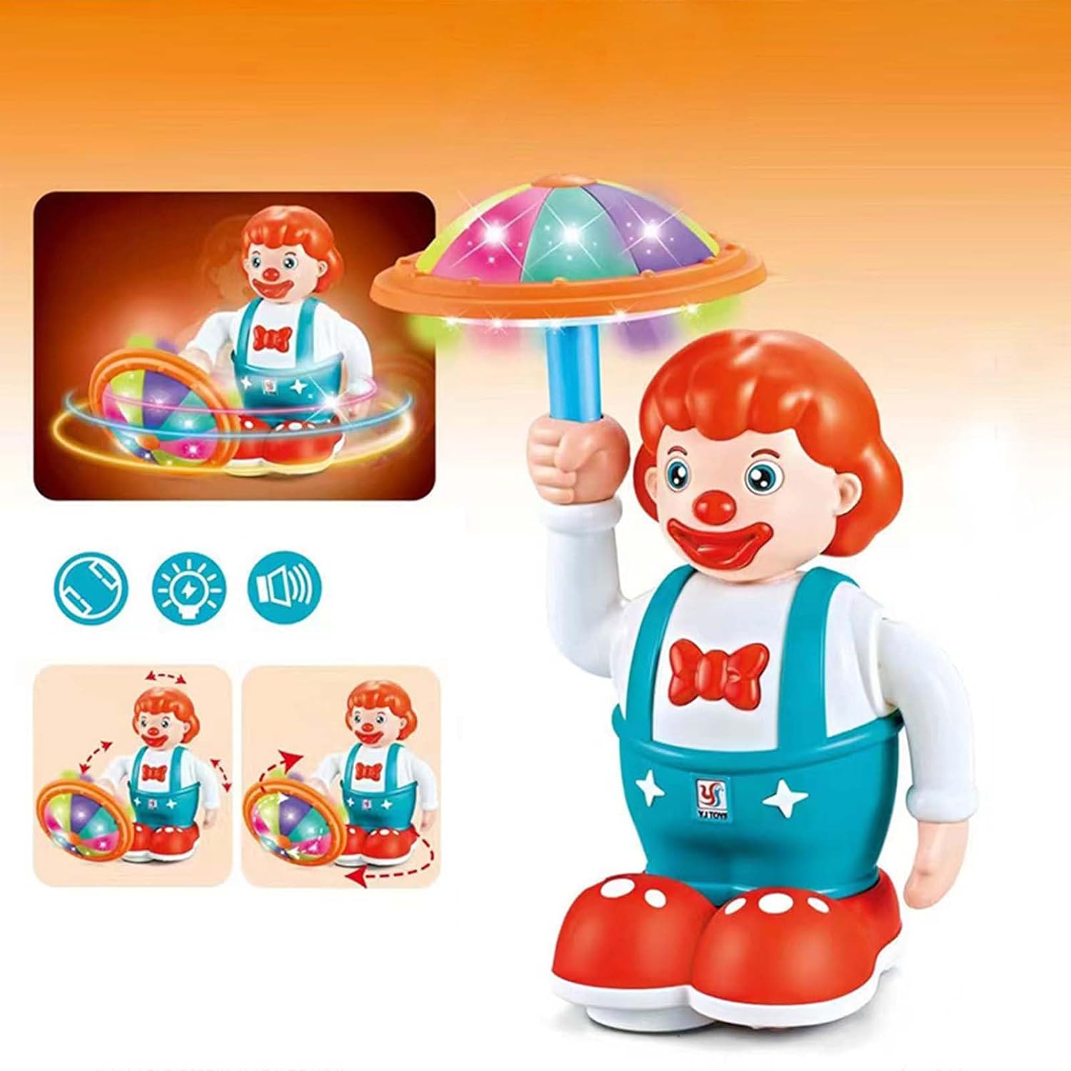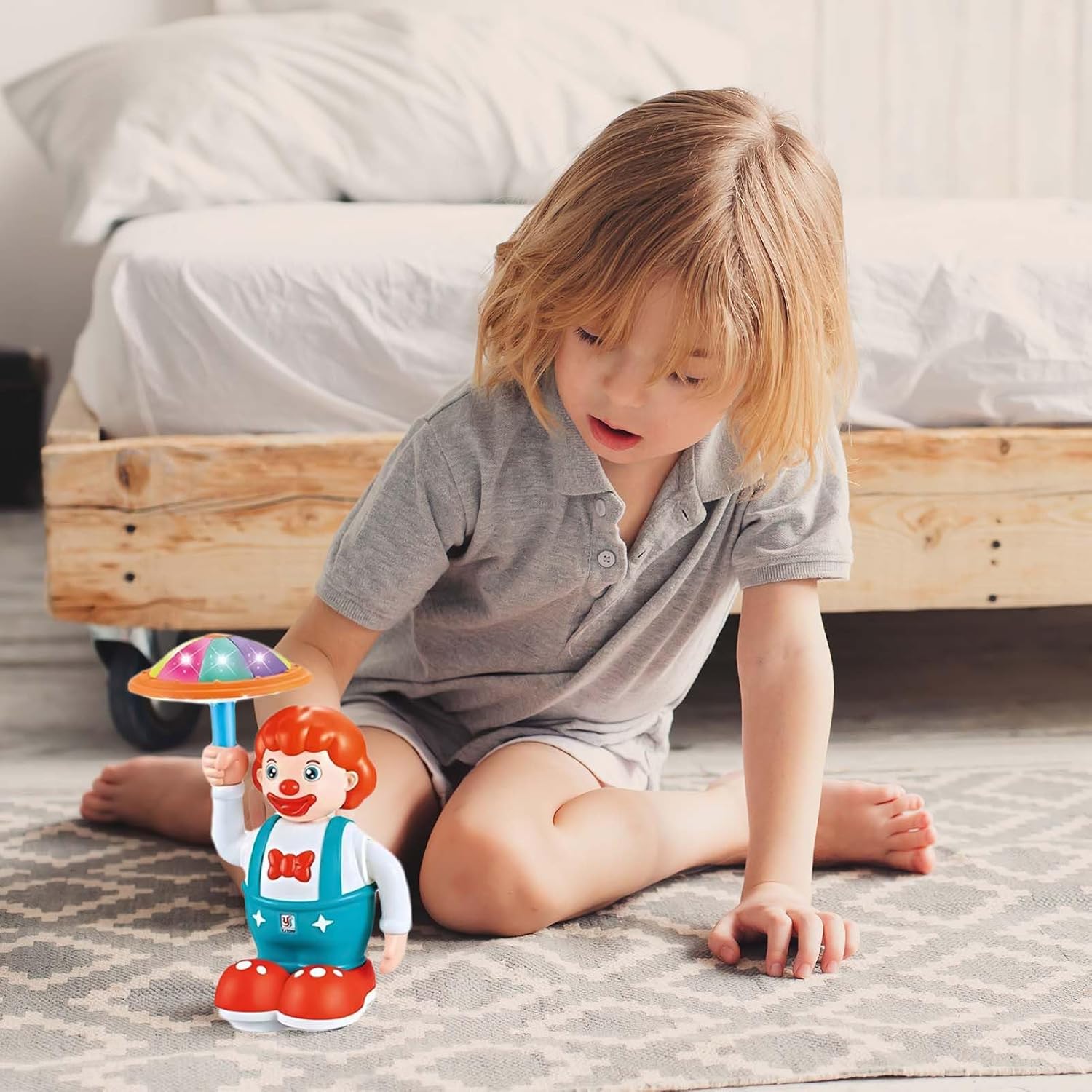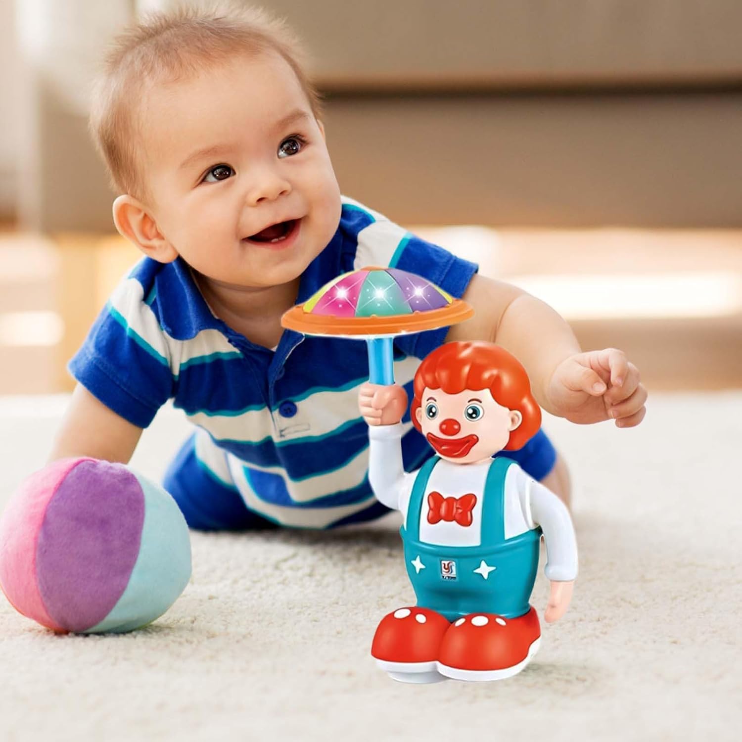 Divertimento musicale interattivo: delizia il con questo adorabile giocattolo a tema circo che balla, striscia e gira in un movimento completo a 360 gradi. Progettato con luci accattivanti e suoni allegri, mantiene i bambini impegnati, incoraggiando l'esplorazione e il movimento sensoriali. Luci e suoni vibranti: con luci a LED colorate e melodie divertenti, questo giocattolo illuminato porta l'eccitazione e il divertimento in ogni sessione di gioco. Le melodie ritmiche e il display luminoso stimolano l'udito e la visione di figlio per un'esperienza sensoriale gioiosa. Incoraggia lo sviluppo motorio: il movimento strisciante incoraggia i bambini a inseguire, muoversi e raggiungere, aiutando a migliorare il coordinamento degli occhi e le capacità motorie lorde. per il gioco attivo che combina l'apprendimento con l'intrattenimento in modo divertente e interattivo. Azione rotante a 360 gradi: la base rotante flessibile consente un movimento regolare su varie superfici, rendendolo per pavimenti, tappeti o tappetini. Il suo design interattivo garantisce una risata infinita mentre i bambini lo guardano strisciare, girare e cambiare direzione automaticamente. Portali e a batteria: leggero e facile da trasportare, questo giocattolo è alimentato da batterie sostituibili per un gioco comodo ovunque. È un grande compagno di viaggio far divertire i bambini durante le giostre, le riunioni di famiglia o le date da gioco.