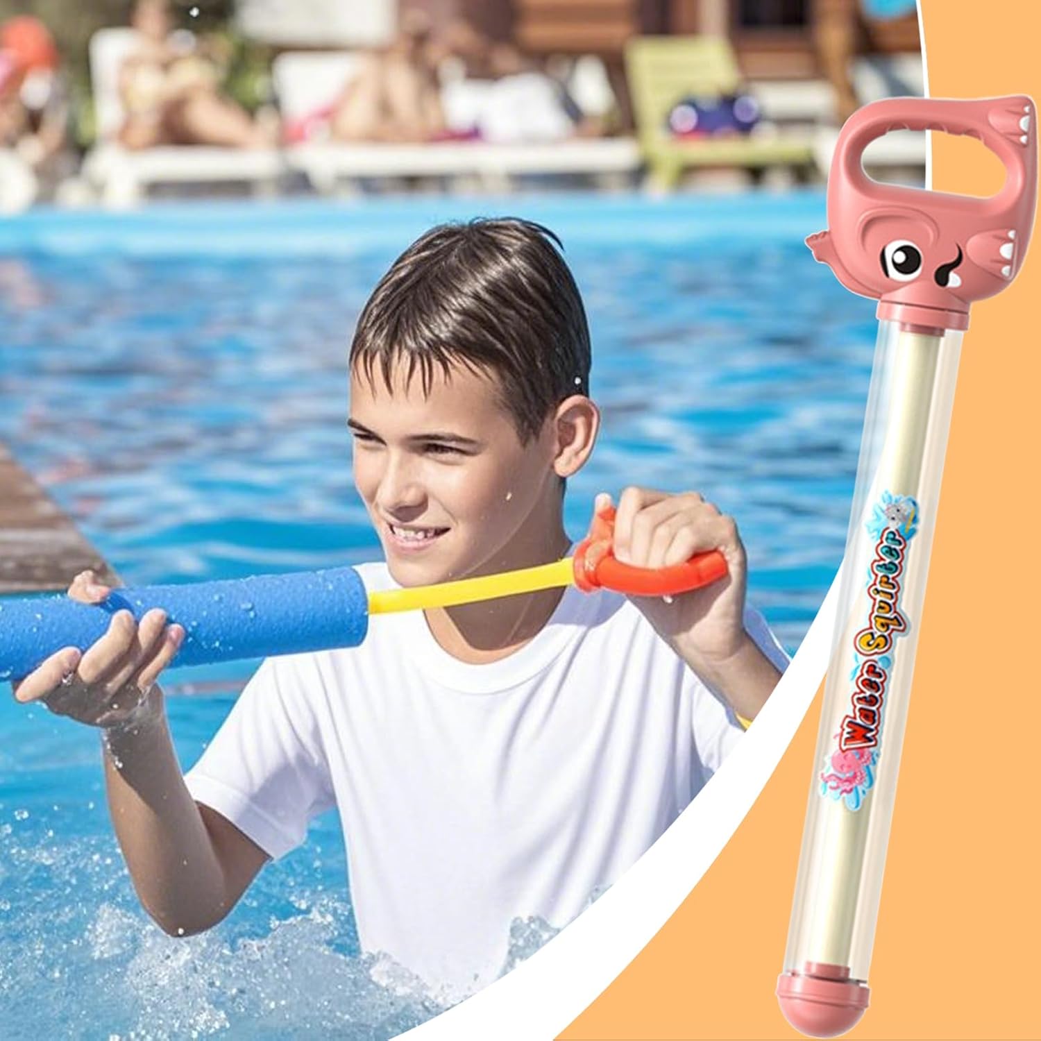 Attivazione rapida: ore di divertimento senza problemi con funzione di trazione rapida senza bisogno di gonfiaggio, garantendo getti potenti per feste acquatiche Durevolezza: realizzato con materiali sicuri per bambini, struttura rinforzata, bordi lucidi e resistenza all'usura per garantire sicurezza e qualità duratura durante il gioco attivo dei bambini. Scelta adatta: giocattolo d'acqua colorato che aumenta il divertimento interattivo, ottima scelta come regalo per bambini da condividere in eventi festivi. Design confortevole: la forma curva con impugnatura antiscivolo assicura una presa confortevole nelle mani di tutte le età. Migliora la sicurezza della presa nei giochi d'acqua con effetto . Gioia adattabile: porta divertimento a feste in piscina e giochi in spiaggia con getto configurabile. Migliora le dinamiche delle guerre d'acqua offrendo opzioni di gioco flessibili in diversi ambienti esterni