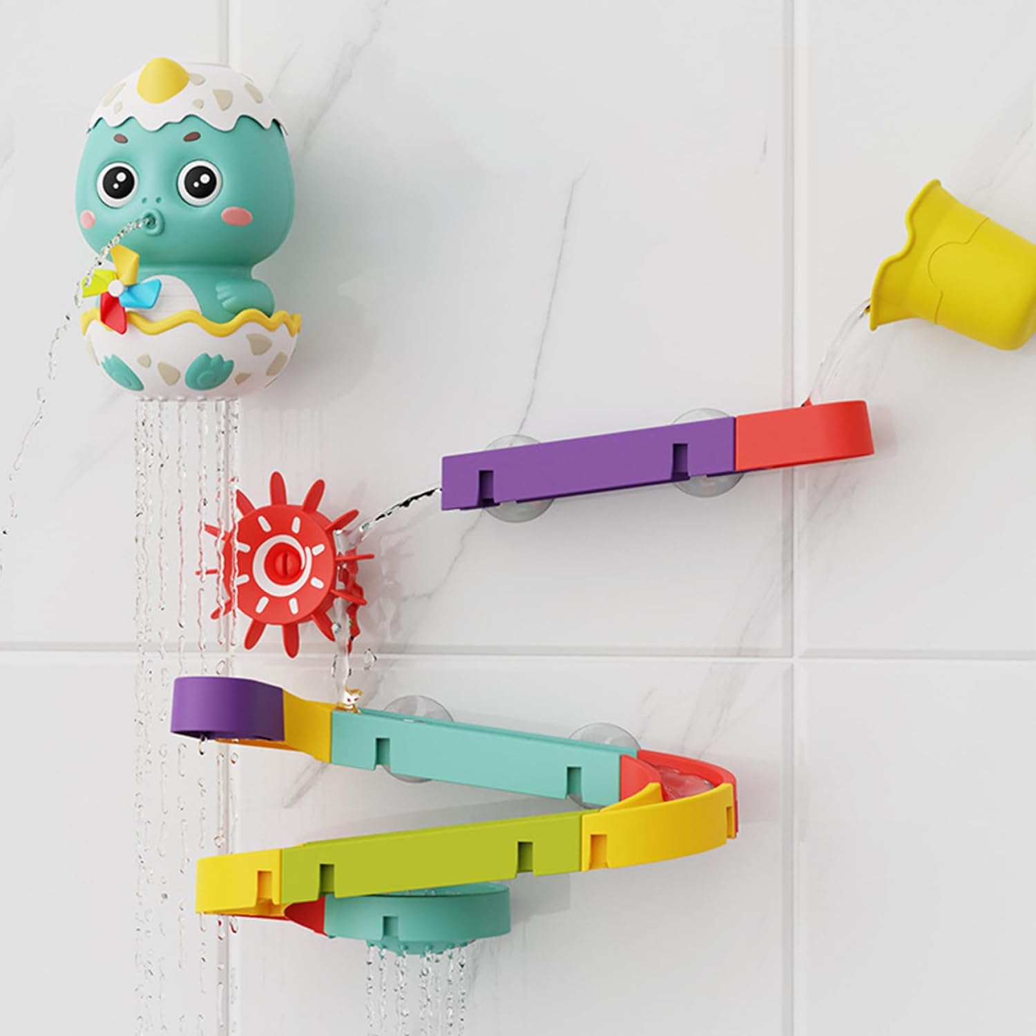 Pista interattiva fai-da-te: questo set di giocattoli da bagno include una pista fai-da-te e palline, che consentono ai bambini di costruire il loro scivolo acquatico e guardare le palline rotolare giù..Questa funzionalità interattiva incoraggia la creatività e la capacità di risoluzione dei problemi, trasformando il momento del bagno in un'esperienza coinvolgente. Materiali affidabili e sicuri: realizzati con materiali plastici, questi giocattoli per il bagnetto sono sicuri per i tuoi piccoli..Sono progettati per resistere ai giochi d'acqua garantendo allo stesso tempo un divertimento senza preoccupazioni, così i genitori possono rilassarsi mentre i loro bambini esplorano. Perfetto per i bambini piccoli: con il loro design accattivante e le funzionalità interattive, questi giocattoli da bagno con dinosauri sono ideali per compleanni, vacanze o qualsiasi occasione..Sono un modo creativo e divertente per rendere il momento del bagnetto la parte preferita della giornata per i bambini! Divertente design a dinosauro: i nostri simpatici giocattoli da bagno con dinosauri con scivolo acquatico presentano un design adorabile che catturerà l'immaginazione del tuo bambino..I colori vivaci e le forme giocose rendono il momento del bagnetto emozionante e divertente per neonati e bambini dai 3 ai 6 anni. Esperienza di gioco educativa: progettati per promuovere l'apprendimento attraverso il gioco, questi giocattoli da bagno aiutano a sviluppare le capacità motorie mentre i più piccoli manipolano la pista e le palline..Imparano a conoscere causa ed effetto vedendo le palline scivolare lungo la pista, rendendo il momento del bagnetto divertente ed educativo.