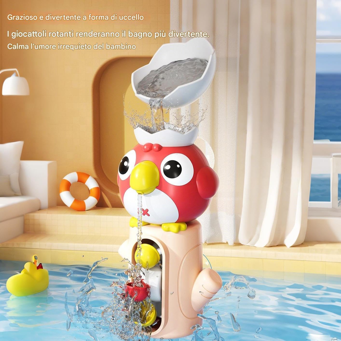 Gioco Interattivo in Vasca: Tema uccellini cartoon con forme vivaci e colori brillanti aumentano naturalmente il divertimento del bagno, attirando l'attenzione dei bambini per una maggiore gioia nel gioco Design Affidabile: Superfici levigate e di schegge unite all'ABS di qualità assicurano una costruzione sicura e antigraffio, ideale per il contatto con la pelle delicata dei bambini durante il bagnetto. Design Stabile: Ventose robuste mantengono i giocattoli ben fissi su vasca o piastrelle, evitando movimenti indesiderati durante il gioco Esperienza Bagno Dinamica: Stimola l'immaginazione e la creatività dei bambini grazie all'uscita rotante 'acqua che crea flussi dinamici in continuo cambiamento durante il divertente gioco nella vasca, rendendo ogni bagno un'avventura unica. Genitore-Bambino: Favorisce la connessione genitore-figlio e aiuta a sviluppare coordinazione occhio-mano e motricità fine, offrendo un'esperienza educativa durante il bagnetto giocoso con giocattoli da bagno