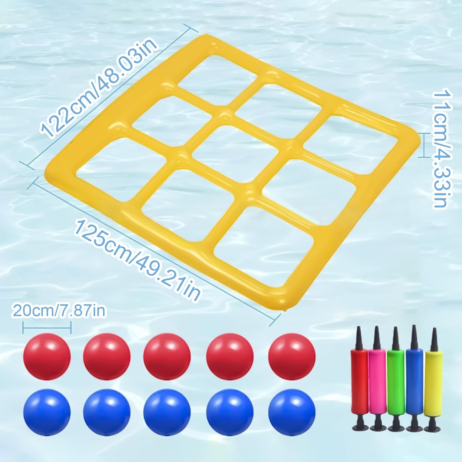 Dimensioni da viaggio ottimizzate: design compatto con telaio pieghevole leggero e rapido rilascio dell'aria. Massima maneggevolezza per esigenze di viaggio, attrezzatura da campeggio e conservazione all'aperto. Aiuti di nuoto stabili: con stabilità impermeabile grazie alle superfici antiscivolo e al baricentro basso per una tenuta ottimale in piscina o . Il divertimento è sempre in primo piano in questa costruzione affidabile. Innovativo set da gioco: offre tre modalità di gioco stimolanti per promuovere il pensiero strategico, con una nuova interpretazione del classico divertimento per il bagno per un divertimento sicuro e divertente Facile da montare: contiene componenti gonfiabili e palline da lancio per un uso immediato su una superficie di 125 x 125 cm, consente alle famiglie di giocare senza sforzo senza accessori o preparazioni Aumento della coordinazione: l'area opaca antiscivolo e la palla da 20 cm ottimizzata garantiscono una presa sicura e un allenamento ergonomico per migliorare le capacità motorie durante il gioco