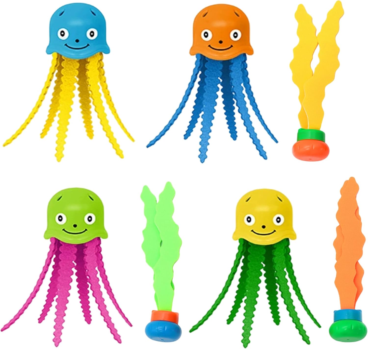 Coinvolgi il divertimento in acqua: tuffati in infinite emozioni estive con i giocattoli da immersione con polpi e alghe marine da 7 pezzi, progettati per catturare l'immaginazione dei bambini e intrattenerli in piscina per ore. Questo divertente set incoraggia il gioco attivo e aiuta a sviluppare le abilità di nuoto. Design sicuro: realizzati con materiali atossici e privi di BPA, questi giochi da piscina garantiscono un utilizzo sicuro per i bambini mentre resistono a difficili avventure subacquee, rendendoli perfetti per ripetuti schizzi e giochi di immersioni. Vivaci e accattivanti: caratterizzati da polpi e alghe colorate e colorate, questi giocattoli sono facili da individuare sott'acqua, migliorano la sicurezza dei bambini durante le immersioni e il recupero e aggiungono un'estetica giocosa a qualsiasi ambiente della piscina. Gioco che potenzia le abilità: i giocattoli subacquei promuovono le capacità motorie e la coordinazione occhio-mano mentre i bambini si esercitano a tuffarsi, nuotare e recuperare oggetti, rendendo il tempo in piscina divertente e benefico per il loro sviluppo fisico. Regalo estivo perfetto: questo set da 7 pezzi è un regalo ideale per compleanni o feste estive, porterà gioia ed eccitazione ai giochi in piscina dei bambini, stimolando attività all'aperto e giochi acquatici fantasiosi.