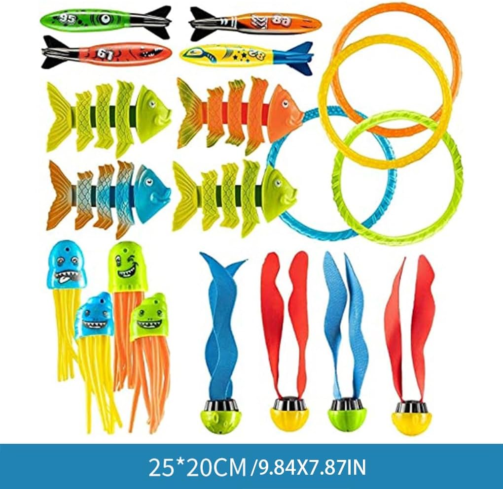 Atossico e ipoallergenico: realizzati con squisita fattura, questi giocattoli sono realizzati con materiali atossici e ipoallergenici, garantendo la sicurezza dei bambini mentre divertono con i giochi subacquei Varietà: questo set di giocattoli da piscina include diversi tipi di giocattoli colorati, offrendo ore di divertimento per bambini e famiglie Facile da afferrare: realizzati in ABS con linee morbide e senza sbavature, questi giocattoli subacquei sono facili da tenere e giocare per i bambini Edutainment: combinando divertimento e apprendimento, questi giocattoli servono per allenare la coordinazione -mano e le abilità di immersione dei bambini mentre giocano in piscina Giocattoli subacquei: migliora le abilità subacquee dei tuoi bambini con questo set di giochi subacquei sicuro e divertente