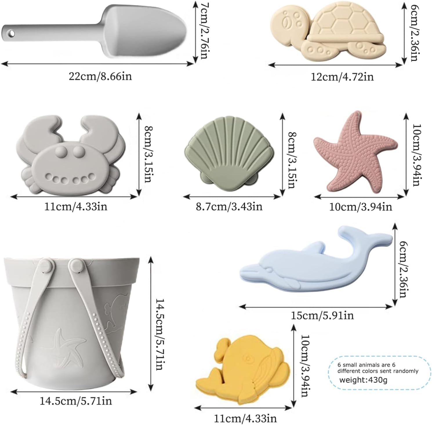 Materiale in silicone sicuro: realizzati in silicone atossico, questi giocattoli da spiaggia sono sicuri per far giocare il tuo bambino, impermeabili e facili da pulire..Il materiale morbido è delicato sulle mani e garantisce un uso duraturo. Educativo e di sviluppo: giocare con questi giocattoli Sand Box può aiutare a sviluppare le capacità motorie, la coordinazione occhio-mano e la creatività del tuo bambino..È un modo divertente ed educativo per imparare e crescere. Luminosi e colorati: i colori vivaci di questi giocattoli da spiaggia per bambini cattureranno sicuramente l'attenzione di tuo figlio e miglioreranno la sua esperienza di gioco..Le forme e i design divertenti aggiungono un ulteriore entusiasmo al loro tempo di gioco. Set completo: questo set include 1 * pala, 1 * secchio, 6 * vari stampi per sabbia e 1 * borsa da spiaggia, offrendo infinite possibilità di gioco creativo..Lascia che l'immaginazione di tuo figlio scateni mentre costruisce di sabbia, crea forme e altro ancora. Portatili e adatti ai viaggi: il design leggero e compatto di questi giocattoli con la sabbia li rende perfetti per i viaggi..Mettili nella borsa da spiaggia o in valigia e portali con te ovunque tu vada.