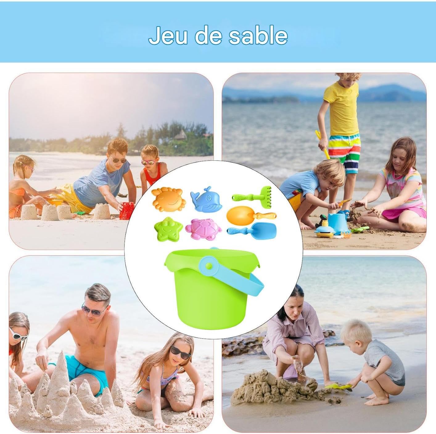 Soluzione Sabbia Portatile: con il suo design portatile e leggero, questo set consente un passaggio da un luogo all'altro senza sforzo, garantendo che possano immergersi nel gioco della sabbia ovunque e in qualsiasi momento occupando pochissimo spazio. Massimo comfort visivo: una gamma di colori ispirati agli elementi naturali sostiene lo sviluppo estetico delle giovani menti, fornendo una sensazione visiva equilibrata e piacevole durante l'esplorazione sulla spiaggia. Regalo divertente: set colorato per ore di risate sulla sabbia. Perfetto come presente per vacanze o eventi festivi, promuovendo lo sviluppo attraverso il gioco senza sforzo. Manipolazione confortevole: design ergonomico, bordi lisci e finiture curate, questi giocattoli da spiaggia migliorano la presa durante i momenti di gioco interattivo. Sicuro e facile da usare per le mani piccole. Sviluppo competenze: questi giocattoli da spiaggia combinano molti strumenti per impilare, modellare e indossare la sabbia, stimolando la creatività sviluppando abilità chiave attraverso disegni giocosi per esperienze di gioco gratificanti in spiaggia o sandbox.