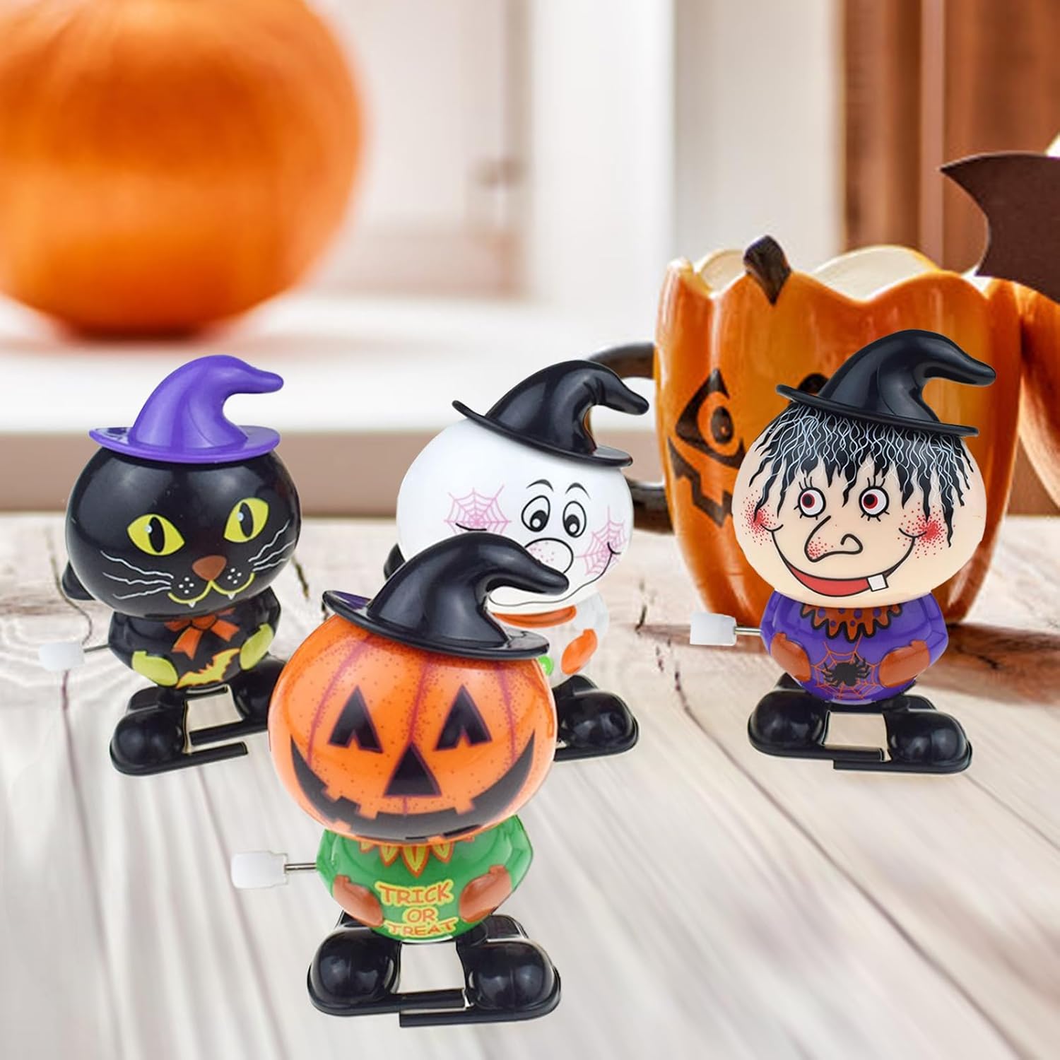 Divertente e durevole: porta i tuoi bambini spirito di Halloween con questo giocattolo a orologeria che salta automaticamente mentre sfoggia espressioni terrificanti, cappelli e colori accattivanti. Lascia che si godano ore di divertimento e risate con questo giocattolo resistente e divertente. Risparmio energetico: questo giocattolo a orologeria di Halloween è una meraviglia senza problemi! Non necessita di batterie in quanto funziona con metalliche a risparmio energetico. Giralo e avvolgilo e guardalo muoversi o saltare da solo, creando un'esperienza inquietante e deliziosa. È facile da usare e non danneggia l'ambiente. Durevole e squisito: esalta le tue feste di Halloween con il nostro giocattolo a orologeria che mostra robustezza e durata superiori. Realizzato con materiali ABS sicuri, questo giocattolo presenta dettagli squisiti. È resistente all'usura e l'eccellente lavorazione garantisce che più a lungo, offrendo ai tuoi bambini ore di divertimento in più. Regali squisiti: rendi la tua festa di Halloween ancora più emozionante con il nostro giocattolo a orologeria. È un regalo squisito che aggiungerà più divertimento e festività a qualsiasi celebrazione, inclusi compleanni, Natale e Capodanno. I bambini lo adoreranno sicuramente, rendendolo un'opzione regalo perfetta per la scuola. Set divertente e pratico: questo giocattolo a orologeria di Halloween è un set di 4 pezzi molto interessante che include una , una , un gatto nero e un pupazzo di neve. Ogni giocattolo ha un dispositivo di avvolgimento sul lato che lo fa avanzare dopo l'avvolgimento. Puoi condividere questo set con la tua famiglia e i tuoi amici e goderti l'atmosfera festosa.