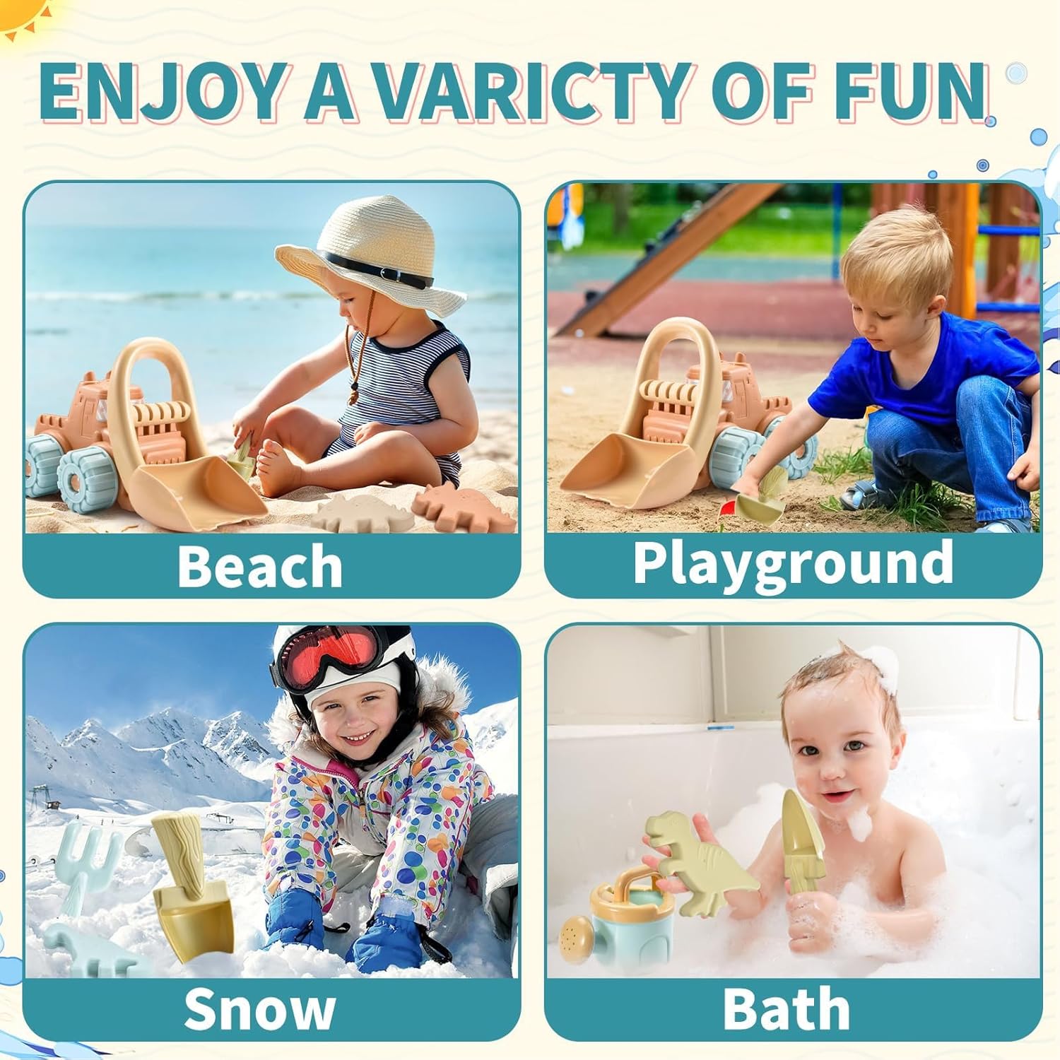 Giocattoli di sabbia di plastica: realizzati in plastica con bordi lisci per scavi e costruzioni sicure in sabbia o acqua. Evoro di gioco all'aperto: migliora le capacità motorie e la creatività mentre i bambini costruiscono tappeti sabbia, scava trincee ed esplorano i finti scenari di costruzione. Kit di attività estiva: non richiede assemblaggio: disimballare e giocare per l'intrattenimento all'aperto istantaneo. Set di sabbia per la costruzione di dinosauro: include autocarri con cassone ribaltabile, pala, rastrello, clessidra e bottiglia d'acqua per il gioco in spiaggia a tema dinosauro immersivo con 5 strumenti interattivi. Divertimento per l'acqua multi-locazione: per viaggi in spiaggia, sandbox di cortile o gioco a bordo piscina con strumenti leggeri progettati per le mani piccole.