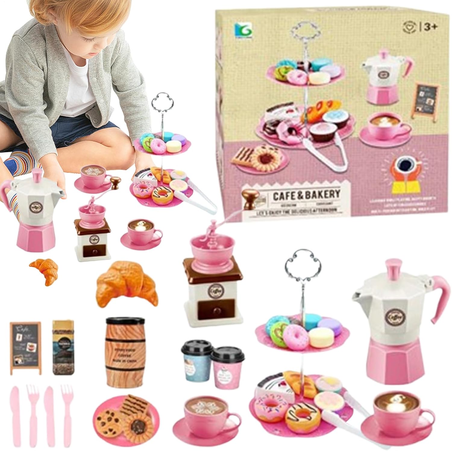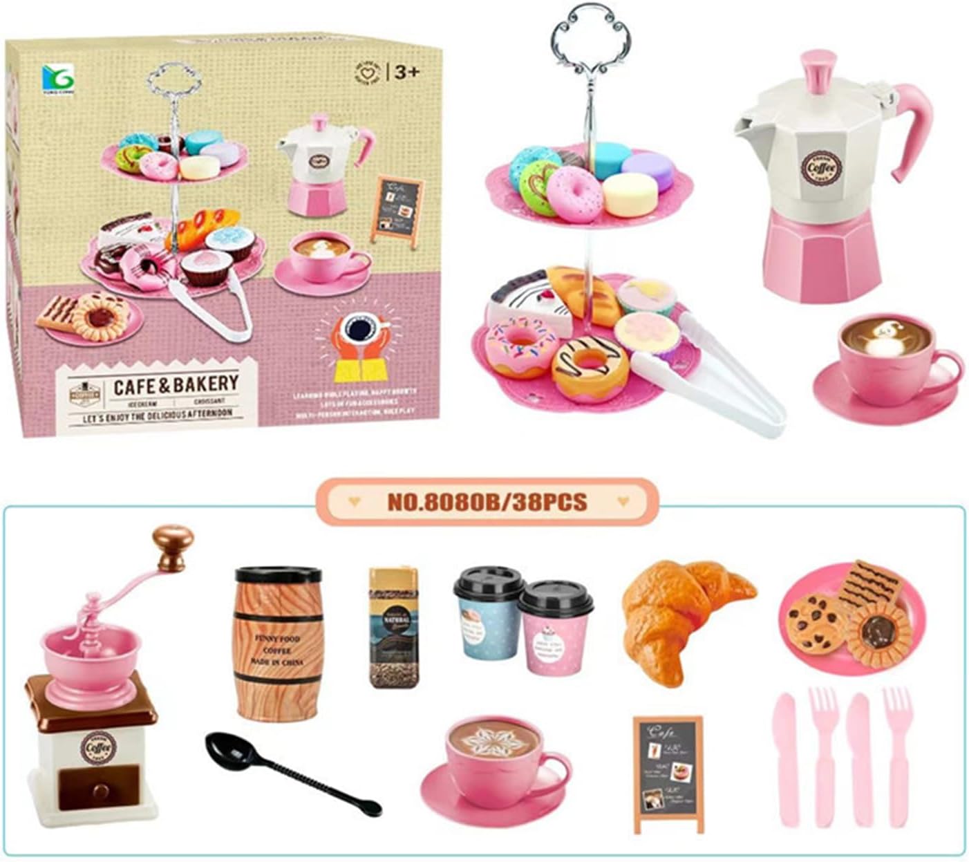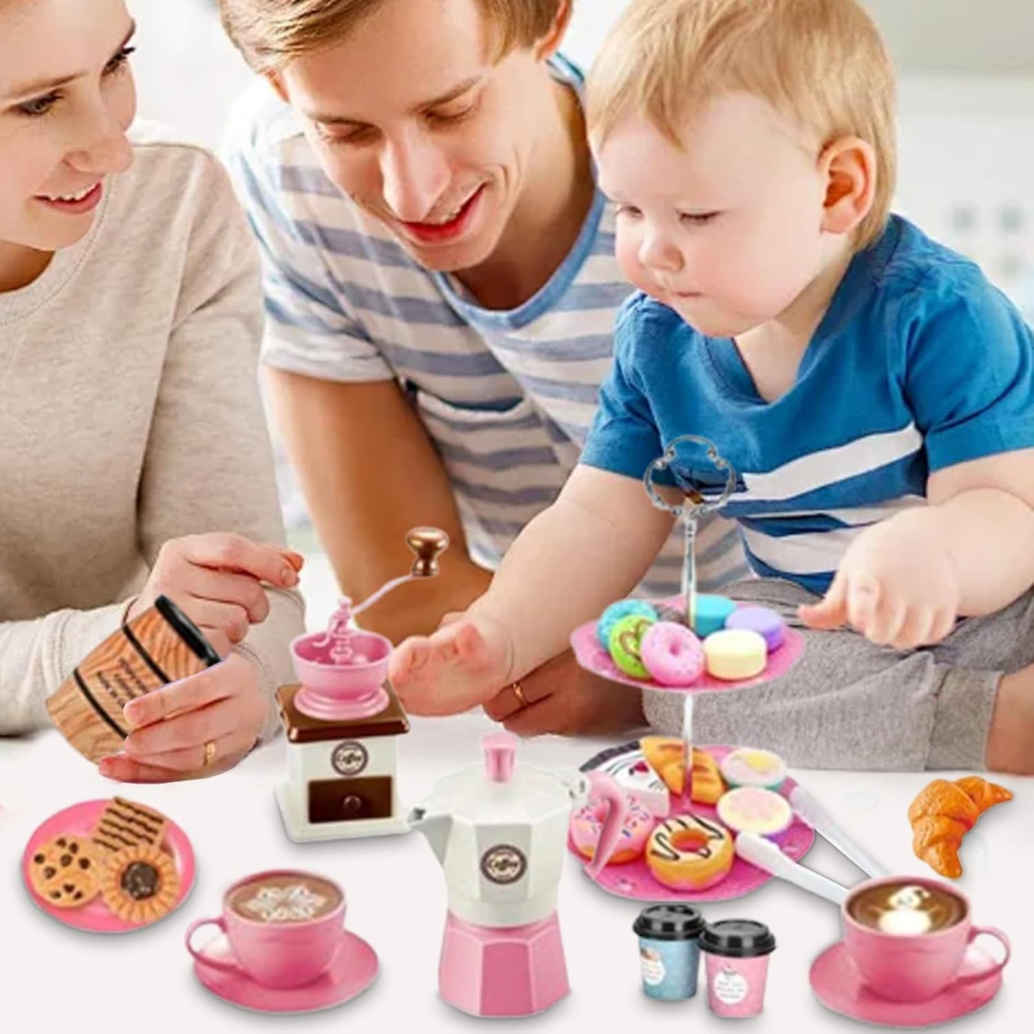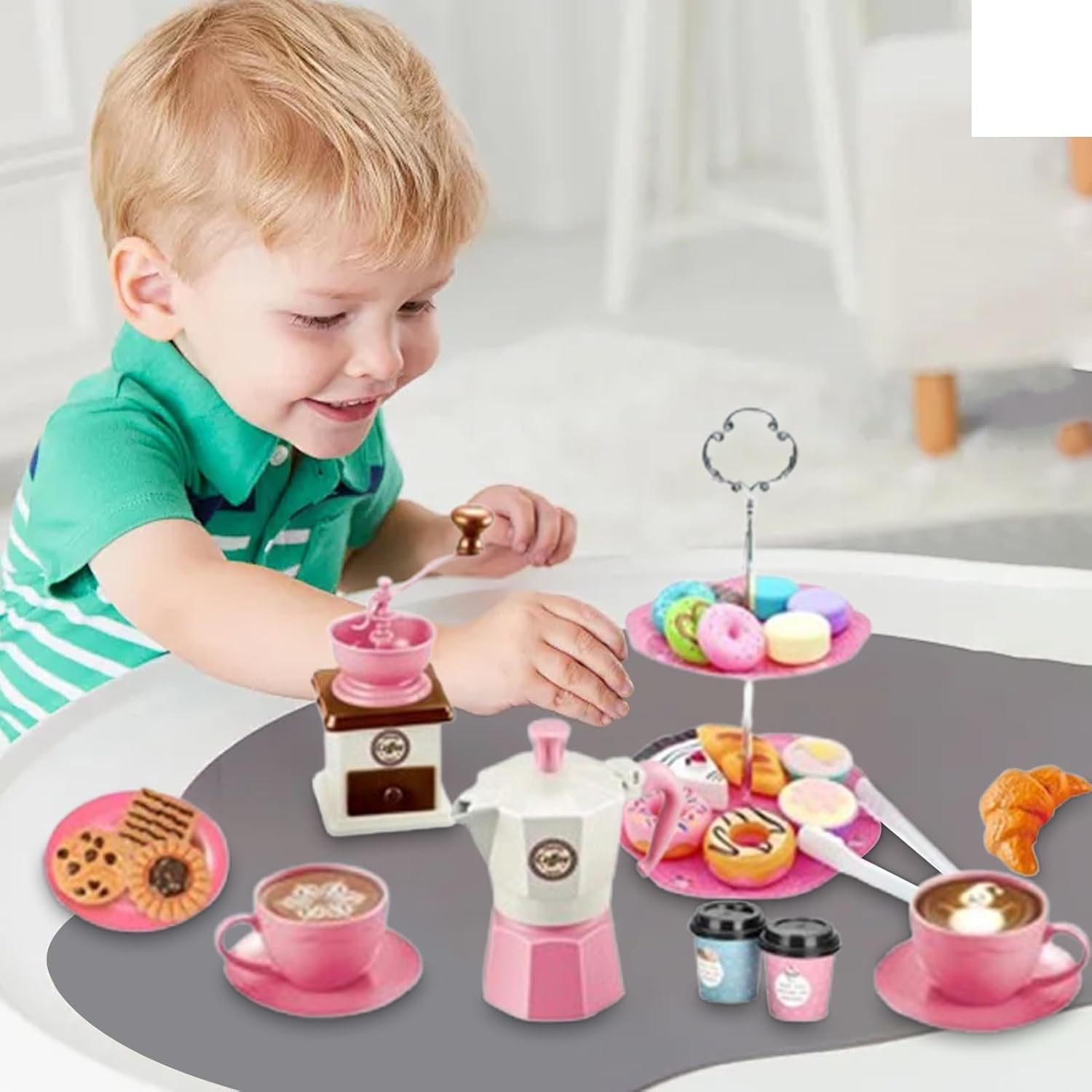 AGGIUNGI DIVERTIMENTO - Divertiti a far finta con il set da tè da 38 pezzi per i più piccoli. Questo set di giocattoli include caffettiera, macinacaffè, tazze, piattini, pinze per cibo, ecc. Perfetto per creare ricordi duraturi con ore di gioco fantasioso.,Lunga durata: realizzato in resistente materiale ABS con bordi lisci, questo set da tè consente loro di godersi in sicurezza innumerevoli ore di gioco interattivo con la famiglia e gli amici. Facile da usare: guarda la tua bambina trascorrere ore di gioco fantasioso con il nostro set da tè multifunzionale; Aiuta a migliorare le abilità comunicative e linguistiche promuovendo al contempo la creatività, la coordinazione e la coordinazione occhio-mano. Facile da usare: il nostro set per i più piccoli viene fornito con un frullatore per caffè che simula il processo di macinazione del caffè, che rende più interessato a questi giocattoli da dessert. Questo set da tè incoraggia la praticità e il gioco fantasioso, dove i dessert finti sono attraenti quanto il cibo vero. REGALO PERFETTO: questo set da tè per bambini lo rende più divertente e mostra la tua preoccupazione, rendendolo il regalo perfetto per amici e parenti a Natale, Halloween, compleanni, Pasqua e occasioni scolastiche.