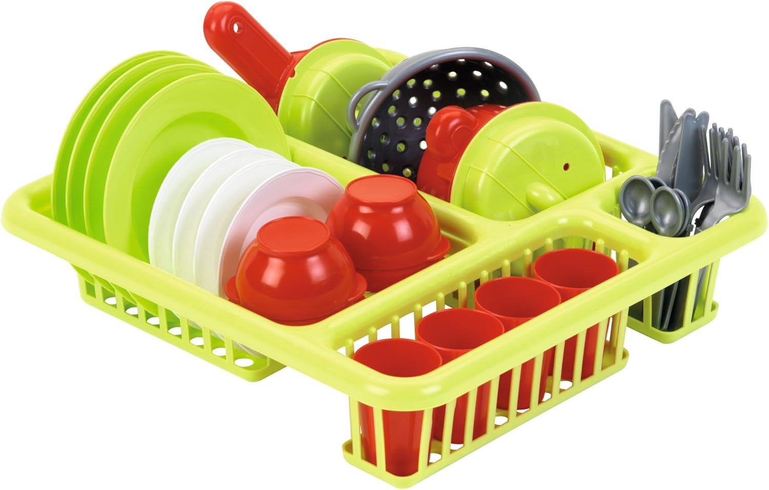 INDISPENSABILE PER FARE LA VAISSELLE: Dopo aver mangiato e lavato i piatti, questo scolapiatti è indispensabile per lasciare asciugare piatti e posate in plastica alimentare. Una padella già riempita: questo set include un bel scolapiatti, piatti, bicchieri, posate e il necessario per cucinare come quelli grandi. POSTO PER PICCOLI CUISTOT: Giocattoli Ecoiffier offre ai bambini riproduzioni fedeli di utensili da cucina e elettrodomestici da cucina degli adulti per cucinare come chef. GIOCARE PER CRIVERE MIGLIORE: È imitando gli adulti e manipolando diversi giocattoli che i bambini imparano a comprendere il mondo che li circonda, a diventare più abili e autosufficienti quotidianamente. GIOCATORI ORIGINALE FRANCIA GARANZIA : Toys Ecoiffier produce i suoi prodotti a Oyonnax nell'Ain grazie all'investimento delle 350 persone che l'azienda familiare impiega direttamente e indirettamente.