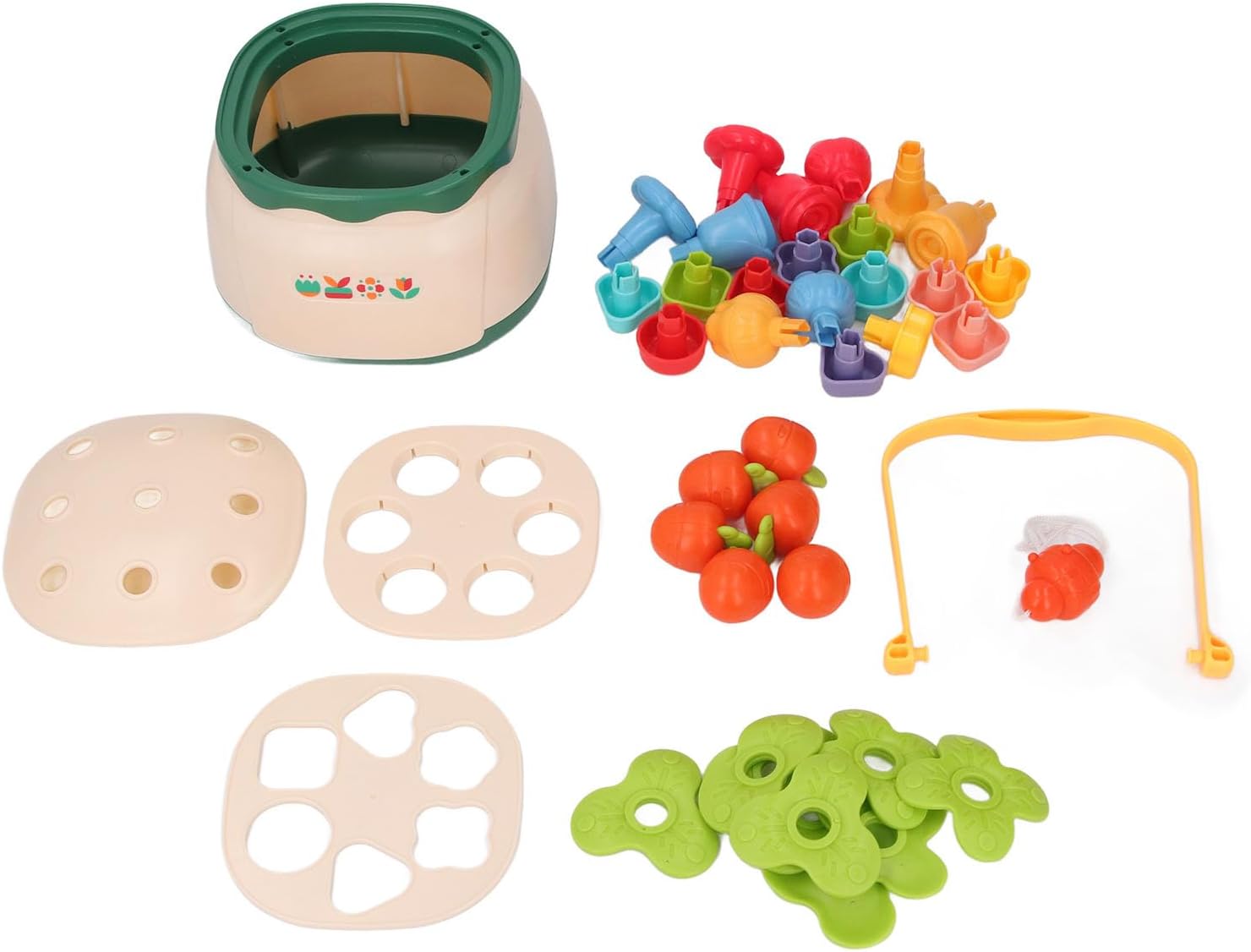 [DIVERTIMENTO SENZA FINE]: il giocattolo versatile offre perline di smistamento, impilamento e infilatura per ore di divertimento. [DESIGN COLORATO]: coinvolgi i bambini con divertenti forme di fiori, foglie e carote. [MATERIALI]: realizzati con materiali ABS e PP sicuri per momenti di gioco e preoccupazioni. [INTERAZIONE GENITORE-BAMBINO]: ideale per l'asilo o l'uso familiare per promuovere il legame. [EDUCATIVO]: migliora la coordinazione occhio-mano e la creatività attraverso il gioco.