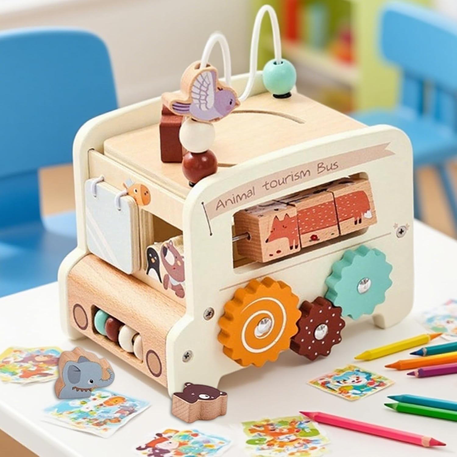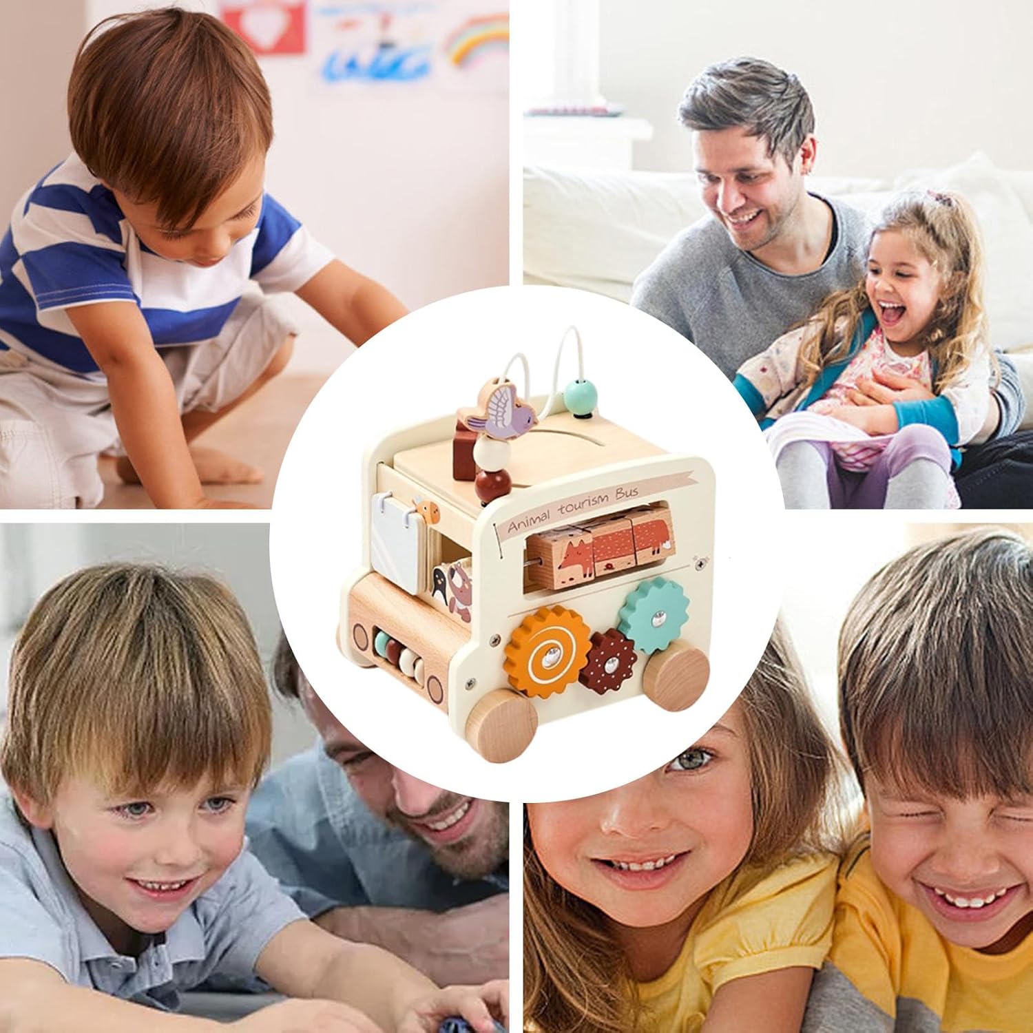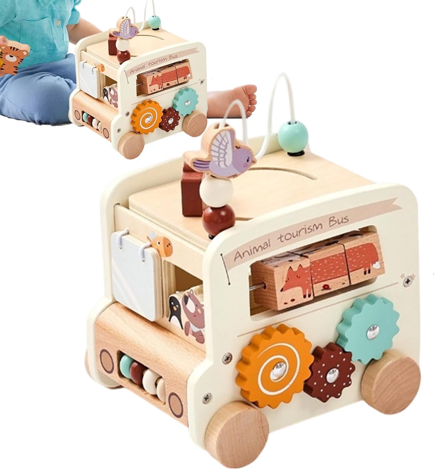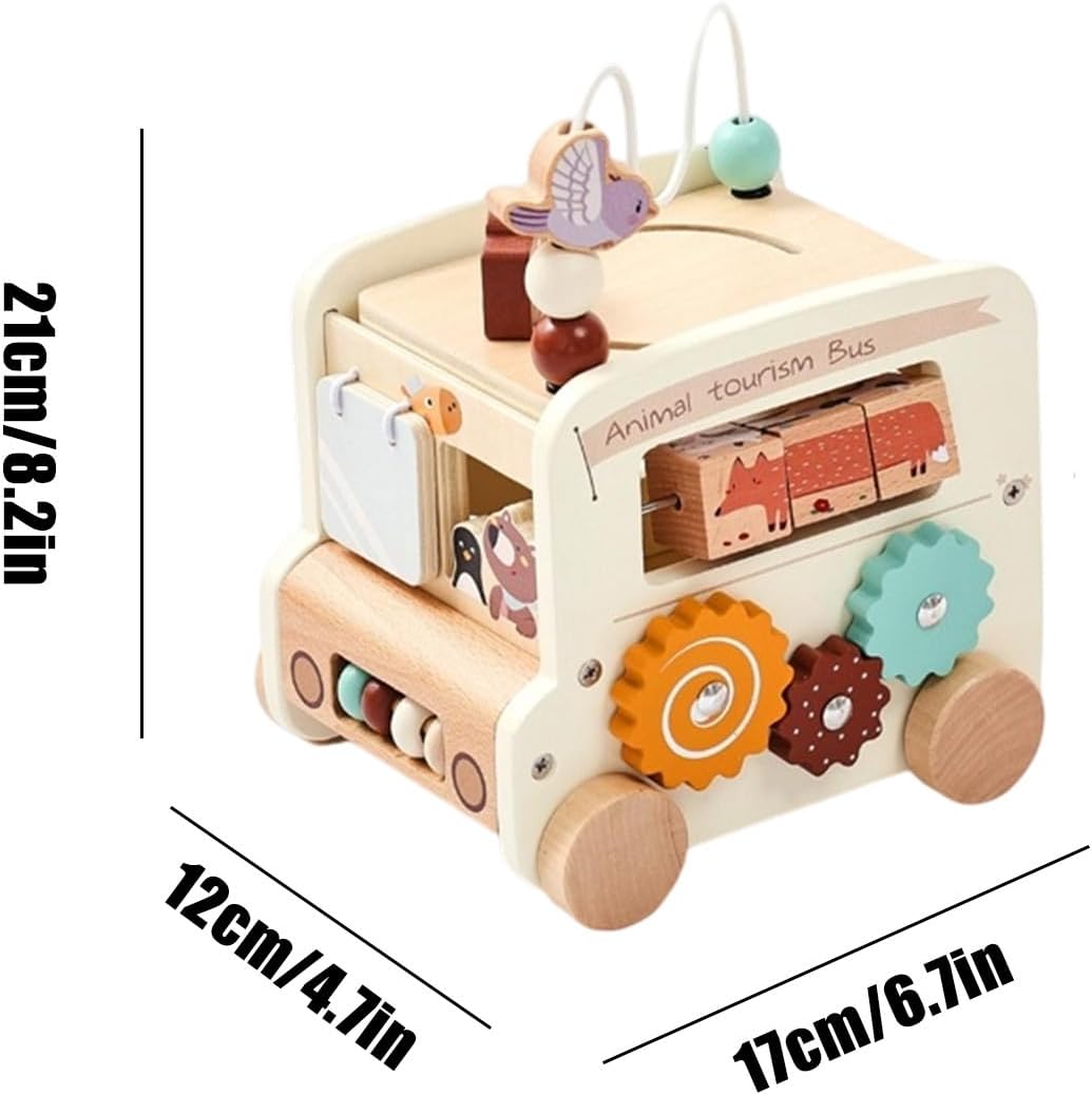 Giocattolo sicuro e affidabile: realizzato per un uso a lungo termine con bordi arrotondati lisci e parti resistenti non rimovibili, testato rigorosamente come compagno di crescita affidabile Design multifunzionale: questo bus educativo compatto combina 5 funzioni di gioco in 1 per stimolare varie abilità e promuovere esperienze interattive pratiche. Il suo formato ottimizzato consente di risparmiare spazio e di sviluppare le capacità motorie con attività versatili di apprendimento precoce. Stimolazione immaginativa: la forma autentica di autobus e i colori vivaci incoraggiano il gioco di ruolo creativo, consentendo di esplorare la narrazione attraverso attività dinamiche. Stimolazione sensoriale: Sviluppa l'integrazione sensoriale, il senso del ritmo e la coordinazione motoria fine nel bambino per i benefici dello sviluppo globali durante il gioco Educazione Sensorale: Crescita cognitiva interattiva mediante incasso geometrico che rafforza naturalmente logica, coordinazione occhio-mano e identificazione forme/colori