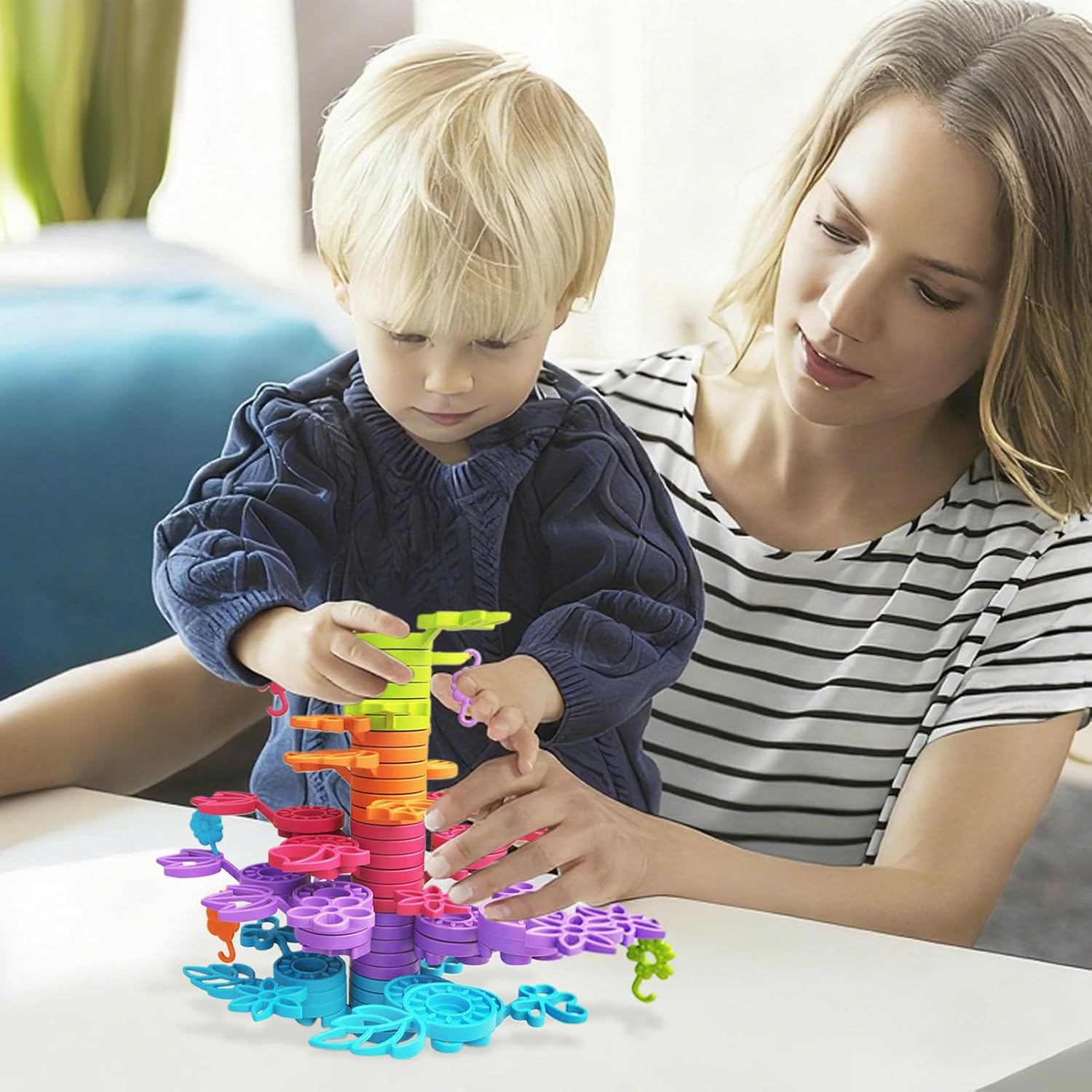 Design accattivante: giocattoli impilabili con forme diverse e colori consentono di esplorare tecniche di impilamento creativo che migliorano le capacità motorie e il pensiero fantasioso durante le attività in classe o momenti di gioco casual con familiari e amici condividendo esperienze gioiose Incoraggiare l"unione familiare: Il suo design promuove il pensiero critico e stimola la creatività, facilitando il tempo in famiglia piacevole rafforzando la comunicazione e la collaborazione in un ambiente giocoso condiviso Sviluppo delle abilità: i giocattoli impilabili migliorano il pensiero logico e la pianificazione incoraggiando la concentrazione e l'immaginazione spaziale, ideali per i bambini per sviluppare abilità di risoluzione dei problemi in modo divertente durante il gioco Portabilità pratica: includono una scatola di immagazzinaggio dedicata che garantisce organizzazione semplice e portabilità, rendendo semplice imballare e trasportare i giocattoli nei parchi, nei viaggi di famiglia o negli angoli domestici, mantenendo gli spazi ordinati senza difficoltà Costruzione solida: progettati per essere estremamente resistenti, questi giocattoli impilabili per bambini offrono una lunga durata con superfici che assicurano una manipolazione sicura, ideali per il gioco creativo in qualsiasi ambiente di apprendimento