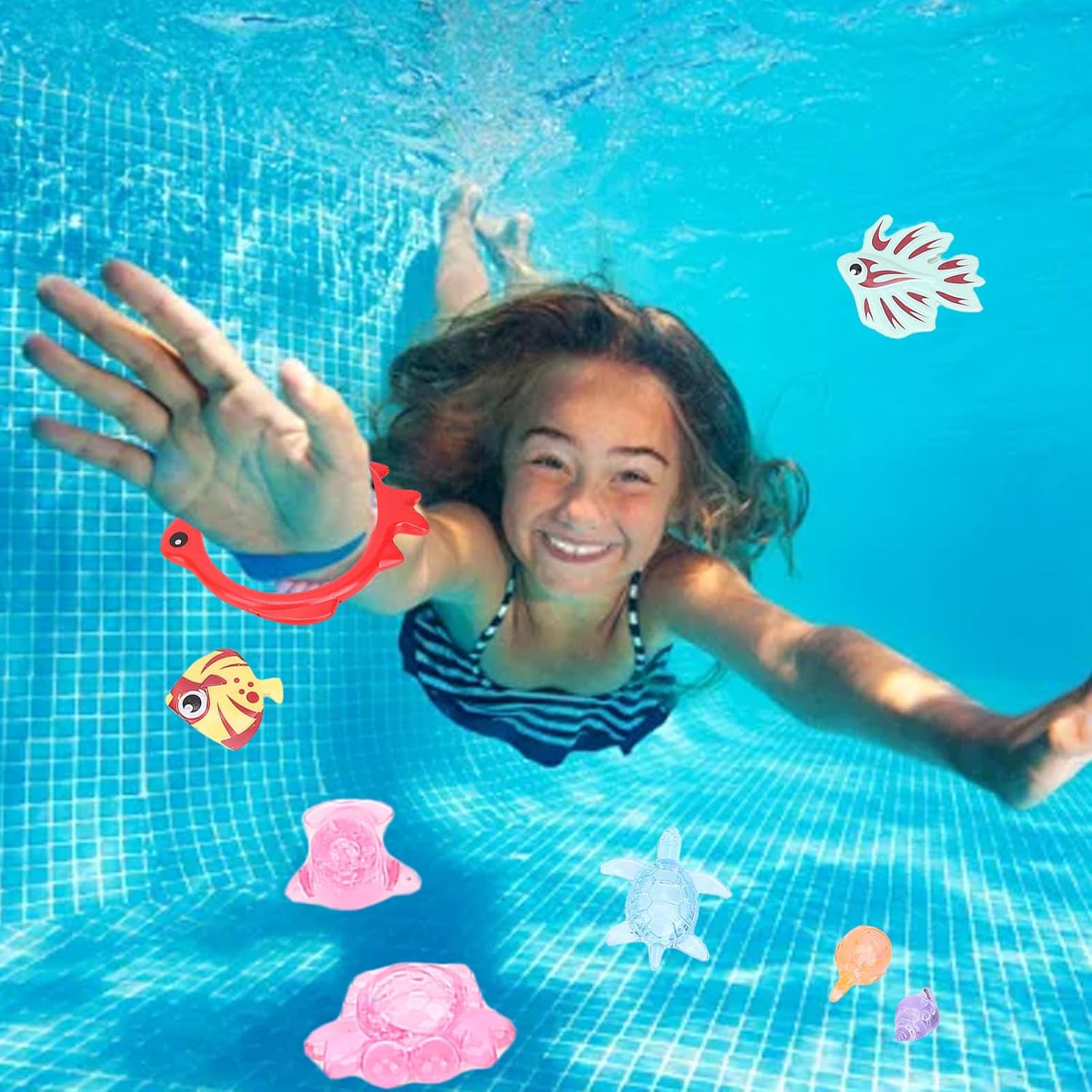 [Treasure Hunt Experience] Trasforma la tua piscina in un'eccitante zona di esplorazione sottomarina in cui i bambini possono fingere di essere cacciatori di tesoro. La ricerca di vari piccoli accessori aiuta a sviluppare la pazienza e la concentrazione delle capacità di osservazione fornendo avventure elettrizzanti a base d'acqua. [Divertimento multi -location] Ideale per le piscine per le spiagge i laghi o qualsiasi ambiente d'acqua Questo set di giocattoli porta esperienze acquatiche gioiose ovunque tu vada. È adatto al legame familiare creando ricordi duraturi, migliorando al contempo la fiducia dell'acqua dei bambini e le relazioni genitore-figlio attraverso il gioco condiviso. [Design per bambini al sicuro] Realizzato in plastica durevole con bordi arrotondati e superfici lisce Questi giocattoli in piscina danno la priorità alla sicurezza senza compromettere il divertimento. I genitori possono rilassarsi sapendo che i giocattoli sono appositamente progettati per piccole mani e giochi d'acqua che soddisfano tutti gli standard di sicurezza. [Set di giochi d'acqua versatile] Questo kit completo include componenti di gioco multipli come anelli di affondamento e figure di pesce che consentono infinite variazioni di gioco. I diversi accessori mantengono l'interesse dei bambini durante le estese ore di intrattenimento. [Eccitante sottomarino] Spark la curiosità di tuo figlio con questo set di giocattoli in piscina per immersioni progettata per incoraggiare il gioco e l'esplorazione attivi. I bambini adoreranno catturare pesci colorati e raccogliere anelli di affondamento mentre sviluppano abilità di coordinamento essenziali in acqua. Le attività coinvolgenti rendono le sessioni di nuoto più divertenti e gratificanti.
