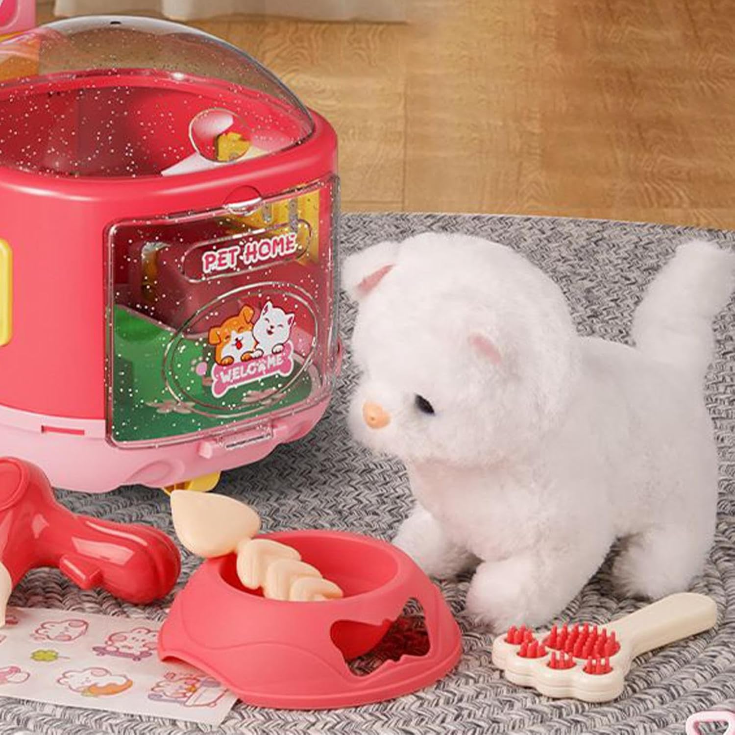 Esperienza di Accudimento Immersivo: Il elettronico intelligente potenzia un'accudimento immersivo, spingendo gli utenti a sviluppare responsabilità mentre partecipano a una simulazione realistica di animale domestico e godono di una profonda compagnia emotiva con il loro compagno elettronico interattivo Crescita Emotiva con Gioco: Favorisce il benessere mentale unendo scenari di finzione che accendono l'immaginazione, alleviano lo stress emotivo e sviluppano coordinazione ed empatia mediante attività con animali elettronici interattivi per l'infanzia Qualità Tessuto Peluche: Realizzato con un fine tessuto peluche corto, questo animale domestico elettronico una texture morbidissima e densa, garantendo comfort durante il gioco quotidiano e un'esperienza sicura grazie a materiali ipoallergenici e delicati sulla pelle. Passeggino family-friendly: Un manico ergonomico migliora la portabilità, si abbina perfettamente al design del passeggino per supportare le uscite genitore-figlio e le passeggiate in cortile, fornendo una soluzione di trasporto facile per momenti deliziosi in vari ambienti all aperto Gioco Senza Stress: Nessuna configurazione complessa richiesta per un'interazione immediata e divertente, controllo semplificato a un pulsante e alimentato da una batteria di lunga durata per un di gioco continuativo