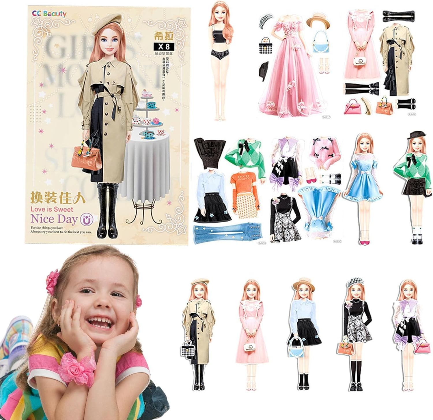 Attira l'attenzione: con le bambole da spogliatoio magnetiche, i bambini possono combinare facilmente abiti per creare splendidi look da principessa. Questo gioco emozionante è un ottimo modo per attirare l'attenzione, stimolare l'immaginazione ed esplorare combinazioni di colori e motivi. Design portatile: il nostro set di bambole magnetiche adotta un design adatto ai viaggi, leggero e compatto. Perfetto per l'intrattenimento all'aperto. Puoi facilmente portare questo set ovunque per divertirti ancora più ore. Nessuna sbavatura: le nostre bambole magnetiche sono realizzate con materiali innocui senza sostanze nocive per garantire la sicurezza del bambino. Grazie agli angoli arrotondati non ci sono graffi o sbavature, il che lo rende un giocattolo perfetto e sicuro per i vostri bambini. Stimola l'immaginazione: ispira giochi più fantasiosi e promuovi lo sviluppo creativo con le nostre bambole magnetiche. Il design magnetico si attacca facilmente a lavagne e frigoriferi, mentre le parti facili da afferrare consentono di sostituire e mescolare senza problemi abiti e accessori. Regalo creativo: il set da gioco magnetico per bambole da indossare è un ottimo regalo per i bambini. Regalate loro questo set di abbigliamento deluxe e guardali combinare diversi look e creare le proprie storie. Che si tratti di Natale o compleanno, amerete questo set regalo.