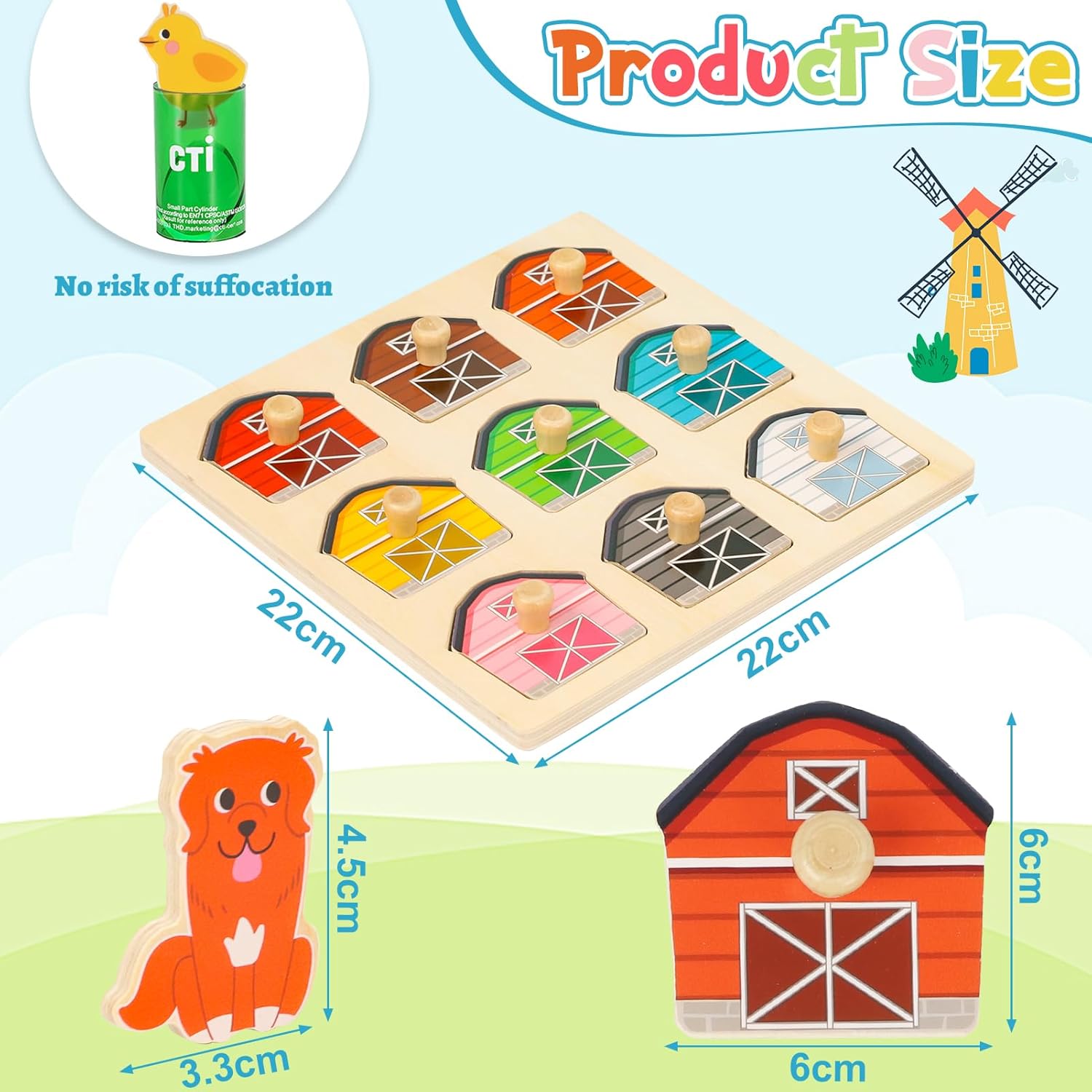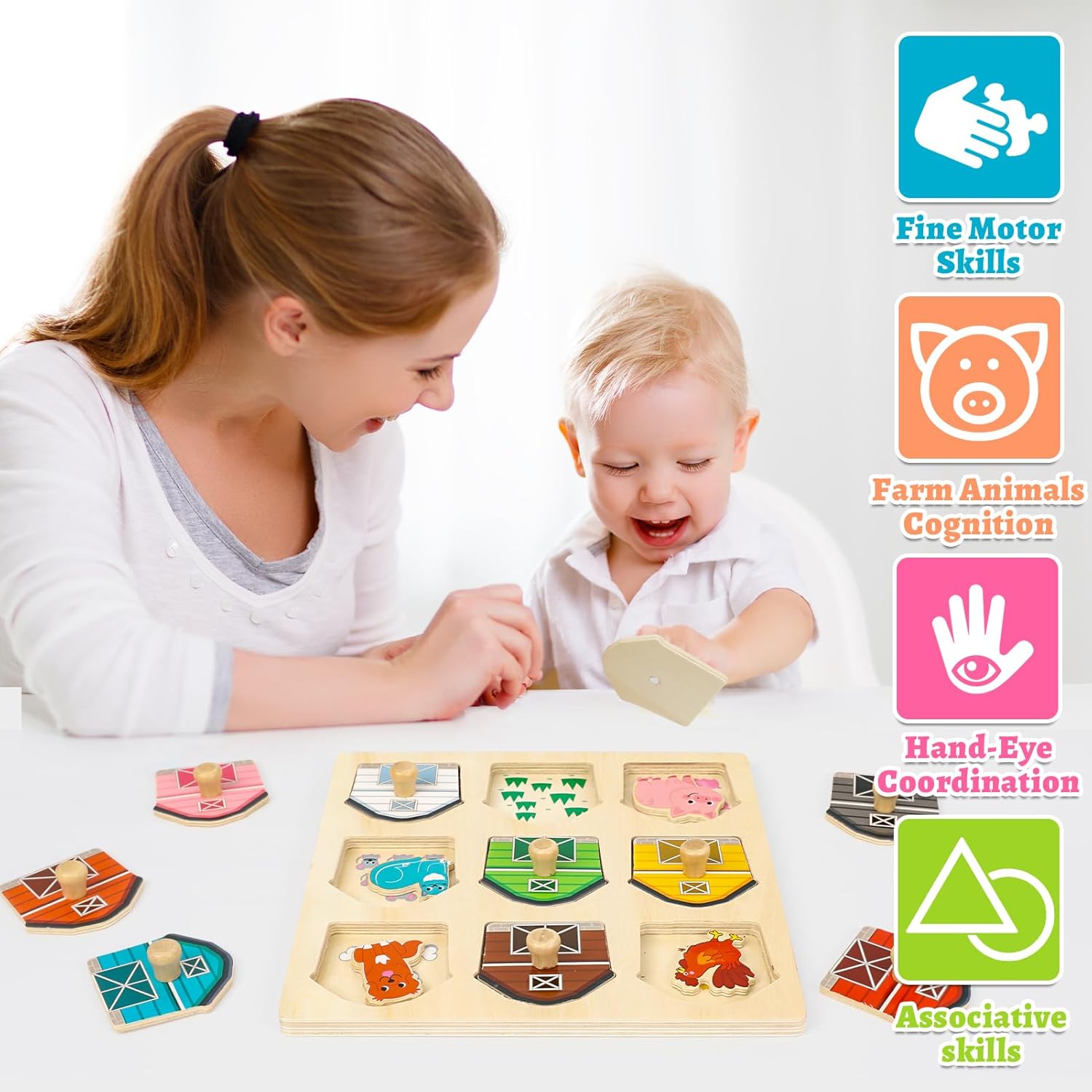 🔴🔴Animali da fattoria colorati e divertenti da imparare! Questo adorabile puzzle in legno presenta simpatici animali da fattoria come la mucca, il maiale, il pollo e il cavallo. I bambini possono imparare i loro nomi abbinando i pezzi, rendendo il tempo di gioco divertente ed educativo! 🟡🟡Sicuro e durevole per le mani dei più piccoli: 100% BPA e senza piombo. Realizzato in legno liscio e robusto con bordi arrotondati e vernice atossica, questo giocattolo in legno è super sicuro per i bambini da 1 anno in su, che possono esplorare e giocare giorno dopo giorno senza preoccupazioni. 🟢🟢Sviluppa cervello e capacità motorie: i mignoli adoreranno mettere i pezzi degli animali al loro posto, il che li aiuterà a incastrare, afferrare e risolvere meglio i giochi di abbinamento, il tutto diventando più intelligenti e più sicuri. 🔵🔵Il comportamento dei predatori della fattoria prende vita: le pecore mangiano l'erba, le galline catturano i vermi, i cani rosicchiano le ossa, i gatti catturano i topi: questo giocattolo Montessori rende la vita in fattoria divertente e reale! 🟣🟣Regalo perfetto per piccoli contadini curiosi: questo puzzle per bambini luminoso, carino ed educativo è un ottimo regalo per compleanni o vacanze, che incoraggia i bambini a conoscere gli animali e a trascorrere ore di divertimento in fattoria.