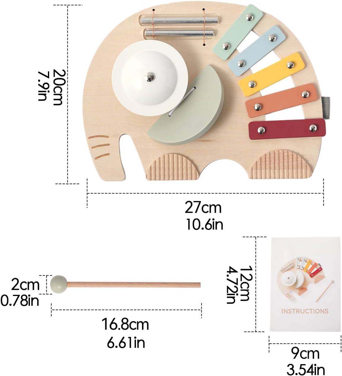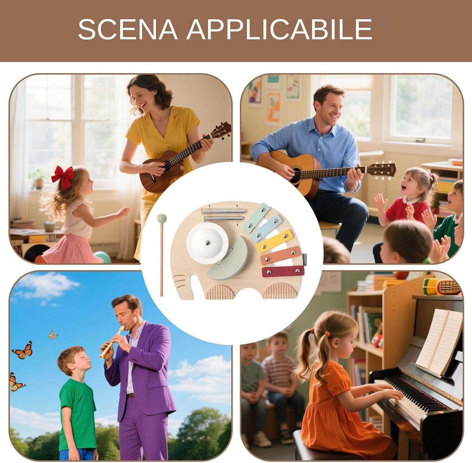Rafforza il Familiare: Ideali per interazione genitore-figlio, questi giocattoli musicali momenti familiari unici stimolando fantasia e passione per la musica attraverso attività prescolastiche coinvolgenti Varietà Strumentale: Favorisce lo sviluppo sensoriale con suoni diversificati da e carillon inclusi, grazie a un design unificato che offre esperienze musicali variegate nei giochi per bambini. Robustezza Sicura: Prodotto con legno e metallo mediante materiali certificati per l'infanzia, garantisce spigoli arrotondati e superfici lisce per un'esperienza di gioco e protetta. Compagno Musicale :Design adorabile di elefante cattura l'attenzione naturalmente, unendo aspetto tenero e stile coinvolgente per ispirare interesse nella prima esplorazione musicale Crescita Cognitiva: Promuove lo sviluppo mentale tramite l'apprendimento musicale, affina la coordinazione occhio-mano, nutre la comprensione ritmica e potenzia il miglioramento delle abilità motorie