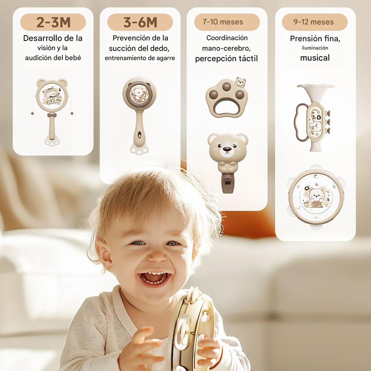 Strumento multisensoriale: Questi strumenti per bambini stimolano sensi uditivi, tattili e visivi per favorire lo sviluppo cerebrale, ponendo solide basi per l'apprendimento precoce e migliorando efficacemente la coordinazione motoria. (): 187 (200,) -> : Materiale sicuro: Strumenti musicali per bambini realizzati in ABS di alta qualità. I bordi arrotondati garantiscono sicurezza evitando graffi e offrono una costruzione solida e durevole per un uso prolungato e affidabile nei bambini piccoli. Grande versatilità: con 10 strumenti a percussione, questo set promuove la crescita uditiva e ritmica, agendo come supporto per l'iniziazione musicale dei bambini, incoraggiando la scoperta dei suoni e arricchendo le prime esperienze sensoriali. Gioco musicale interattivo: Attira i bambini con esplorazione ritmica interattiva ed esperienze di apprendimento condiviso che incoraggiano legami familiari e connessioni emotive attraverso giochi musicali Conservazione compatta: design pronto per i viaggi che facilita l'accesso alla musica, questo set garantisce organizzazione semplice e portabilità salvaspazio per i bambini all'aperto.