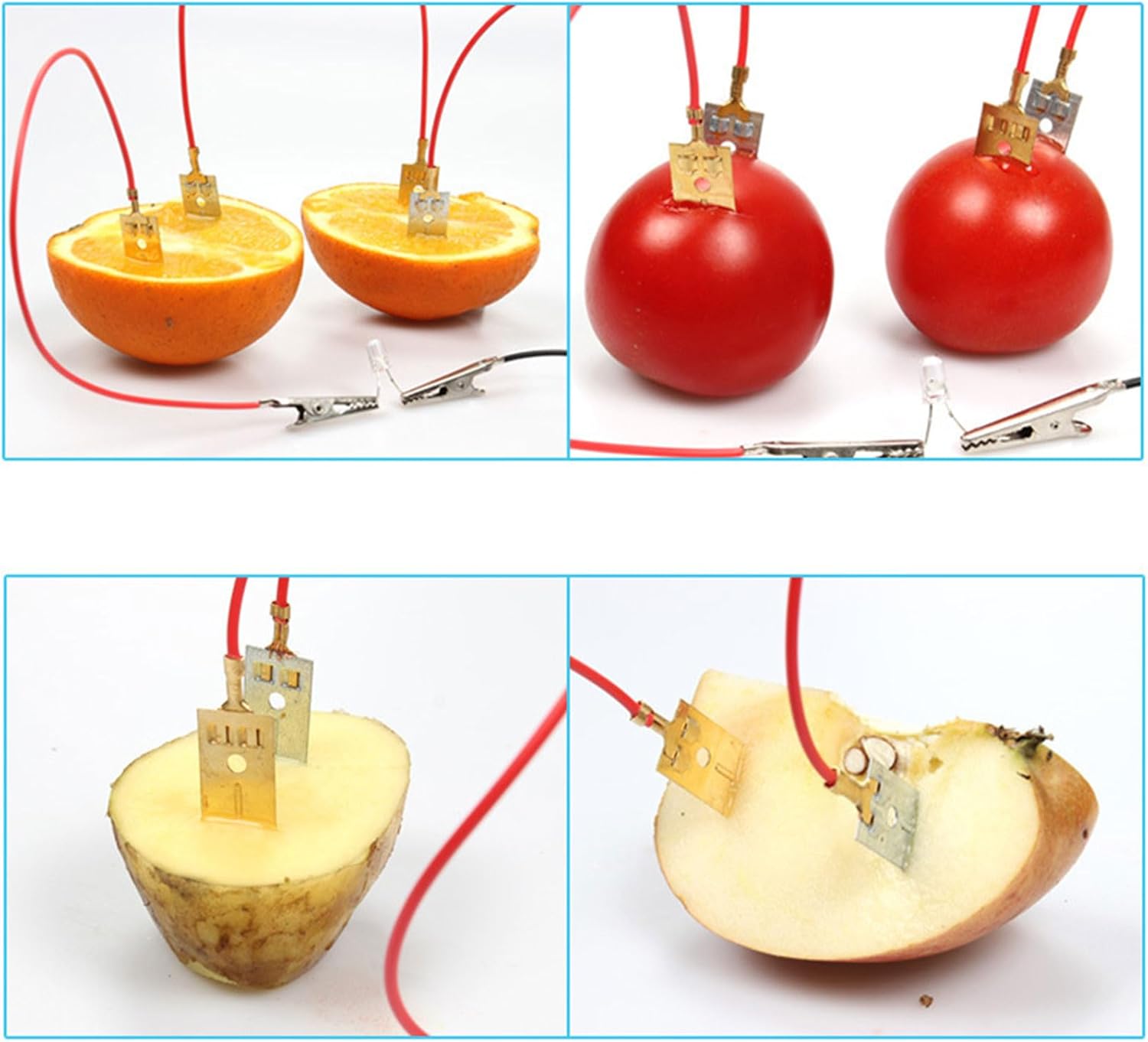 Riempi il potere dell'apprendimento con le mani sul set di esperimenti di batteria di frutta assembly gratuitamente Questo set di esperimenti elettrici per frutta in metallo è sicuro da usare e offre ai bambini un modo meraviglioso e attraente per creare le proprie batterie di frutta fatte in casa Molto adatto a bambini di 7 ° C per studenti, genitori e insegnanti che vogliono esplorare insieme la scienza e promuovere una comprensione più profonda dei principi elettrici, molto adatto Migliorare la formazione STEM del vostro bambino con questo innovativo kit di esperimenti, contiene istruzioni dettagliate per garantire un viaggio di apprendimento senza soluzione di continuità e piacevole sia in classe che in casa Ampiamente usato per homeschooling, laboratori, dimostrazioni in aula, classi di scienze scolastiche, attività extrascolastiche e club di scienze