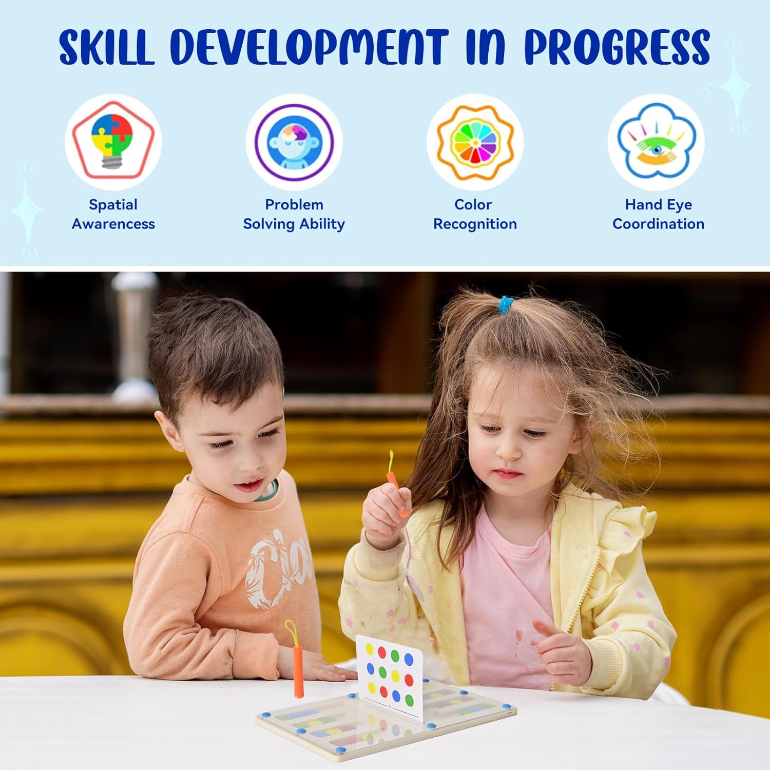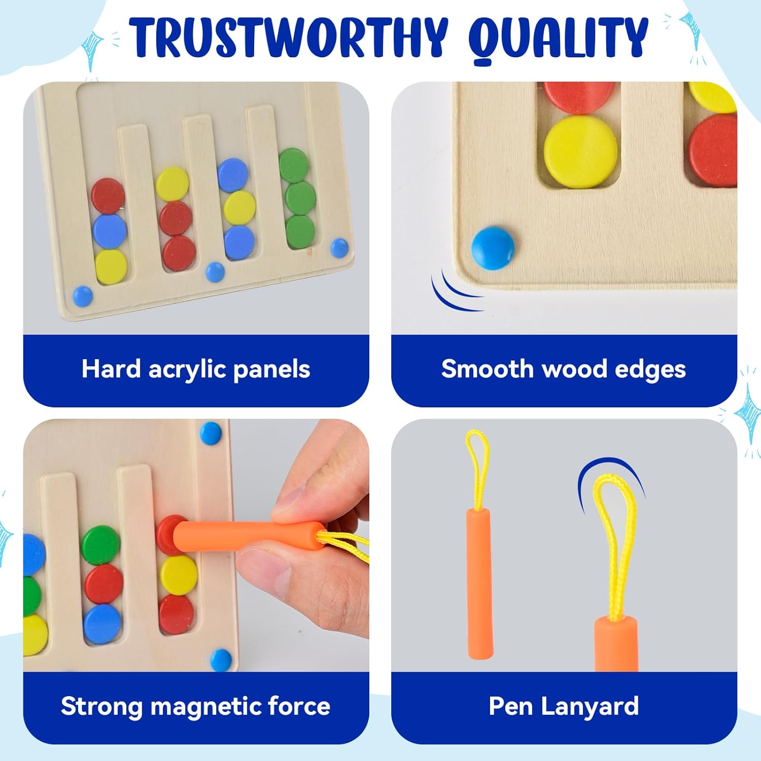 Giocattoli Montessori: questa tavola giocattolo Montessori funziona meravigliosamente come giocattolo per bambini e ragazze di 3, 4 e 5 anni. Mentre i bambini giocano, possono esercitarsi a contare, riconoscere i colori, coordinazione occhio-mano e abilità motorie. Inoltre, sviluppa anche la loro capacità di essere silenziosi e concentrati Modalità a due giocatori: giocattoli in legno Montessori realizzati per bambini dai 3 anni in su. Questo set di puzzle magnetico abbinato ai colori dispone di 18 carte bifacciali, 1 penna magnetica e 12 pezzi di legno rotondi. La modalità a due giocatori non solo migliora la diversità delle impostazioni di gioco, ma promuove anche l'interazione sociale e il pensiero collaborativo dei bambini Puzzle magnetico in legno: questo giocattolo Montessori vanta una superficie liscia e angoli arrotondati per un gioco sicuro. La lavagna magnetica è dotata di uno strato superiore in acrilico trasparente resistente, con tutte le sfere magnetiche sigillate saldamente all'interno e fissate da 8 chiodi, garantendo che rimangano saldamente in posizione ed eliminando il rischio che i bambini li ingoiino Facile da trasportare: porta la gioia di imparare in viaggio con questo piccolo puzzle magnetico. È un gioco da ragazzi da imballare, quindi è ideale per viaggi in auto, voli o viaggi per vedere nonna e nonno. Come giocattolo montessori altamente coinvolgente per ragazzi di 3 anni, mantiene i bambini occupati e imparano ovunque si trovino Adatto per regali: i nostri giocattoli da viaggio sono appositamente progettati per i bambini, perfetti per regali, regali di compleanno, regali di Pasqua, regali di Natale aiutano anche i bambini ad allontanarsi dagli schermi elettronici e godersi il divertimento del pensiero pratico. Regalo perfetto per compleanni, Natale, festa dei bambini e attività in classe