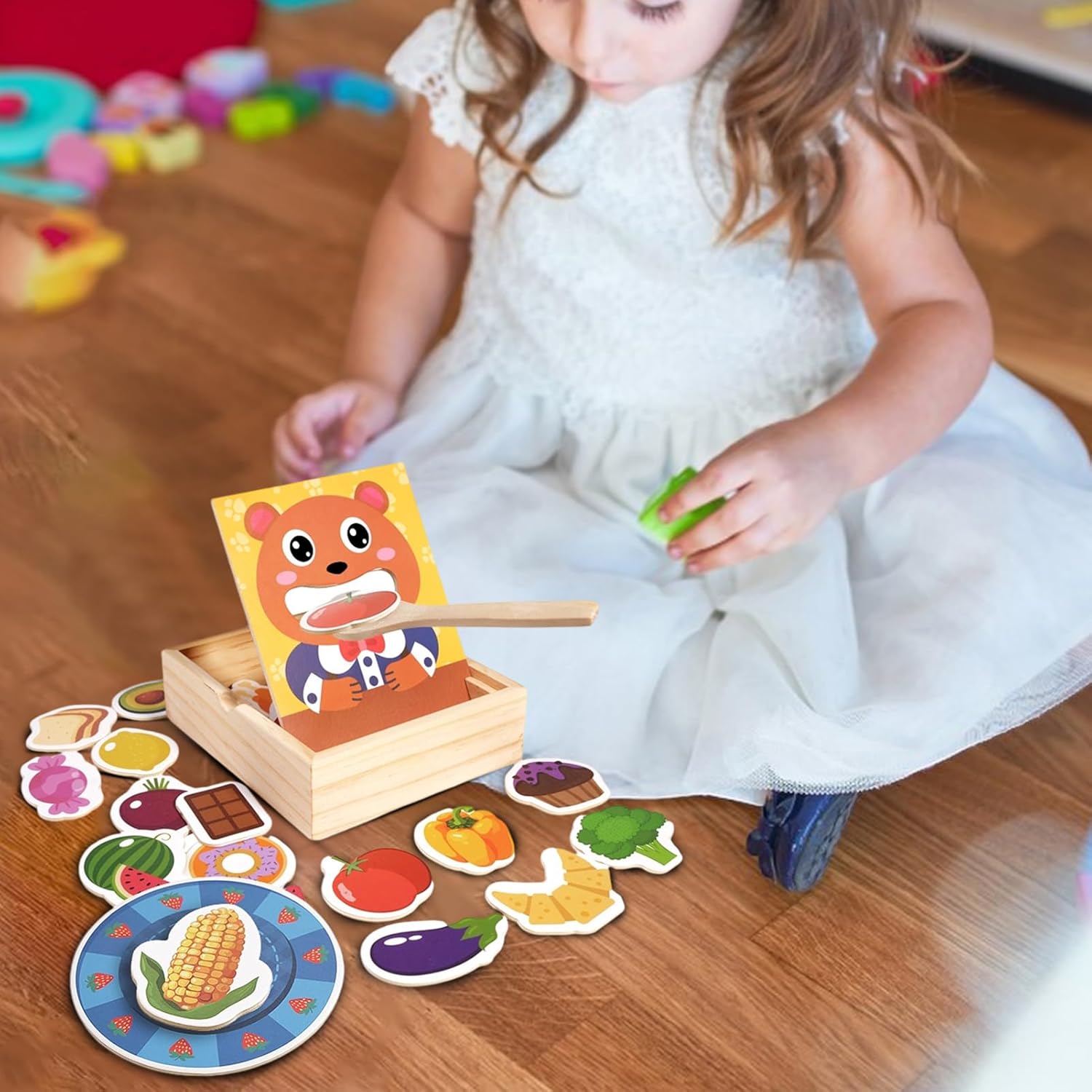 Pratica la categorizzazione degli alimenti: questo giocattolo in legno promuove la cura di sé e la classificazione degli alimenti attraverso metodi di apprendimento sottili; aiuta i bambini a padroneggiare l'uso delle posate in un gioco da pranzo simulato, aumentando le abilità quotidiane in modo naturale ed efficace Etichettatura degli alimenti: attraverso la formazione quotidiana di carte alimentari realistiche, i bambini imparano a conoscere verdure e dessert promuovendo il loro sviluppo cognitivo. L'etichettatura alimentare supporta l'educazione della prima infanzia attraverso la scoperta giocosa degli alimenti quotidiani Migliora le capacità motorie: giocare con il giocattolo per l'alimentazione in legno rafforza la capacità di presa e affina le capacità motorie. I bambini esercitano la coordinazione occhio-mano in modo giocoso e allo stesso tempo sviluppano efficacemente la loro attenzione, rendendo l'apprendimento ancora più divertente Incoraggia l'apprendimento di ruolo: con un focus sull'alimentazione degli animali, questo giocattolo in legno supporta il gioco interattivo, promuove la responsabilità di cura e rafforza il legame genitore-figlio, guidando l'apprendimento basato sul gioco e le abilità sociali emotive in modo naturale. Il giocattolo per l'alimentazione degli animali in legno è ideale per i bambini che vogliono imparare attraverso l'impegno giocoso e sviluppare le loro abilità sociali Conservazione efficiente dei giocattoli: il design in legno naturale favorisce un'organizzazione strutturata e facilita la gestione dei giocattoli. Le buone abitudini sono incoraggiate mentre l'area giochi rimane pulita. Facile pulizia e utilizzo ottimale dello spazio disponibile sono garantiti.