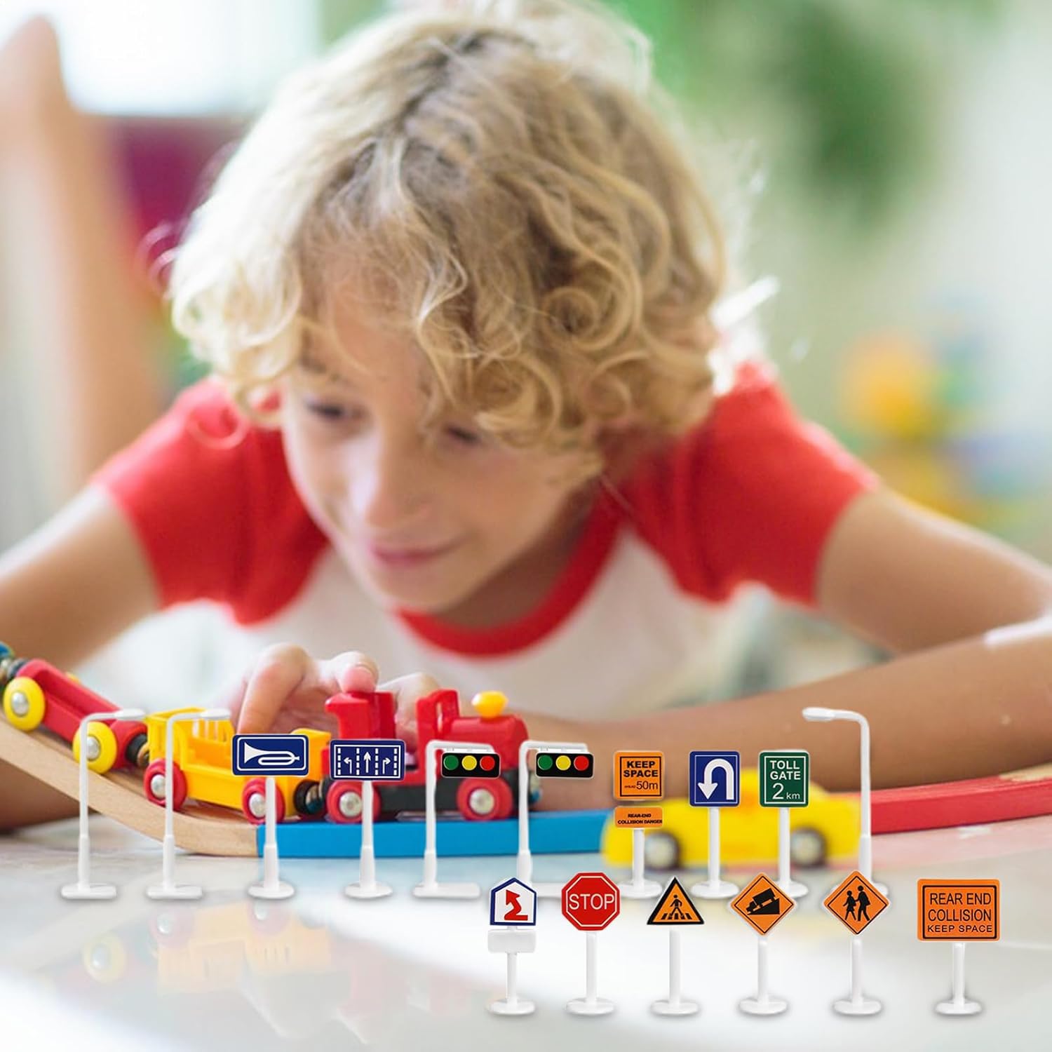 Divertimento educativo: fatti coinvolgere l'immaginazione di tuo figlio con 56 segnali stradali realistici, soddisfacendo le esigenze quotidiane di gioco di ruolo; Un set pratico che offre quantità sufficiente per l'apprendimento. Educational Playtime: ampliare le conoscenze di tuo figlio con i nostri giocattoli per bambini per bambini. Questi squisiti giocattoli rendono in diversi divertenti e coinvolgenti, rendendoli un regalo di compleanno per i bambini mentre vantano un aspetto meraviglioso e una funzionalità. Play educativo: lascia che tuo figlio impara e cresca con i nostri giocattoli per i bambini. Questo gioco divertente e interattivo migliora la loro capacità di riconoscere i segnali stradali e comprendere le regole di base della strada, offrendo un'opportunità perfetta per introdurre importanti concetti di sicurezza che possono utilizzare per tutta la vita. Una vasta gamma di usi: il gioco immersivo e dinamico attende con i nostri versatili giocattoli da strada, perfetti per l'abbinamento con cassonetti, escavatori, auto, rulli stradali e treni. Qualità costruttiva affidabile: i nostri giocattoli per bambini per bambini sono realizzati con materiale robusto e un buon ABS, garantendo un'eccellente resistente all'usura e sicurezza durante il gioco. Dai ai tuoi figli un'esperienza liscia e duratura su cui possono contare.