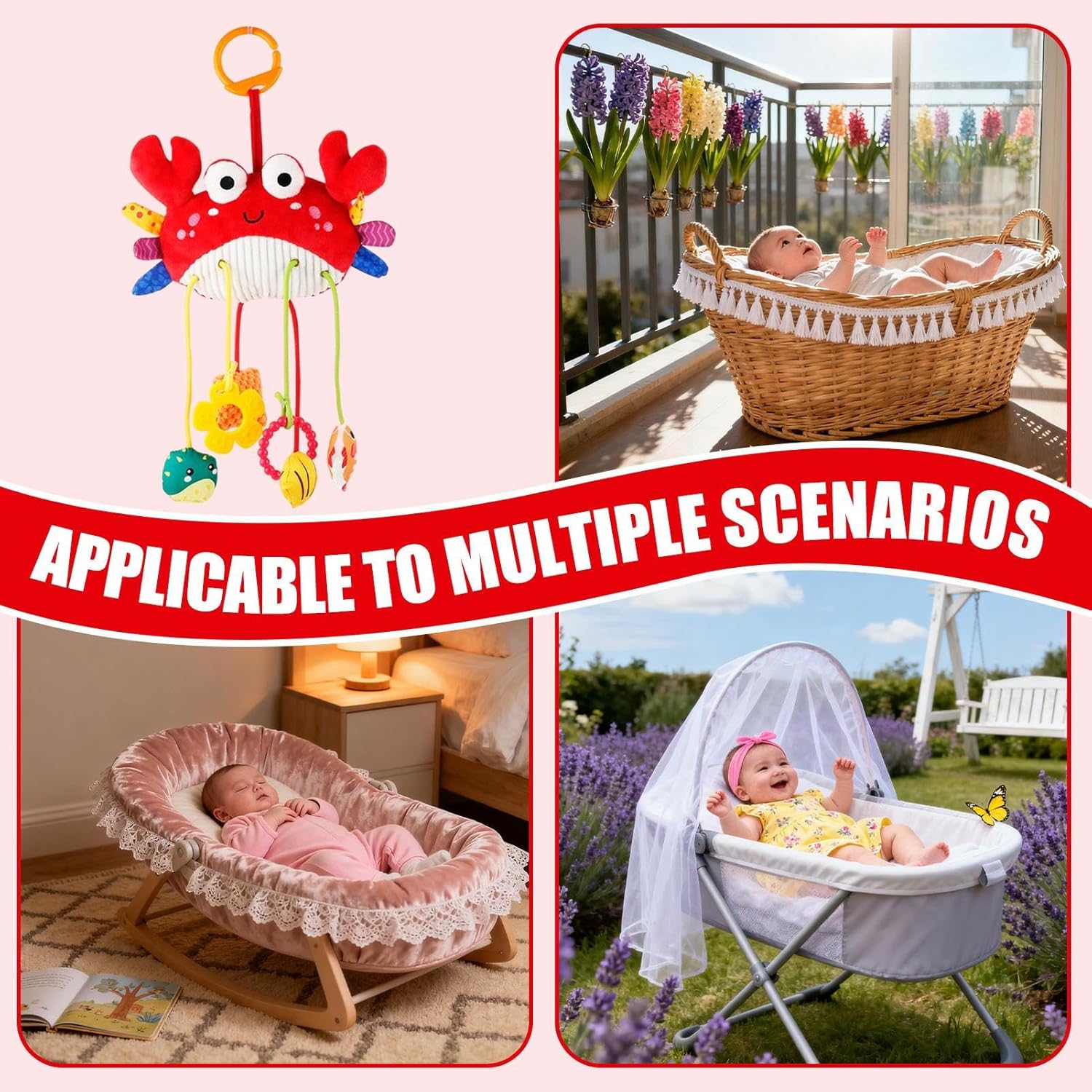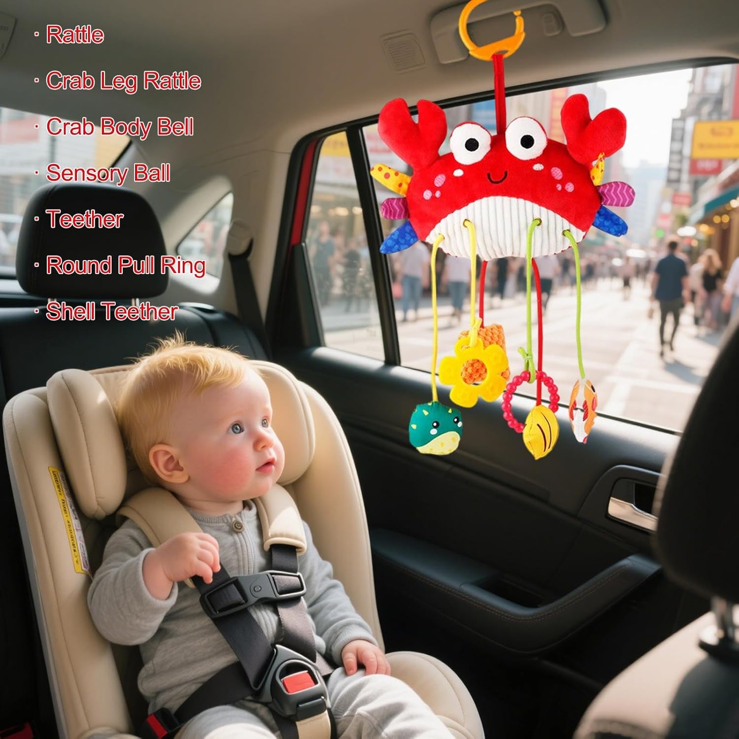 Uso multiuso pratico: questi giocattoli per seggiolino auto per bambini fungono da strumenti pratici e decorazioni eleganti, contribuendo a creare un ambiente di sonno ovunque tu vada. Sono ideali per viaggi su strada, passeggiate o per il sonno, aggiungendo comfort all'ambiente del tuo bambino con texture e un design facile da usare, perfetto per le giornate lunghe. Facile da usare: questi giocattoli per passeggino sono dotati di una clip dal design intuitivo che garantisce una presa rapida e senza sforzi, ideali per gestire le attività quotidiane o godersi passeggiate rilassate con i bambini, offrendo un comfort eccezionale in ogni situazione. Giocattoli stimolanti: questi giocattoli per seggiolino auto presentano un design divertente e vari accessori che catturano la curiosità del bambino durante i viaggi. Mantengono il bambino intrattenuto e riducono il disagio durante lunghi viaggi grazie al gioco interattivo che stimola i sensi in modo naturale e sicuro. Regalo ideale: questi giocattoli per seggiolino auto sono il regalo perfetto per le festività natalizie, portando gioia a genitori e famiglia mantenendo i bambini intrattenuti in lunghi viaggi con gli amici. Creano ricordi accattivanti e migliorano l'esperienza di viaggio per tutte le persone coinvolte, essendo un dettaglio molto apprezzato. Texture morbida con rapido recupero: progettato per essere delicato sulla pelle e molto resistente, questo giocattolo mantiene la sua forma dopo molteplici usi. Perfetto per i bambini curiosi che amano il gioco touch, garantisce sicurezza e durata nel tempo, incoraggiando l'esplorazione sensoriale.