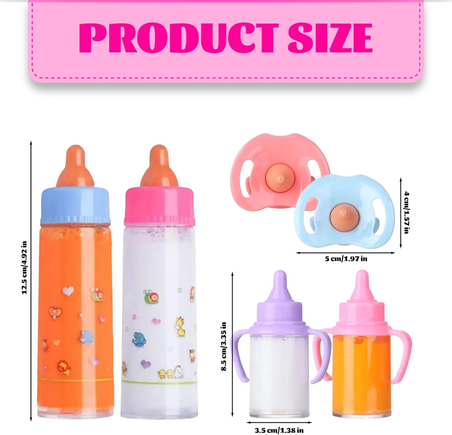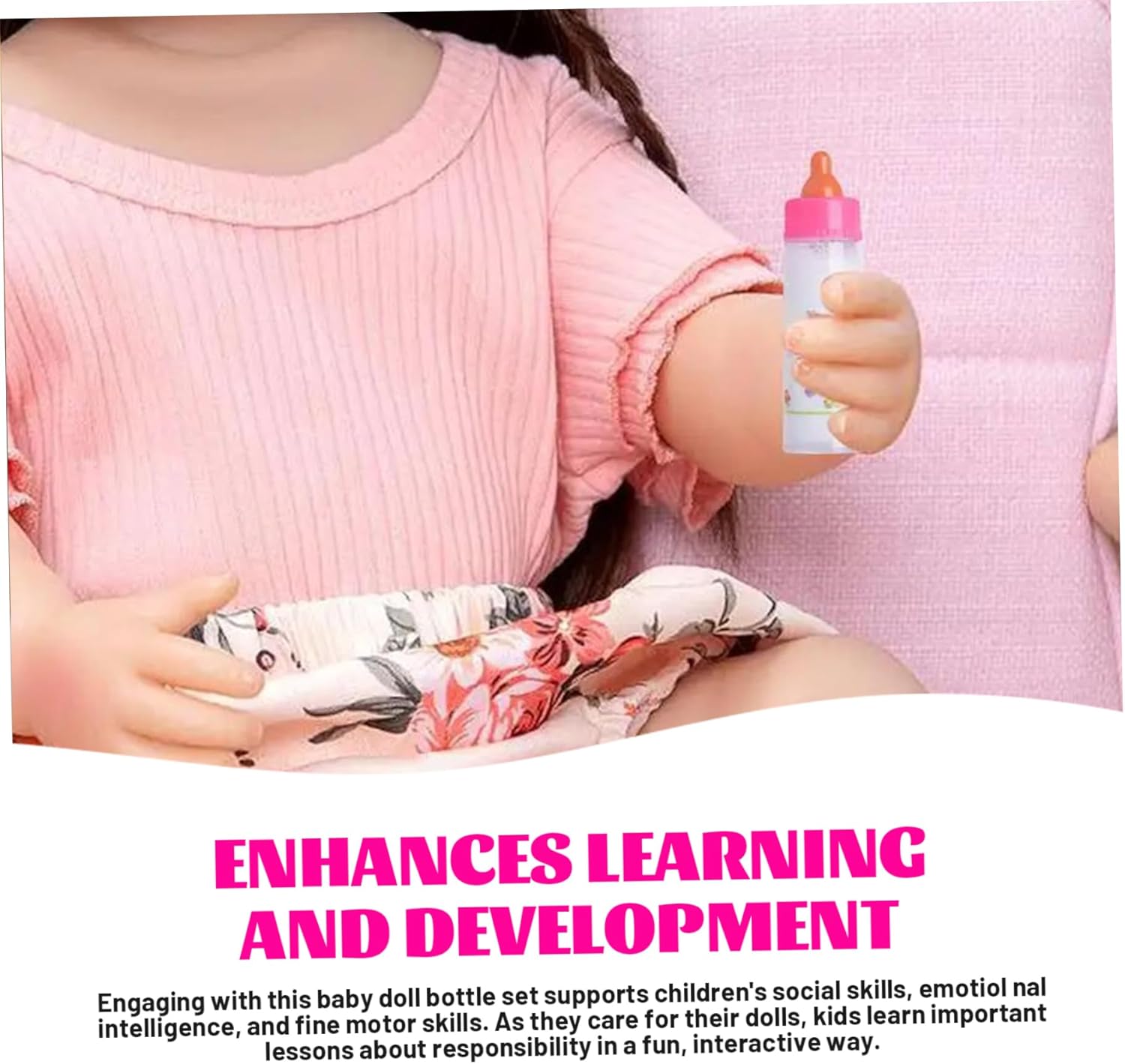 Realistici e simulati: questi biberon per bambole presentano un effetto unico di scomparsa del latte o del succo, aggiungendo un ulteriore livello di realismo per il gioco di finzione. Quando il tuo bambino inclina il biberon, il liquido scompare gradualmente, imitando il processo di alimentazione e creando un'esperienza più interattiva e coinvolgente per i più piccoli. PERFETTO PER I BAMBINI: Che si tratti di un compleanno, di una vacanza o semplicemente di una vacanza, questo set di biberon per bambole è l'ideale per i bambini piccoli. usura dovuta al gioco regolare. Promuove il gioco educativo e fantasioso: queste bottiglie per bambole sono uno strumento fantastico per sviluppare abilità sociali ed emotive. Simulando attività della vita reale come nutrire e calmare, i bambini possono mettere in pratica comportamenti premurosi, impegnando al contempo la loro immaginazione nella creazione di storie e scenari per le loro bambole. Set completo: il set da 6 pezzi comprende 2 biberon, 2 biberon con manici e 2 tettarelle, offrendo una varietà di opzioni. Questo set è perfetto per incoraggiare scenari di gioco di ruolo, consentendo ai bambini di simulare l'alimentazione, il conforto e la cura delle loro bambole.